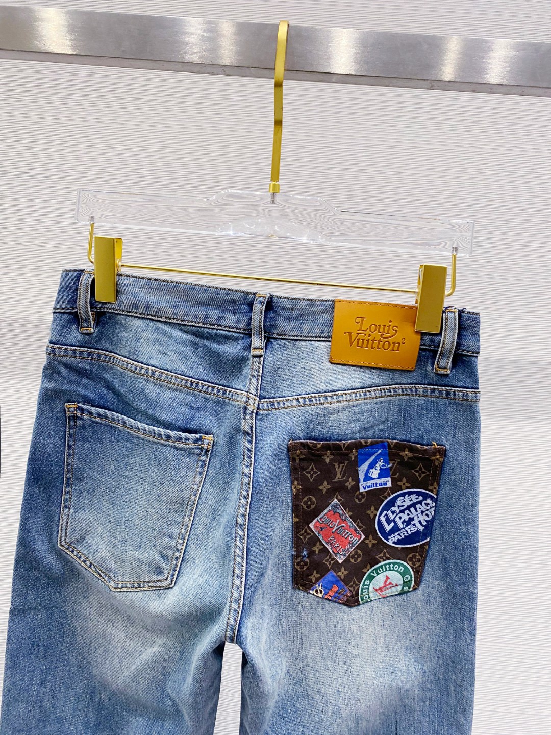 LV 2025ss slim-fit skinny jeans. Custom stretch fabric, premium hardware. Sizes 29-38 (excl. 35, 37).