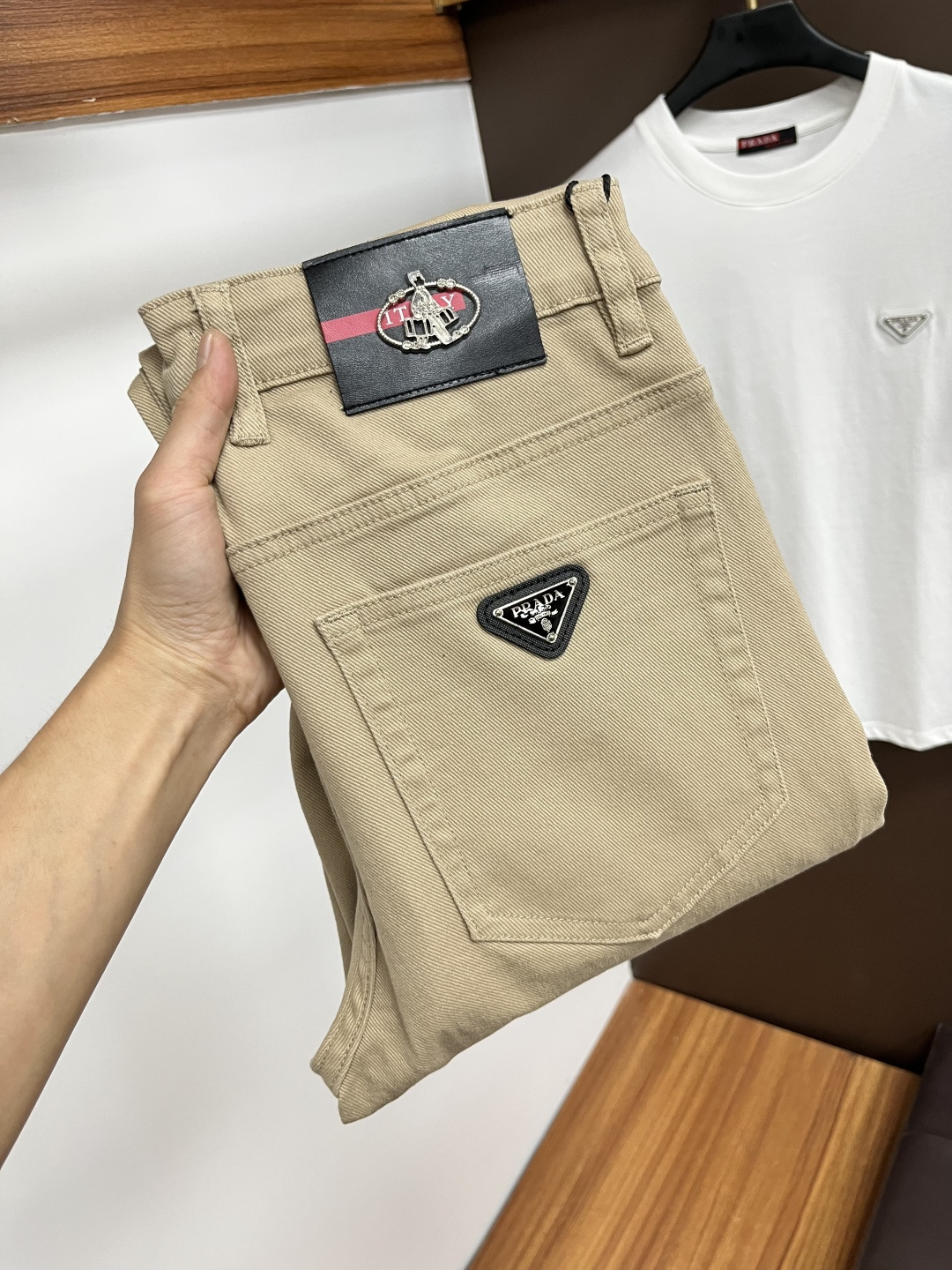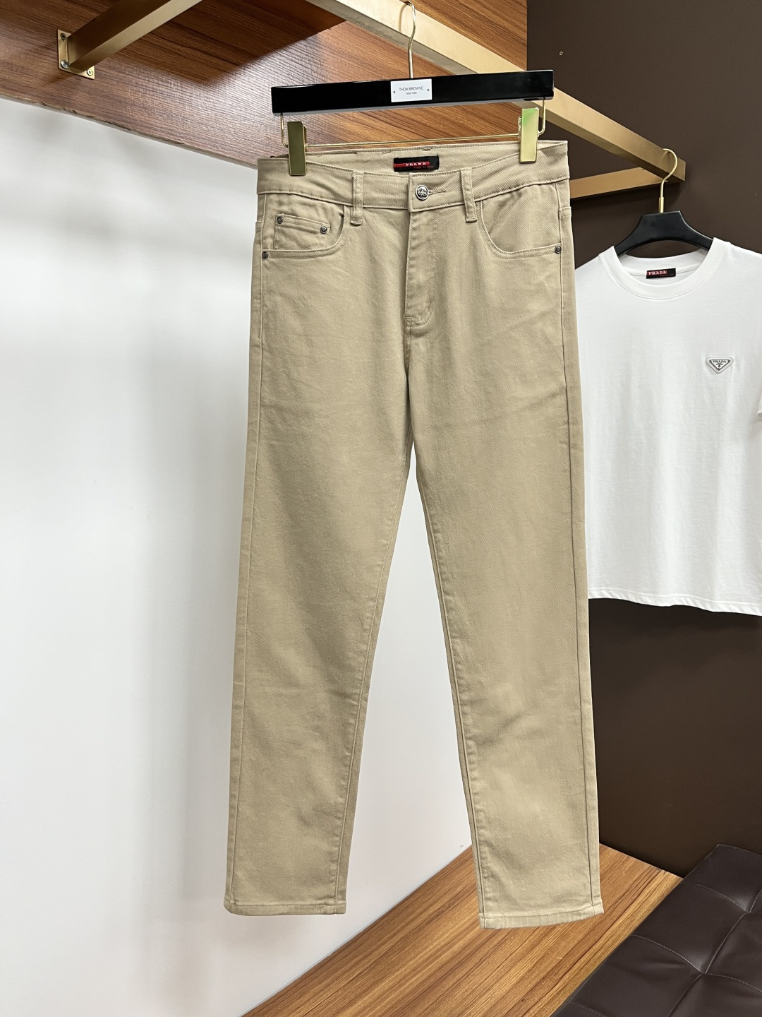 Prada 2025 Fall Men's European Business Casual Jeans. High-quality fabric, comfortable & breathable. Versatile for office or weekends. Slim fit, sizes 29-40.
