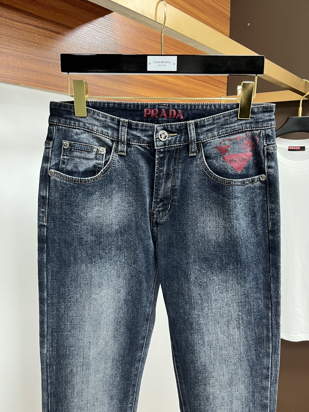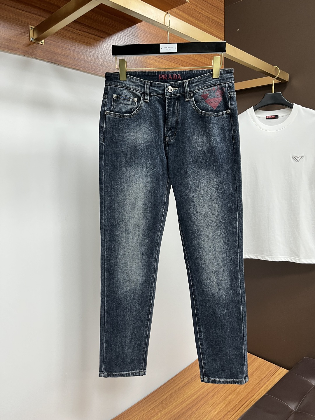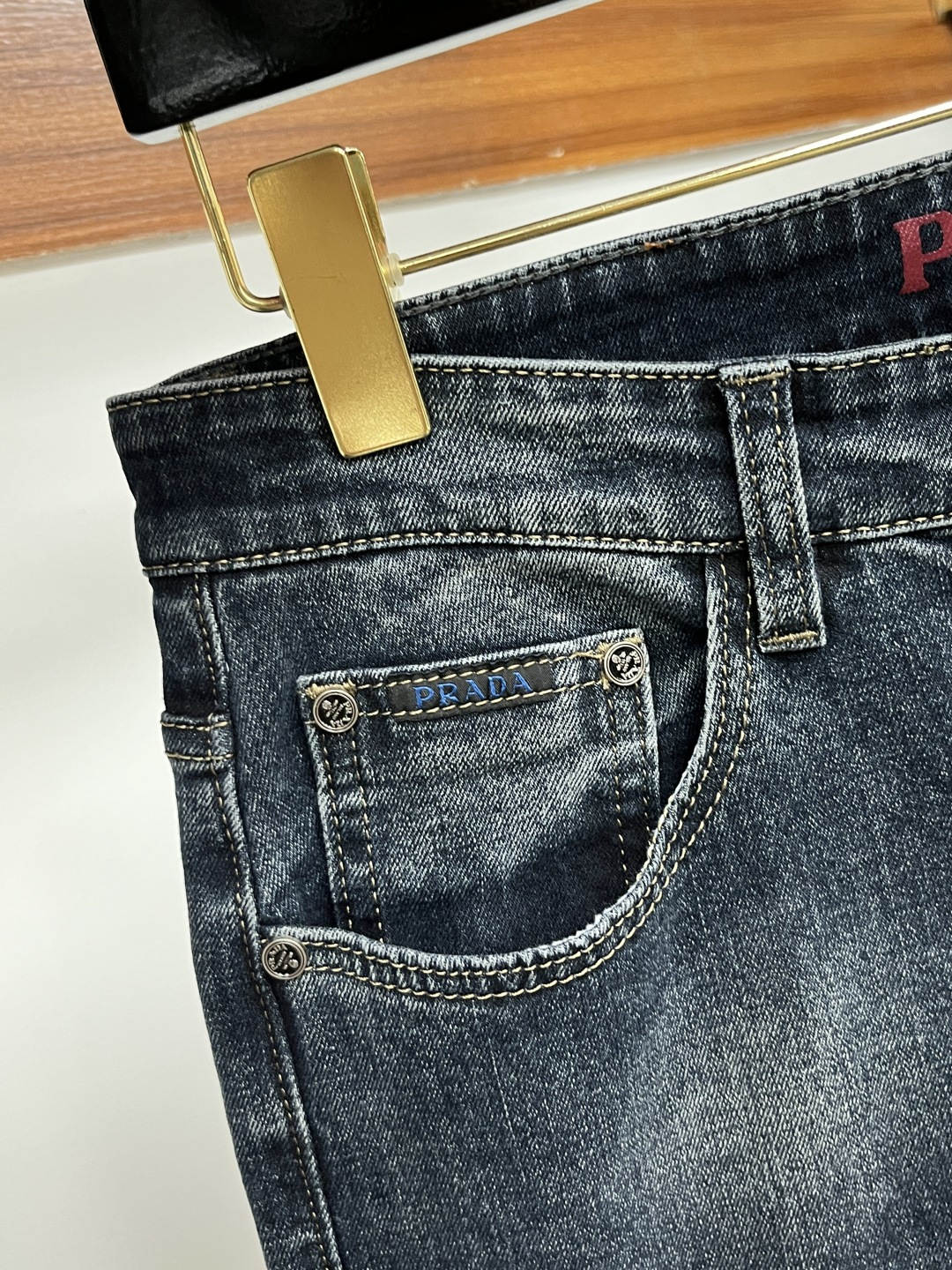 Prada 2025 Fall Men's European Business Casual Jeans. High-quality fabric, comfortable & breathable. Versatile for office or weekend. Slim fit, sizes 29-40.