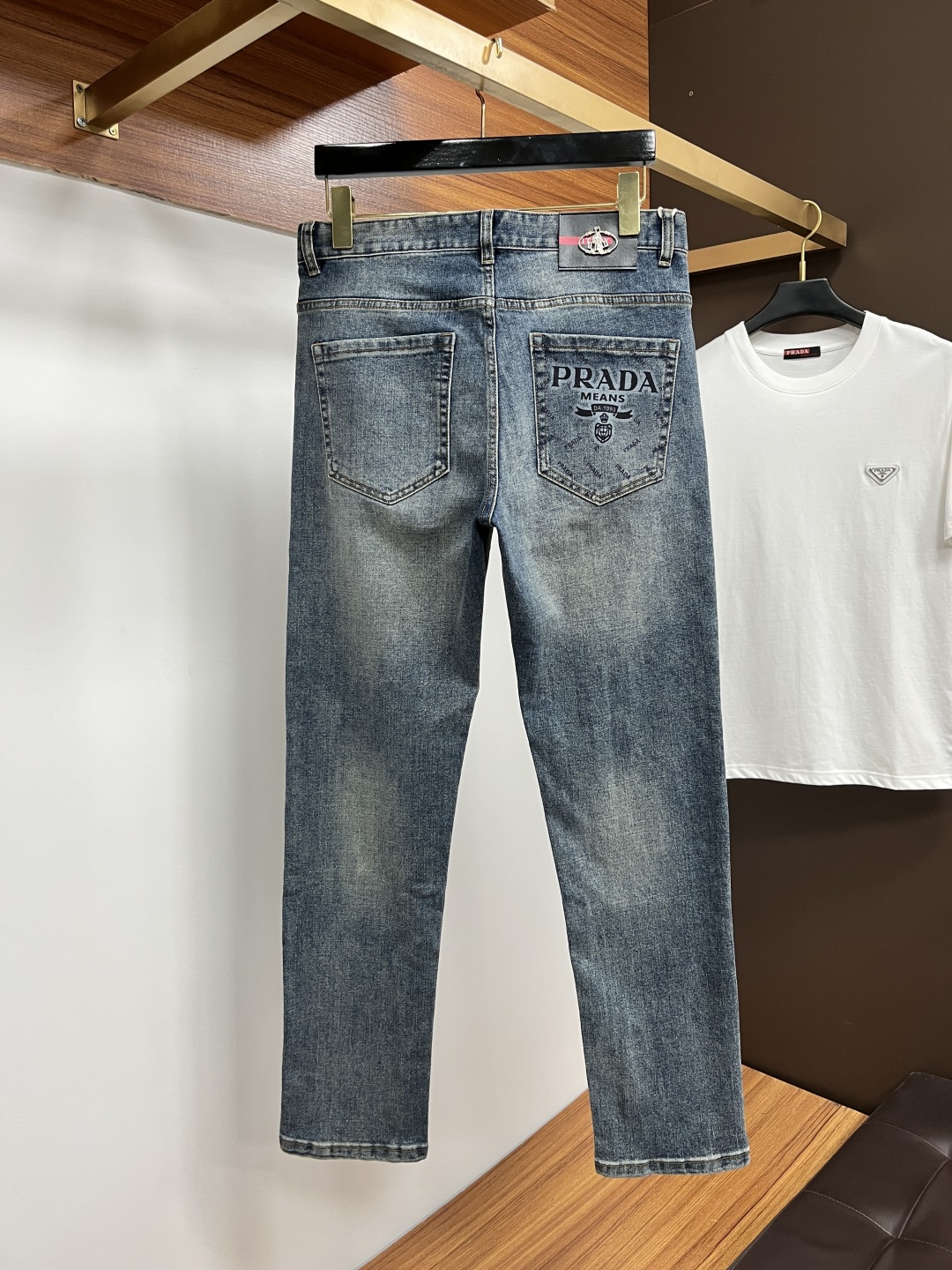 Prada 2025 Fall Men's European Business Casual Jeans. High-quality, comfortable fabric. Versatile for office or weekend wear. Slim fit, sizes 29-40.