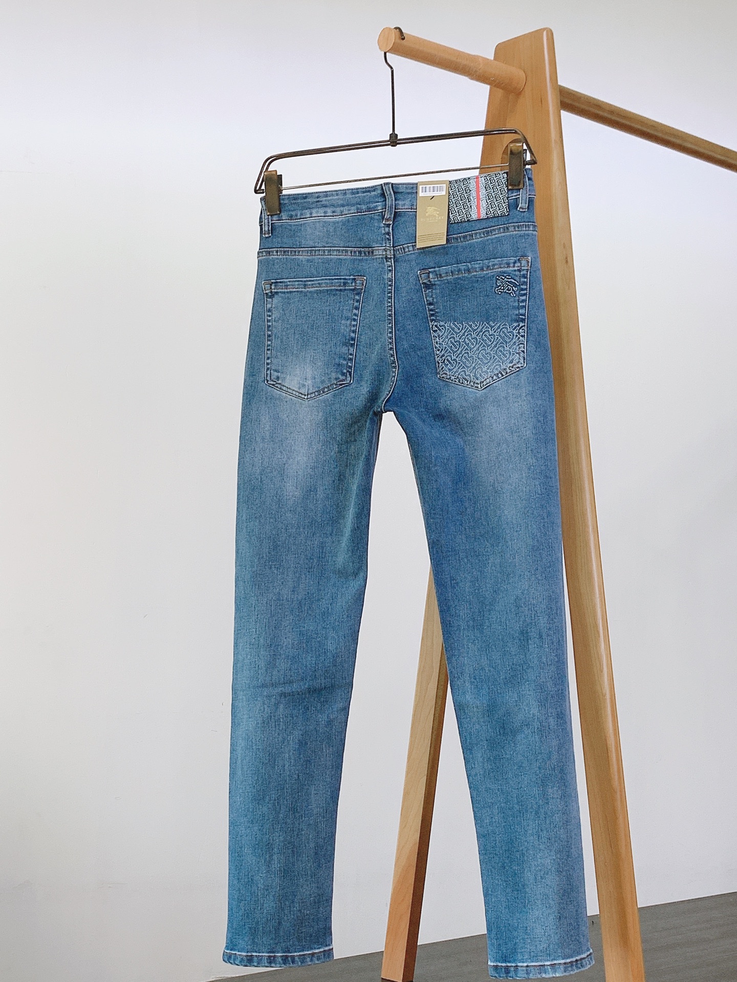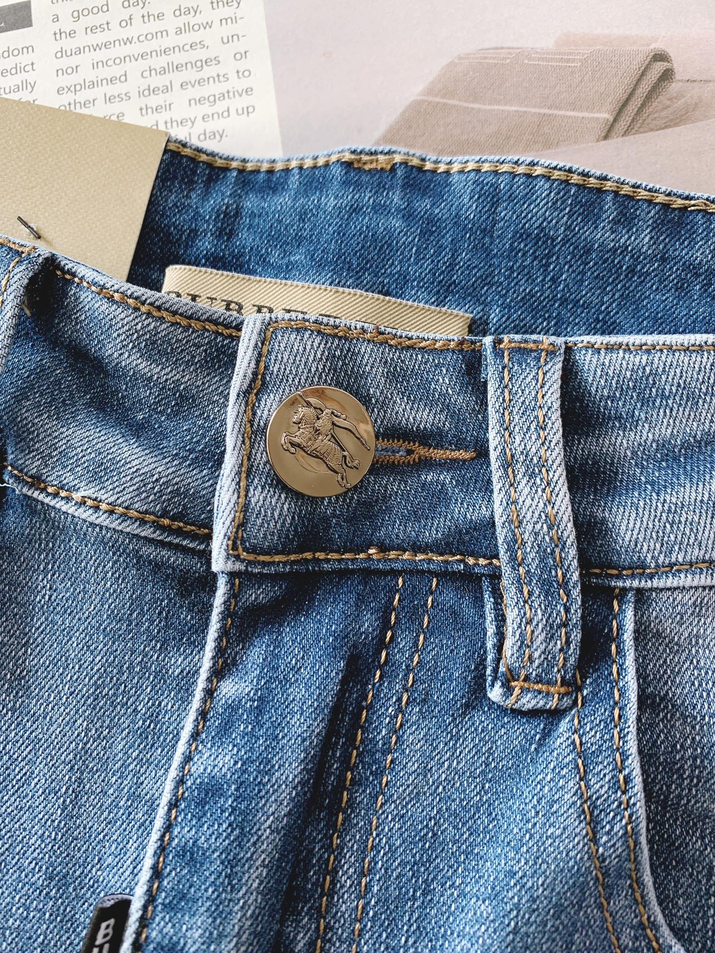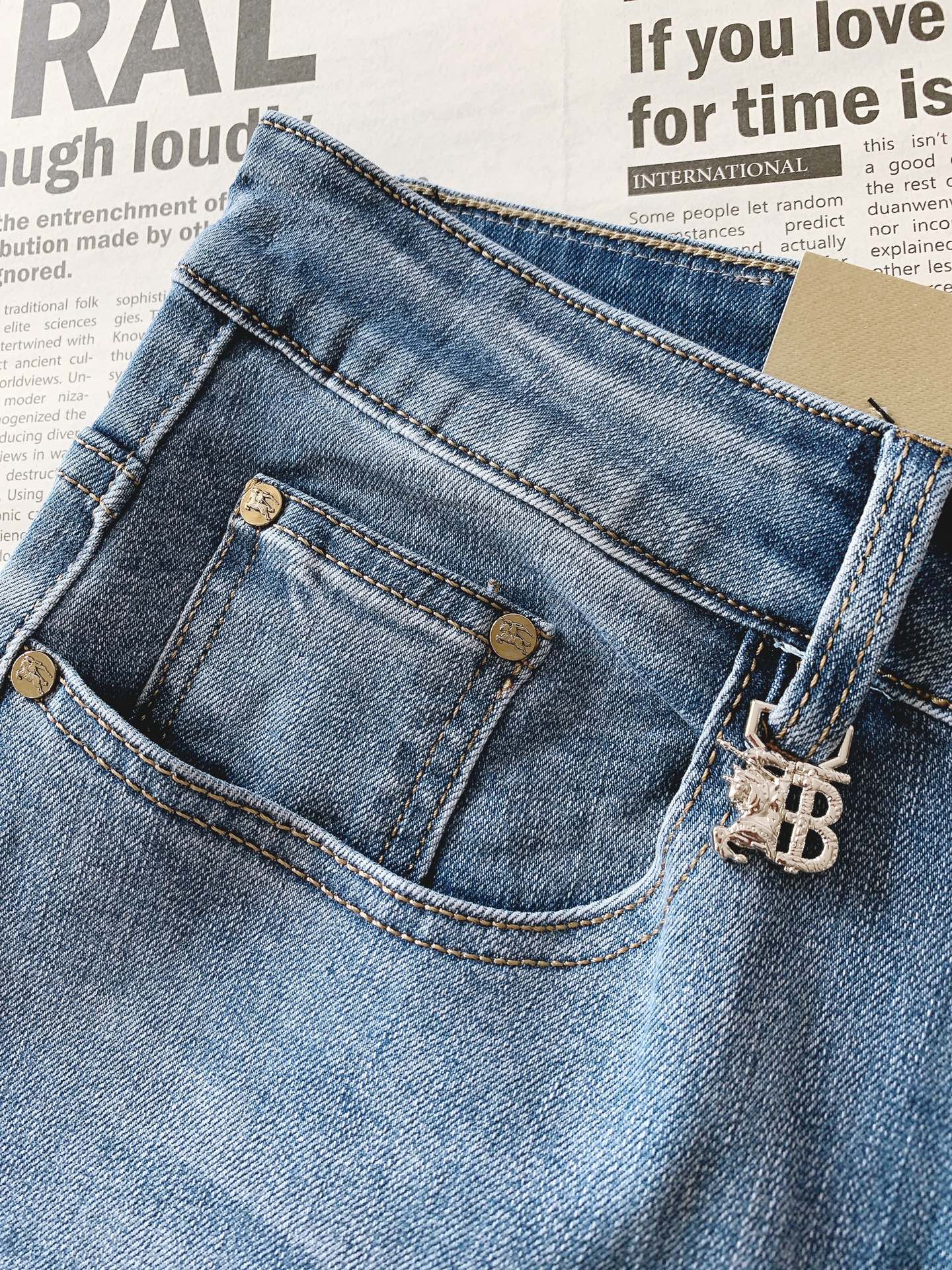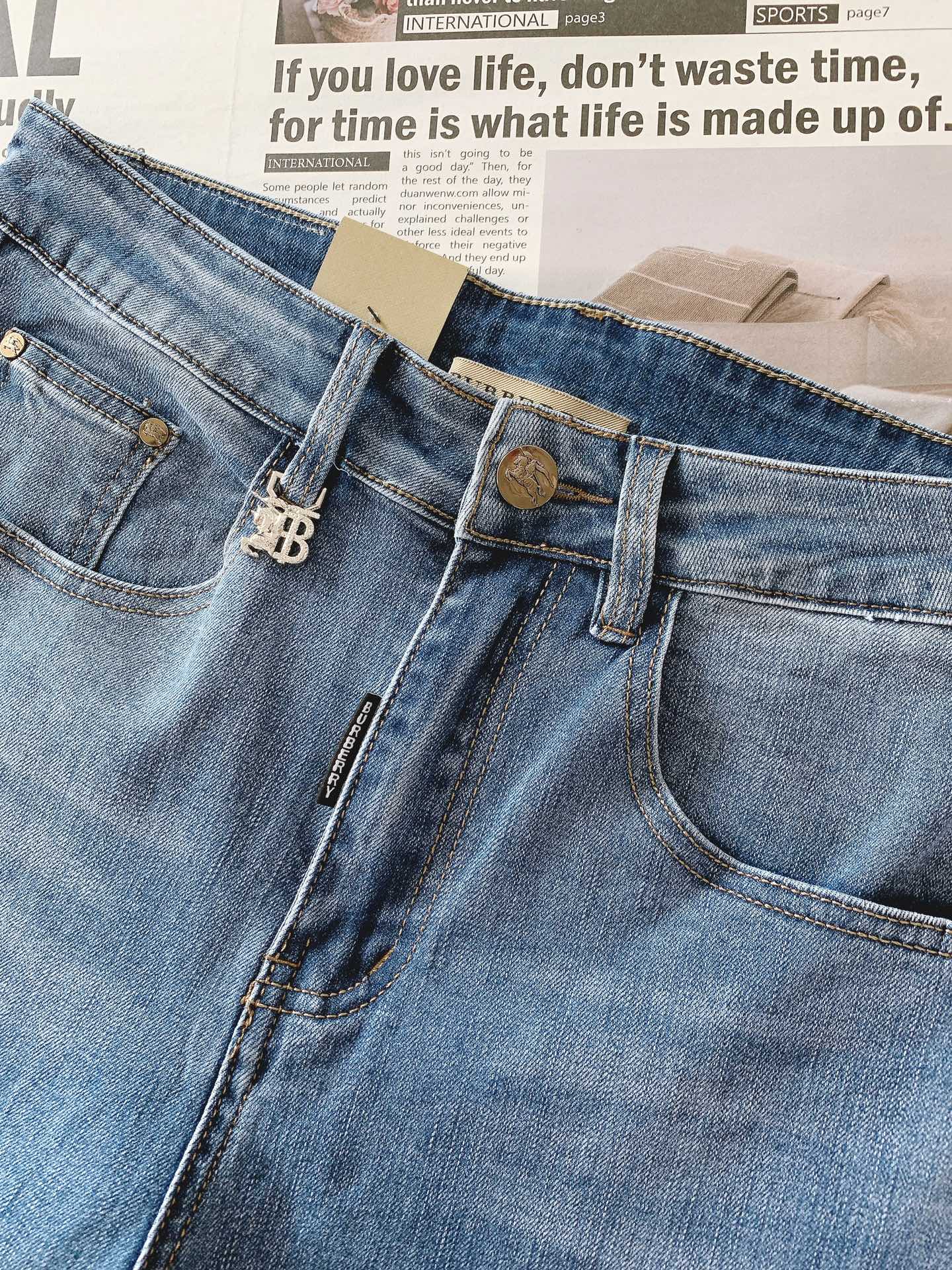 Burberry 2025SS spring/summer jeans. Premium casual wash, ultra-soft cotton blend, comfortable with slight stretch. Traditional hand-rubbing, stone washing. Slim straight cut, detailed craftsmanship. Size 28-38.