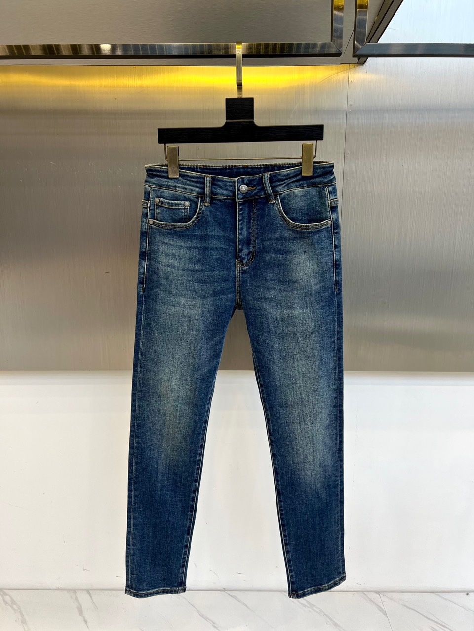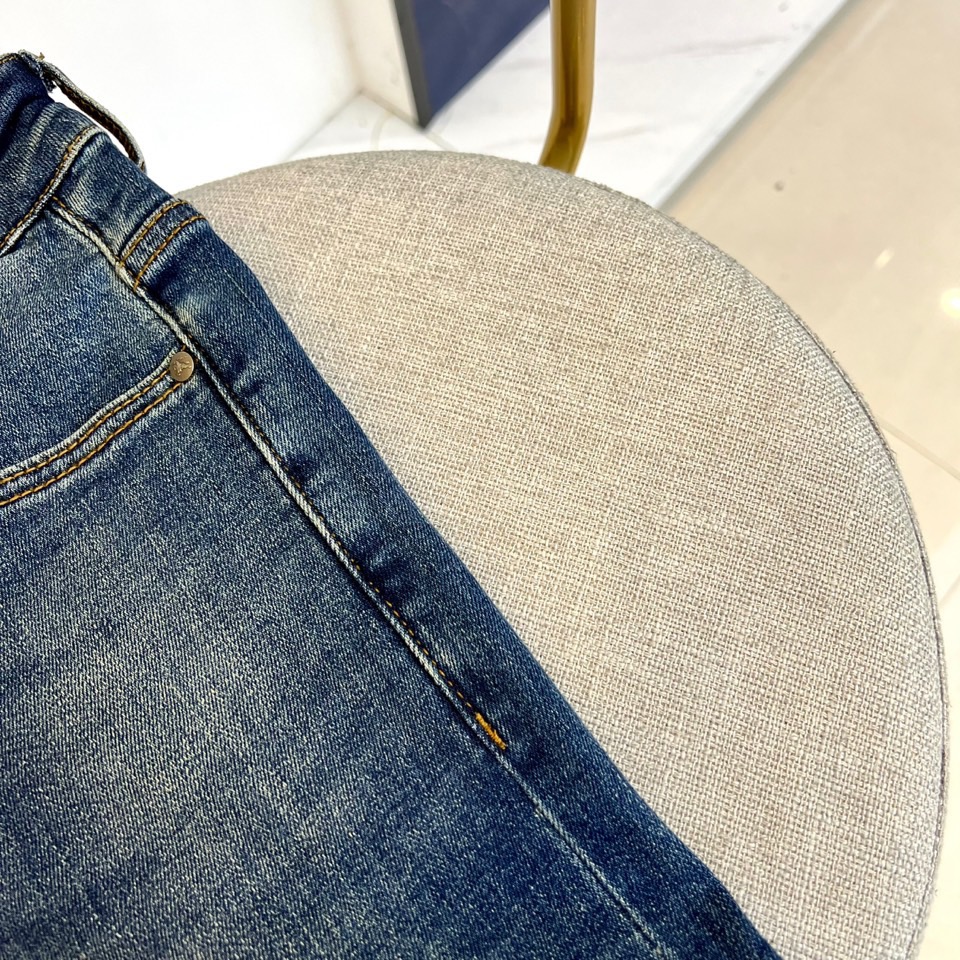 LV Thin Denim Jeans. 2025 latest style. 98% cotton, 2% spandex. Solid, slightly stretchy, comfortable. Simple design, hidden zipper, embossed pockets. Excellent fit.