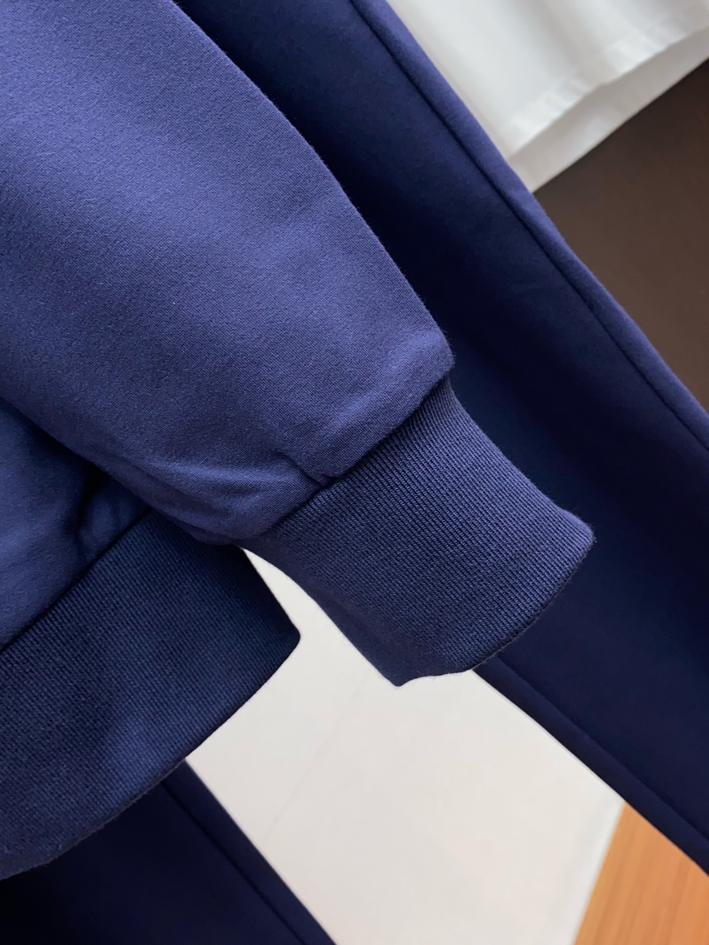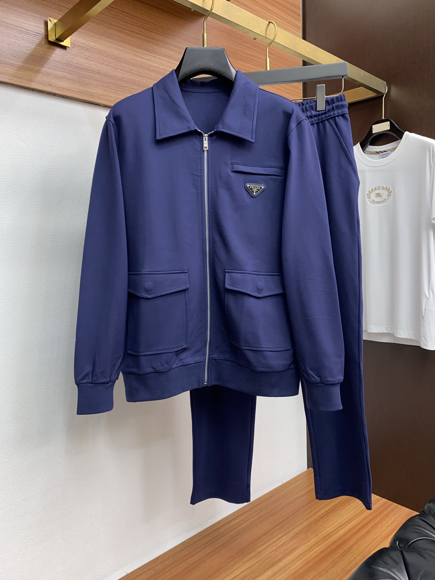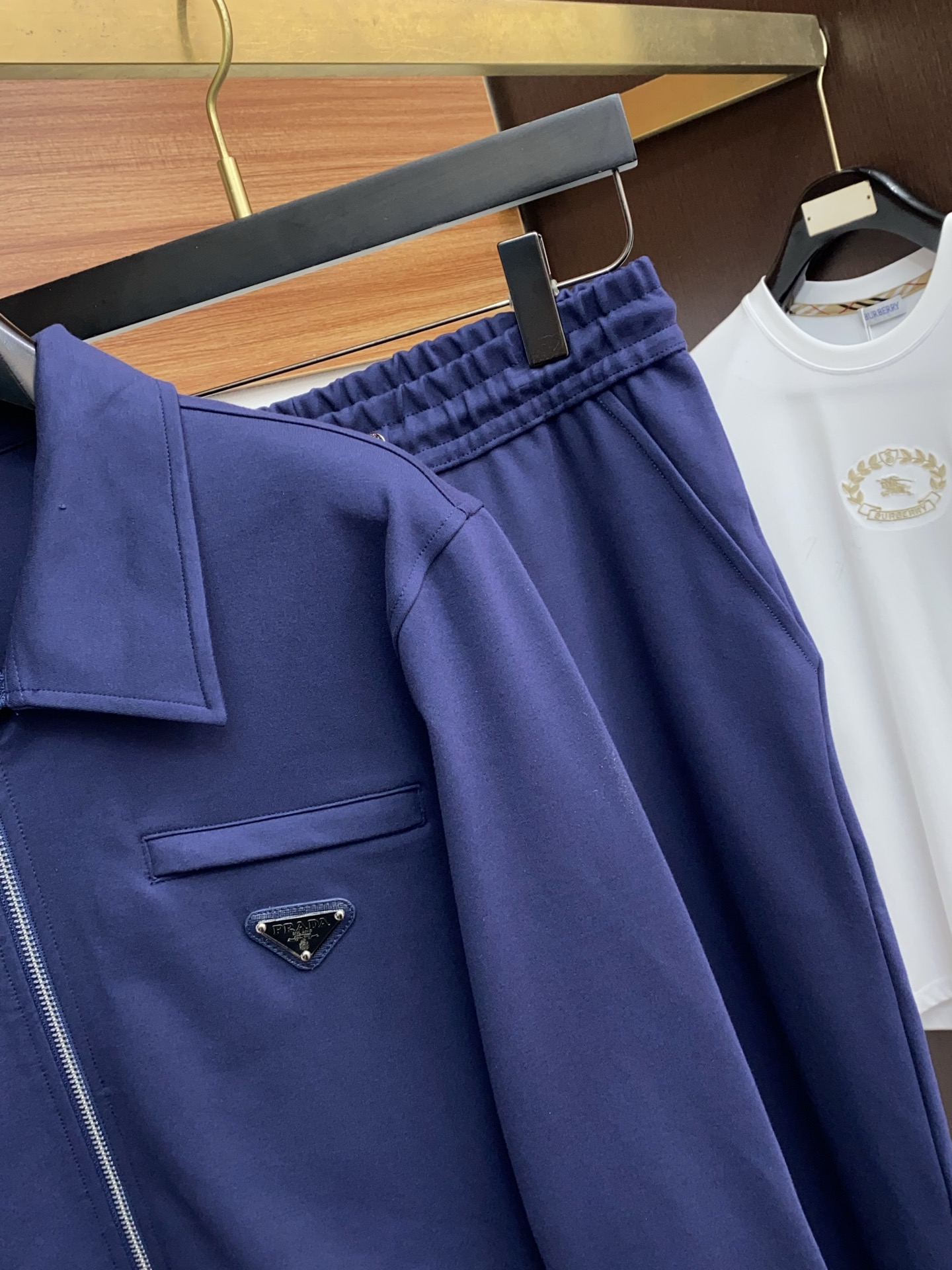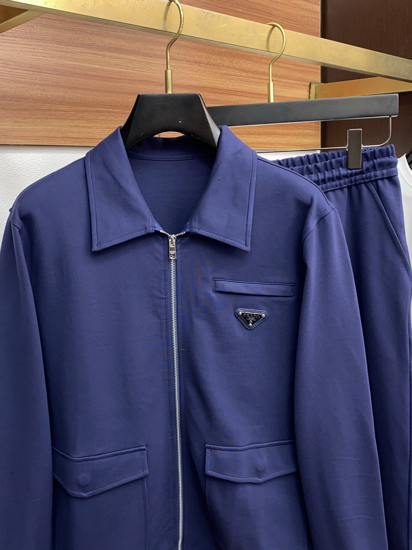 Prada 2025秋冬连帽外套与束脚裤套装。立体剪裁,刺绣徽标,拉链口袋。抽绳腰头,多场合适用。尺码48-56。低调奢华运动风。