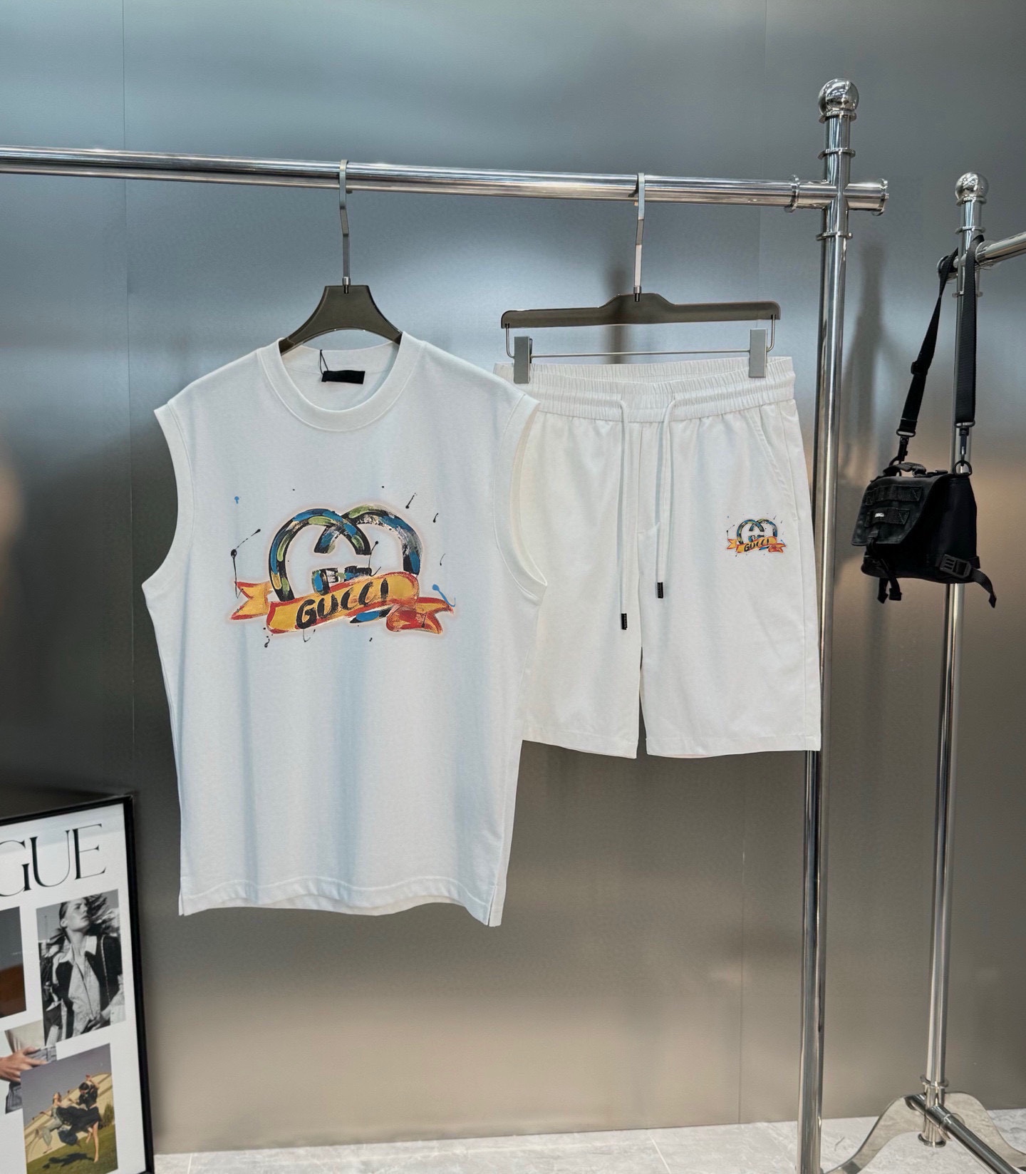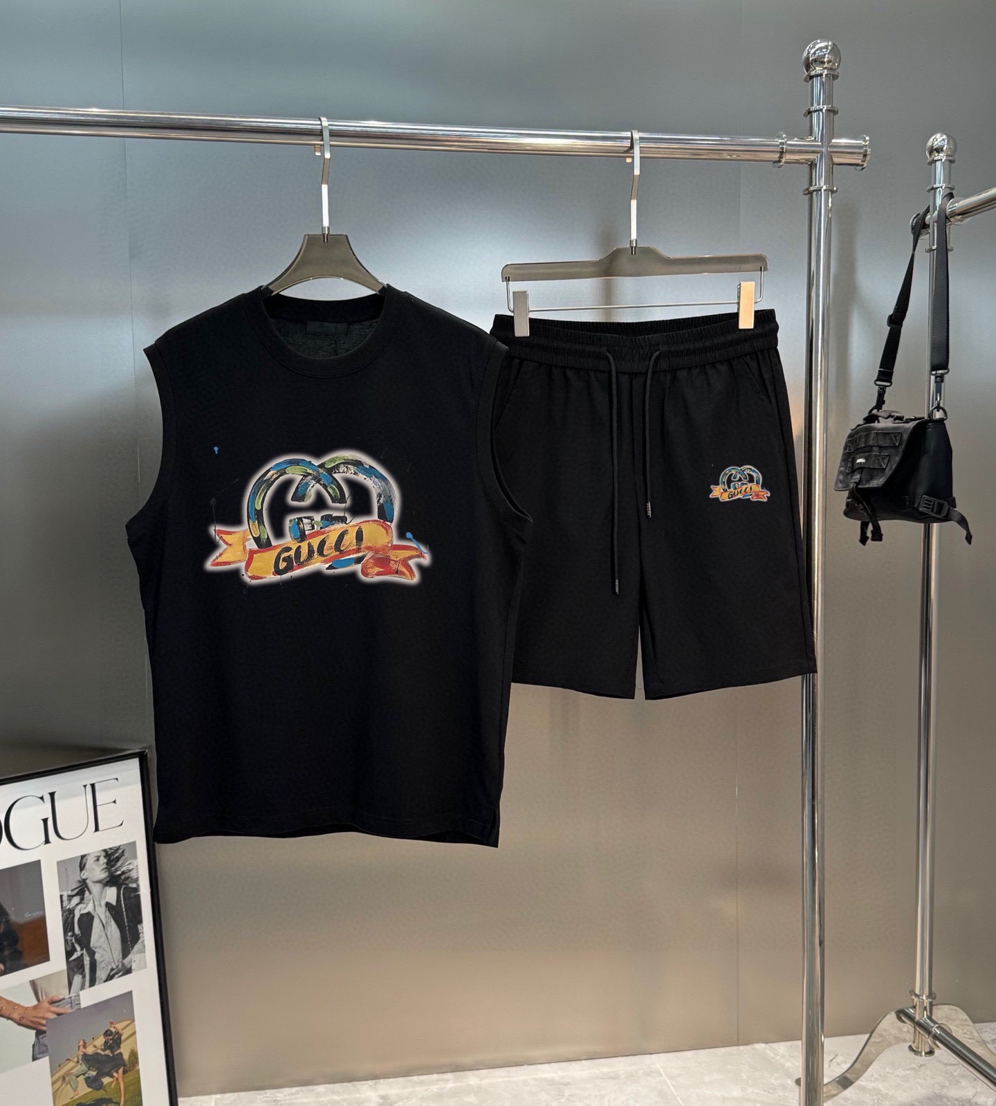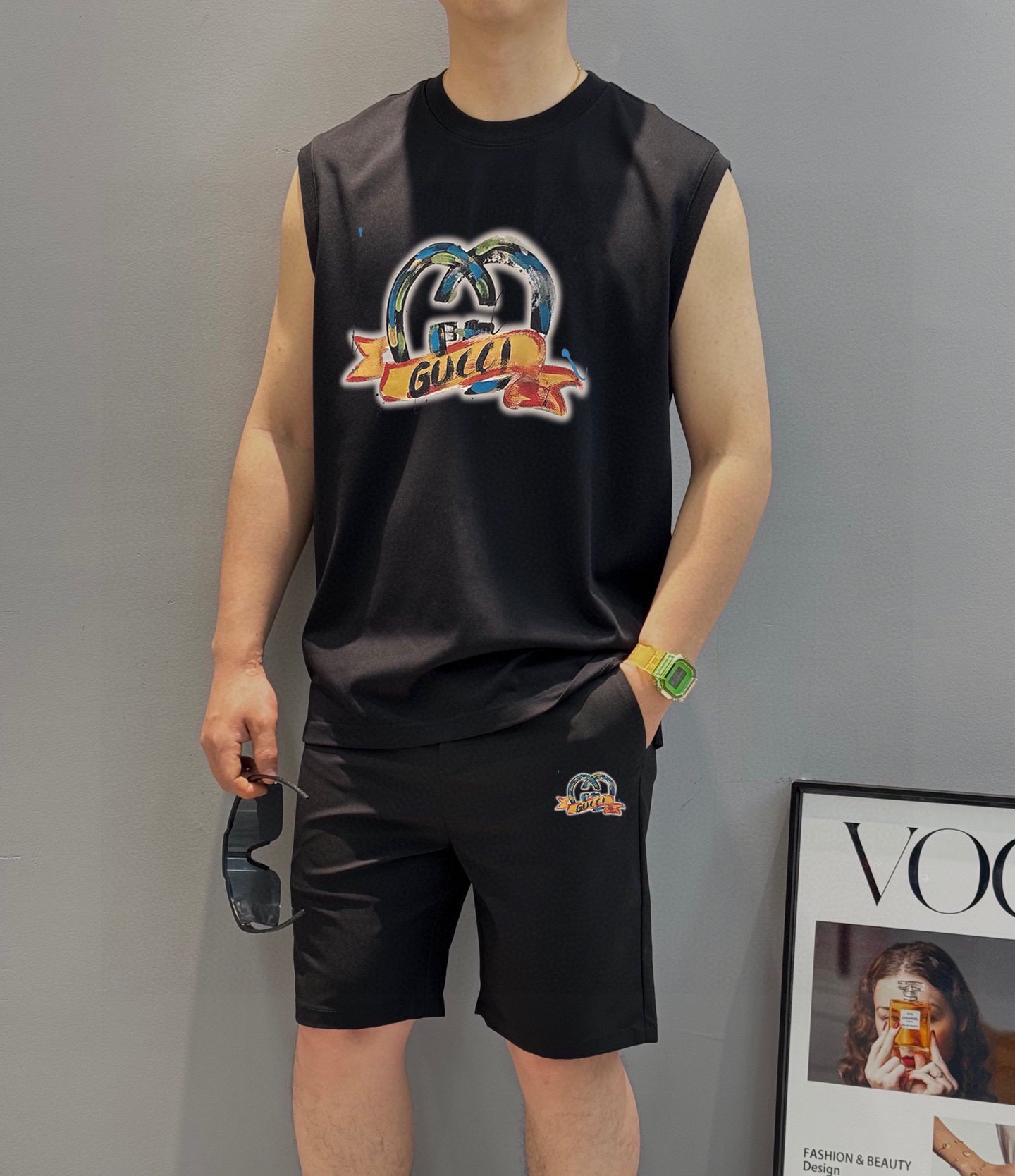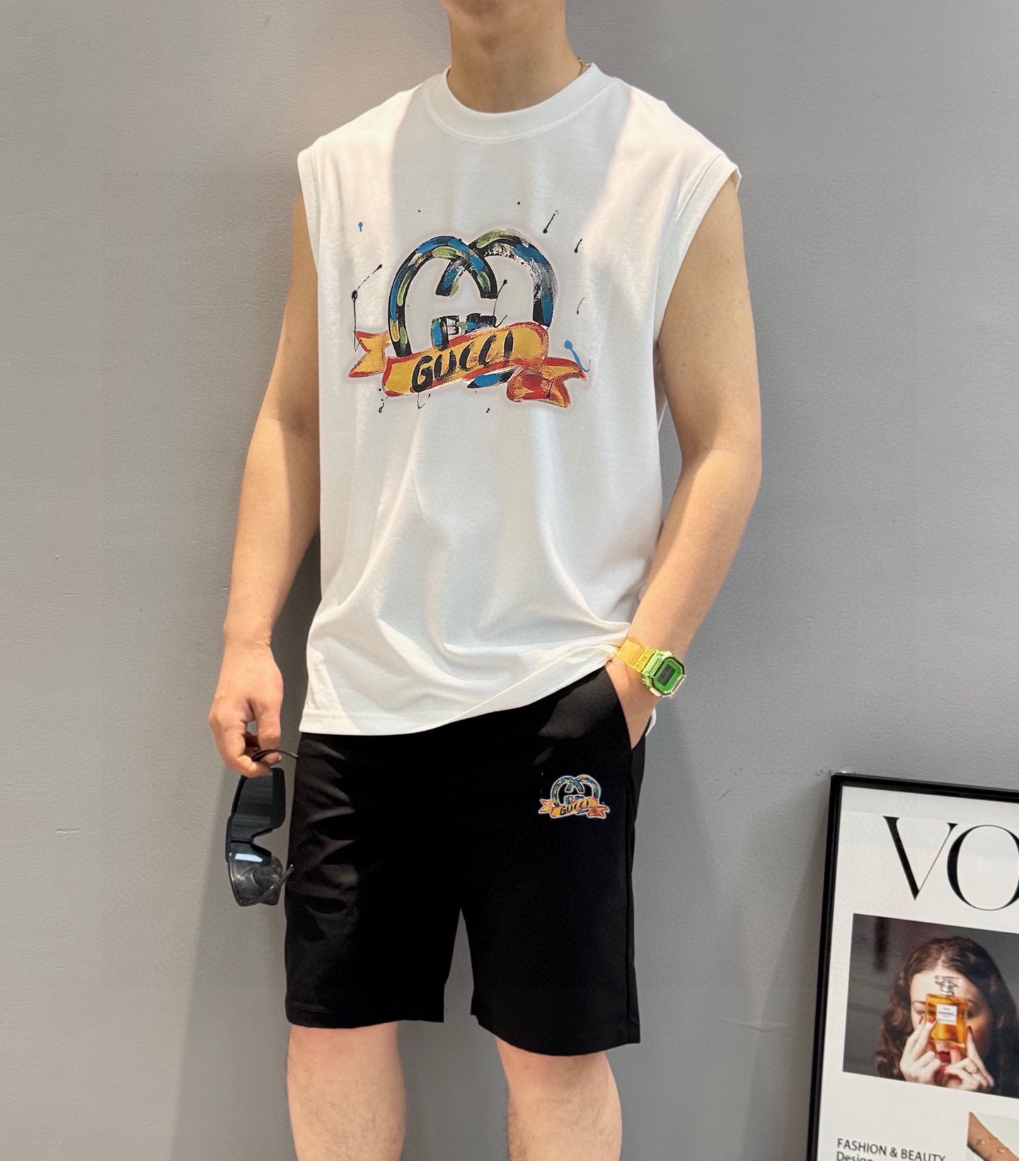 GUCCI 2025 spring summer vest set. Classic simple design, custom imported cotton, comfortable and breathable. Brand logo, luxurious style. Sizes M to 3XL.
