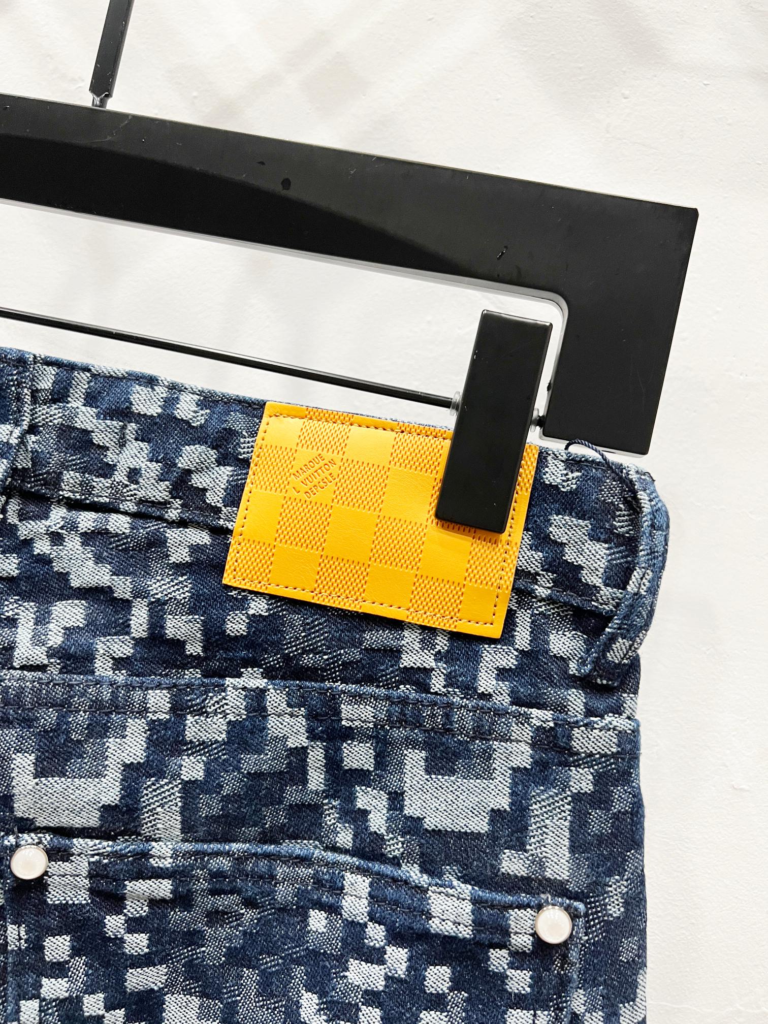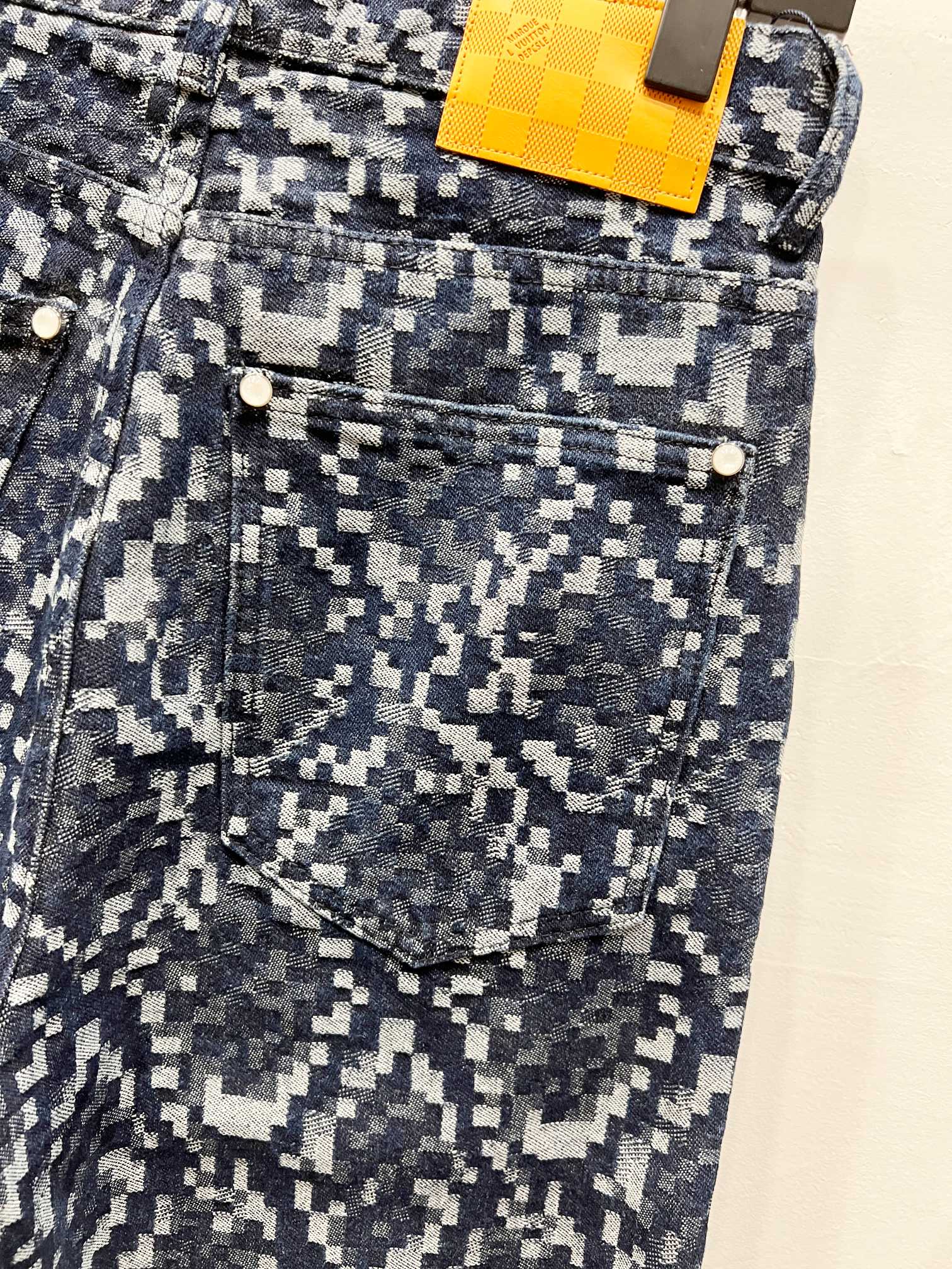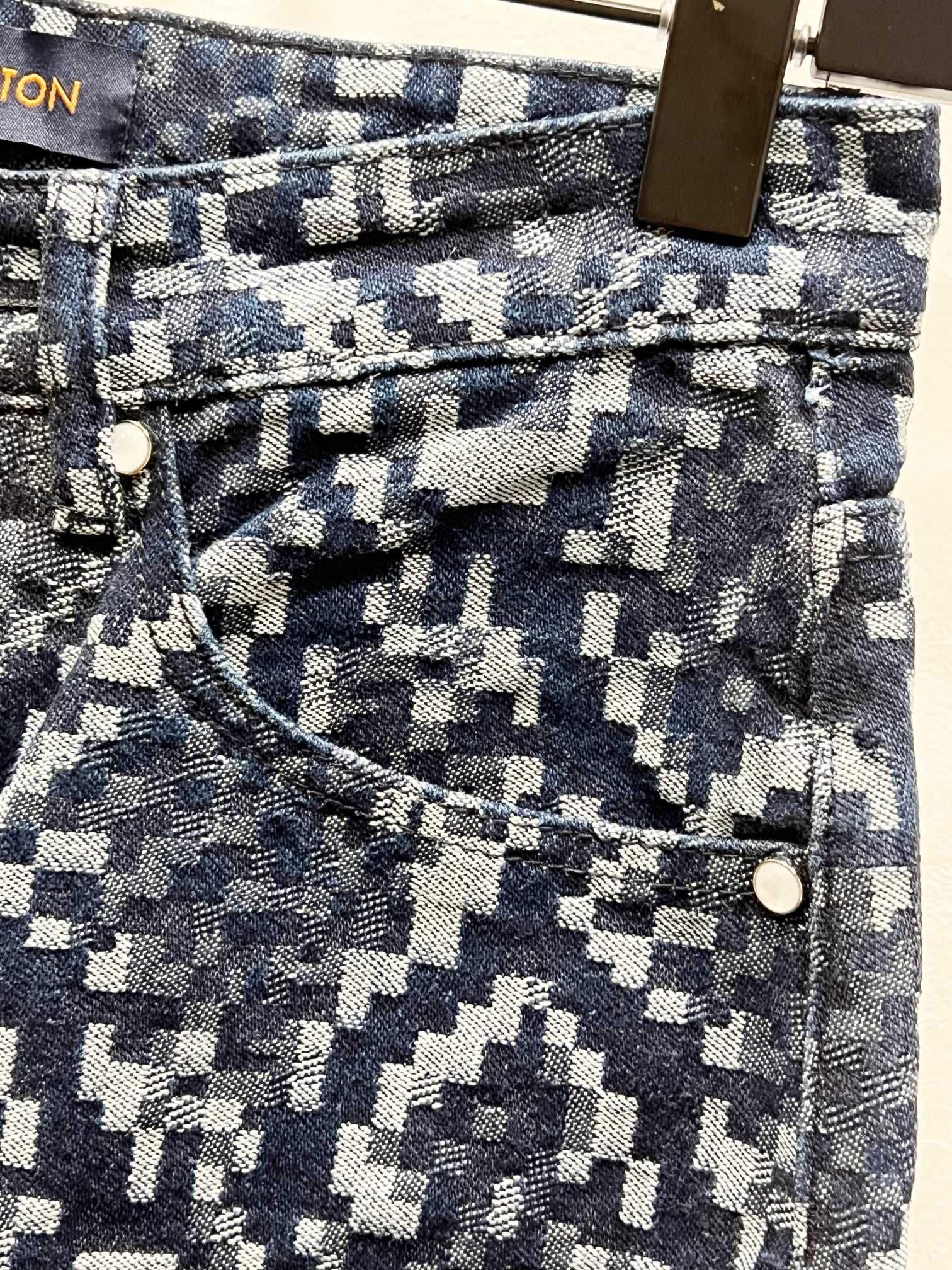 New LOUIS VUITTON jeans. Standard fit, full Damoflage jacquard denim. Features Marque L. Vuitton déposée logo on chest pocket. Sizes S,M,L,XL.