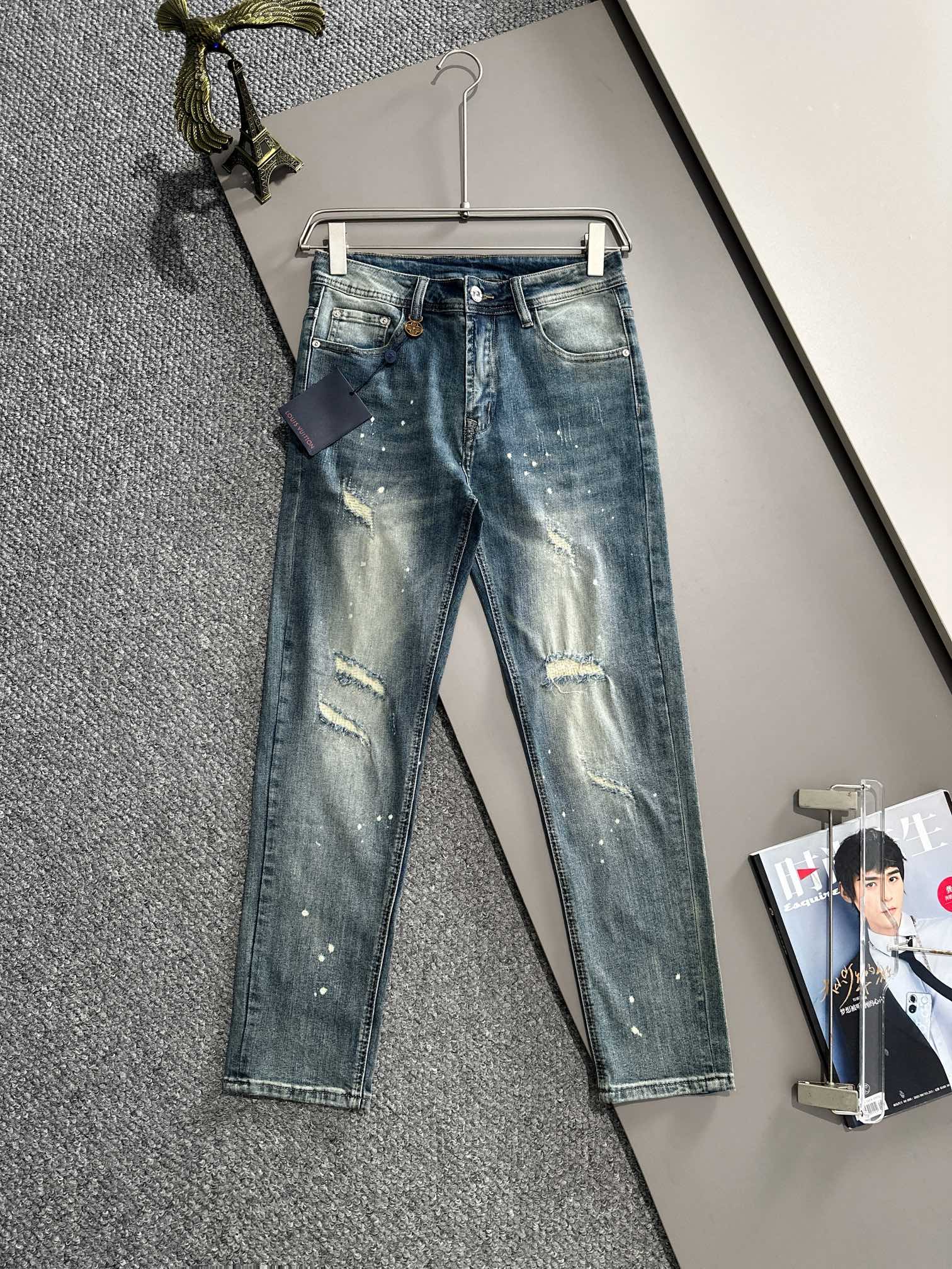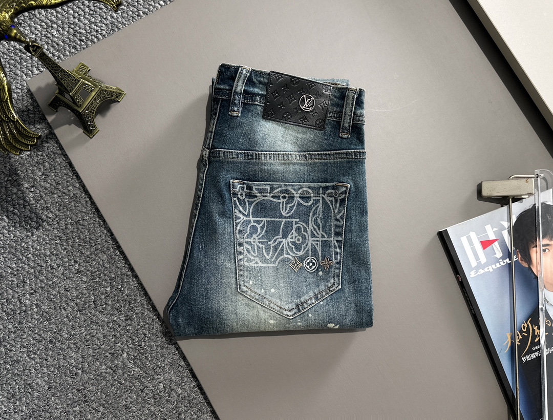 P245 LV2025 slim-fit jeans. Made from imported Japanese Denim cotton fabric. Complete labels, simple yet elegant, soft and comfortable. Versatile and stylish for daily wear. Sizes: 28-38.