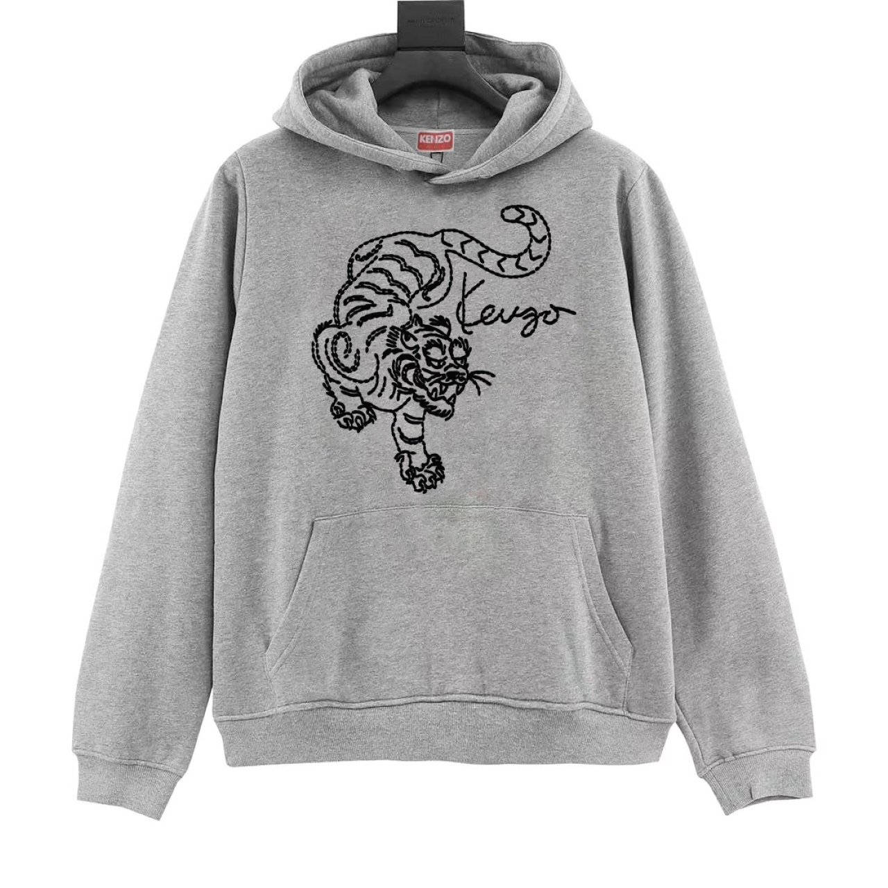 KENZO new print hoodie, 420g terry. Colors: Black, Grey. Sizes: XS to L.