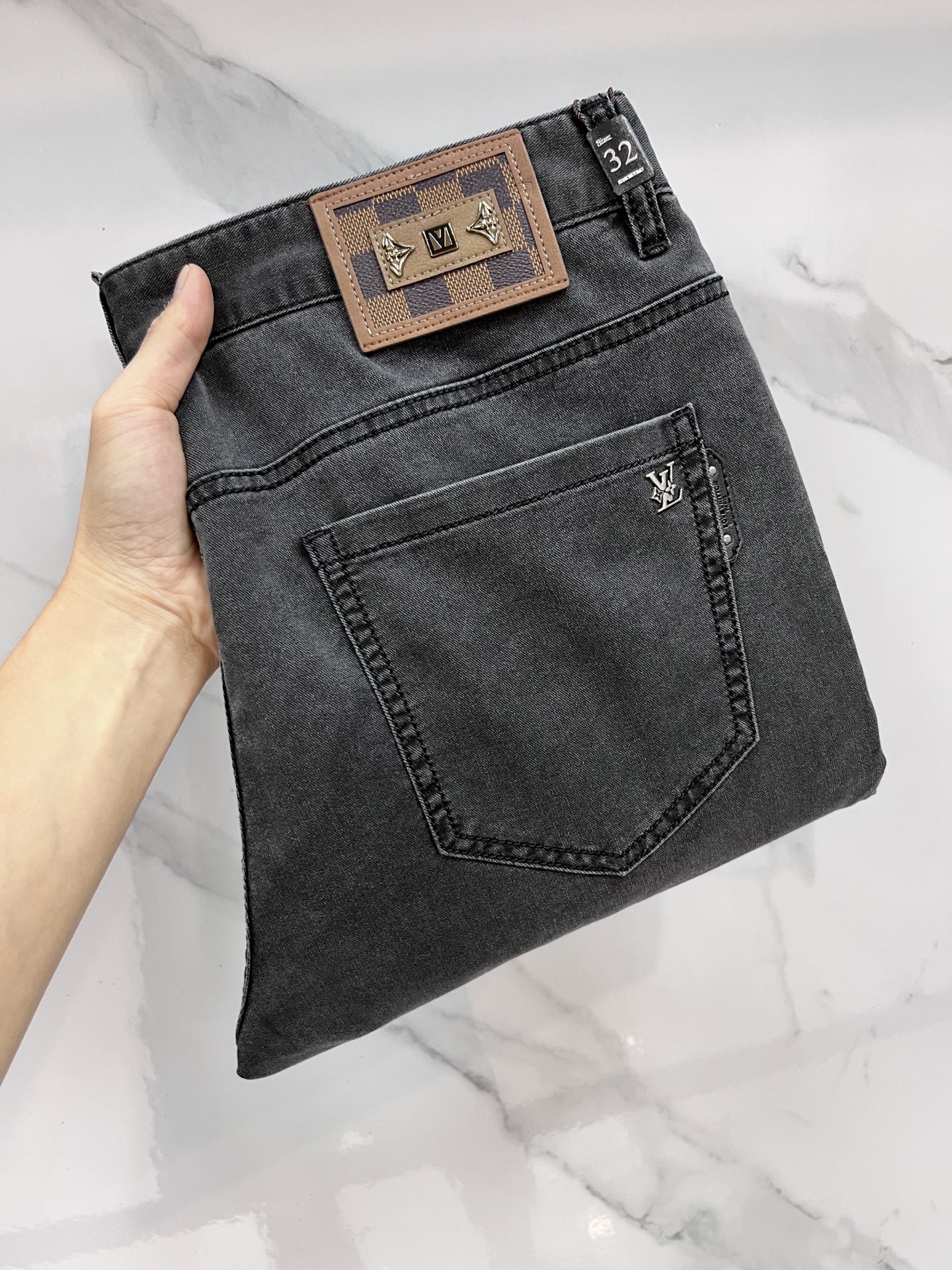 LV 2025SS early spring lightweight distressed jeans. Imported stretch denim, comfortable and breathable. Metal trim, flattering fit. Sizes 29-38.