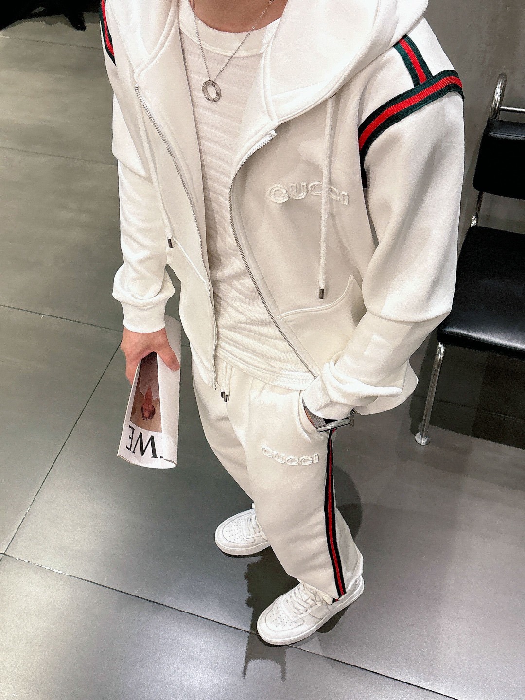 Home • Apparel • Suit • GUCCI 2025 new knitwear hoodie set, high-quality natural cotton, comfortable fit, elegant design. Sizes M-3XL, up to 190kg.