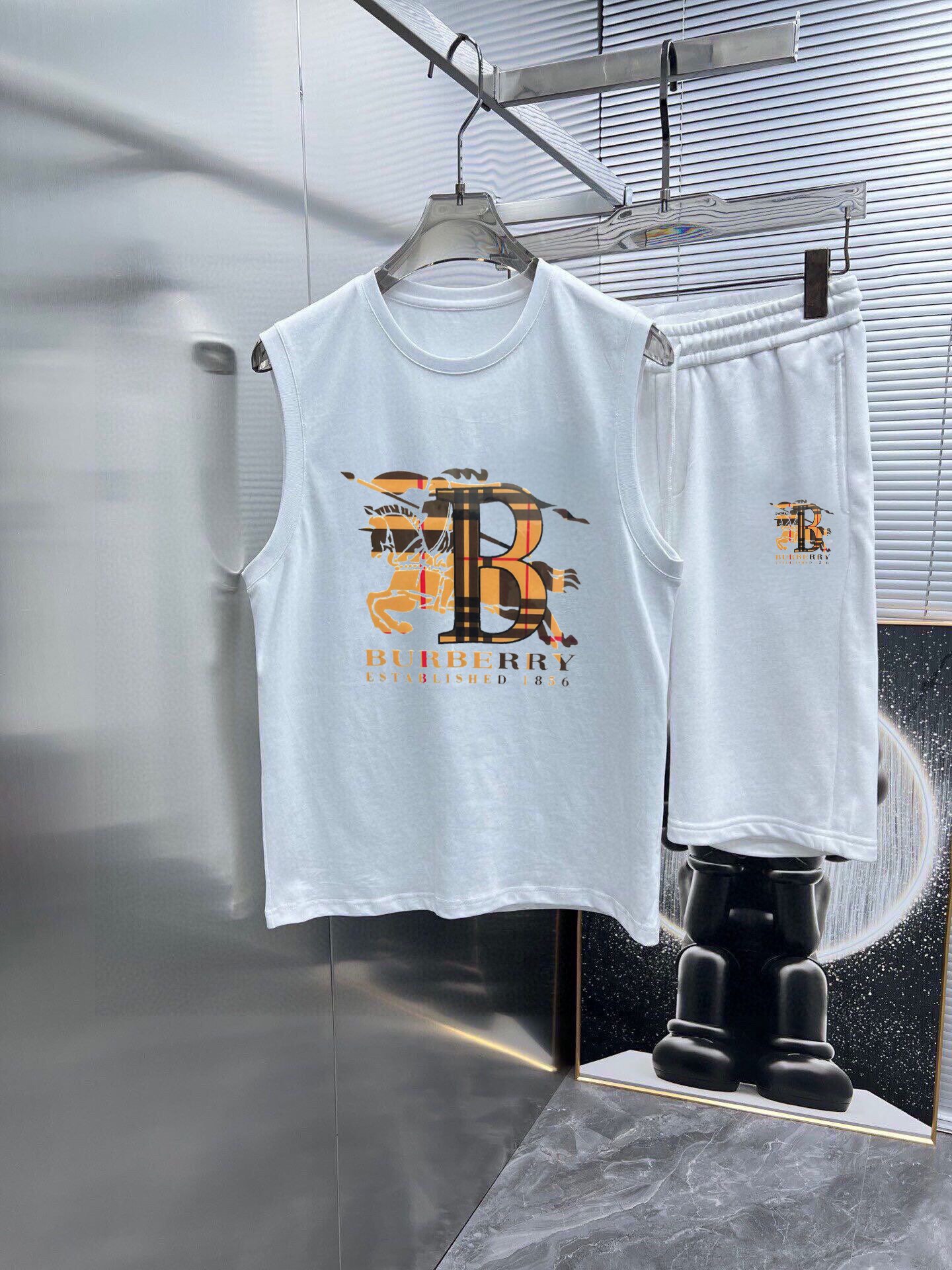 BURBERRY 2025 spring/summer vest set. Classic minimalist design, customizable mercerized cotton fabric, breathable and comfortable. Features iconic logo, luxurious fashion craftsmanship. Sizes M-3XL.