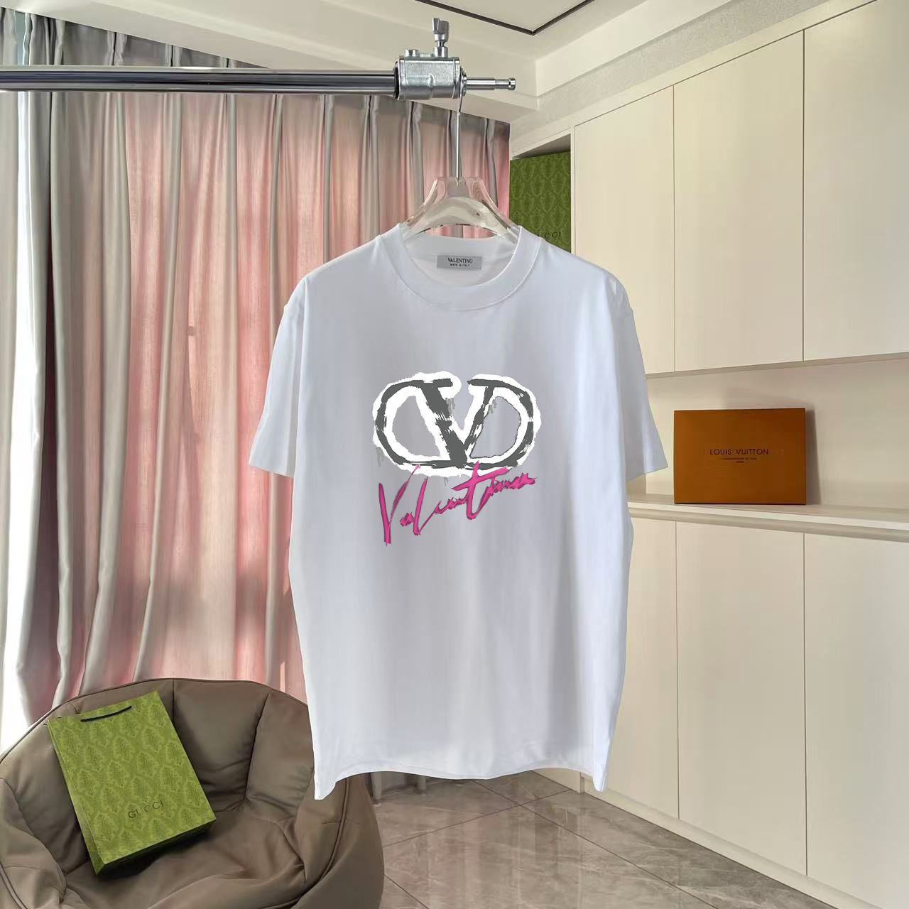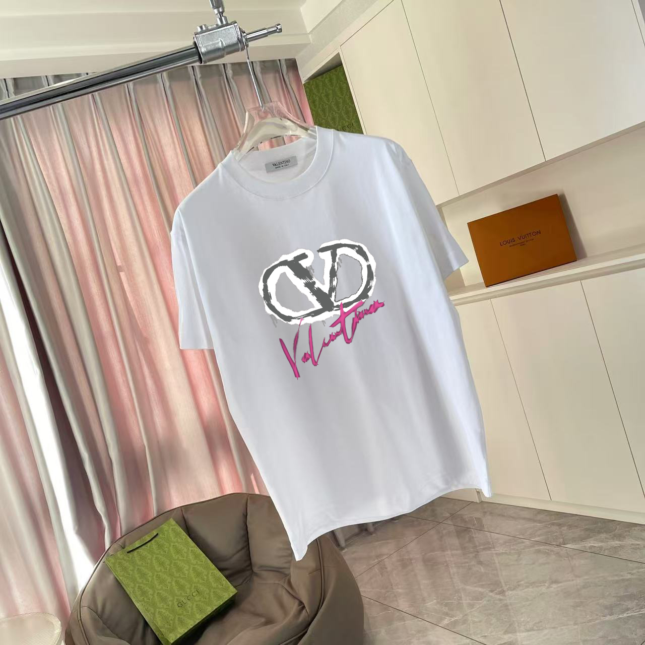 VALENTIN* Valentino 2025 Fall New Style Personalized Letter Logo Print Custom Fabric 300g Short Sleeve T-Shirt Unisex