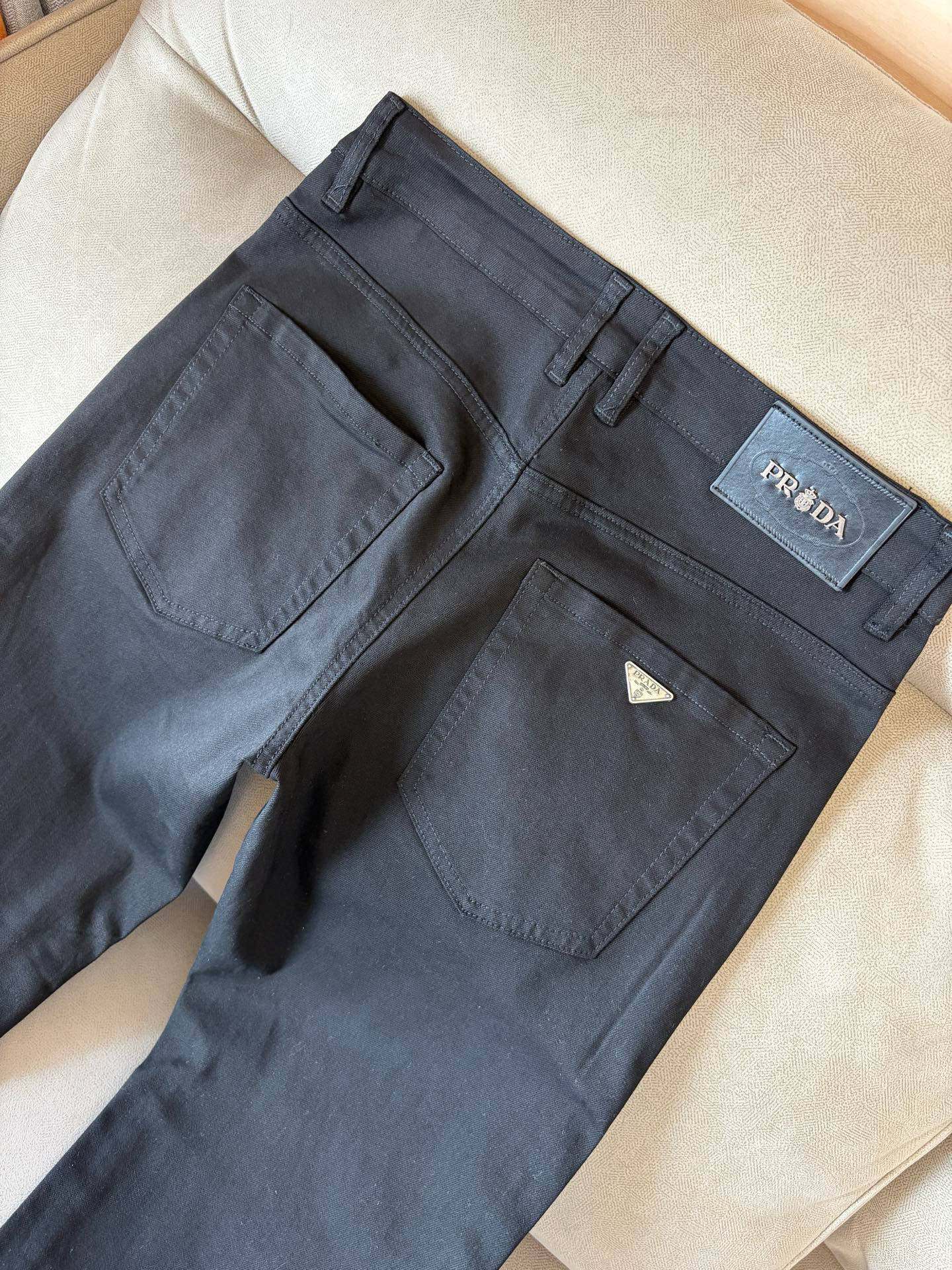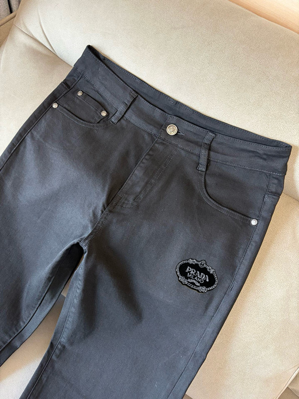 Prada jeans: custom denim, unique design, top embroidery, original hardware. Luxurious materials & craftsmanship. Stylish fit. Sizes 28-38 (no 35).