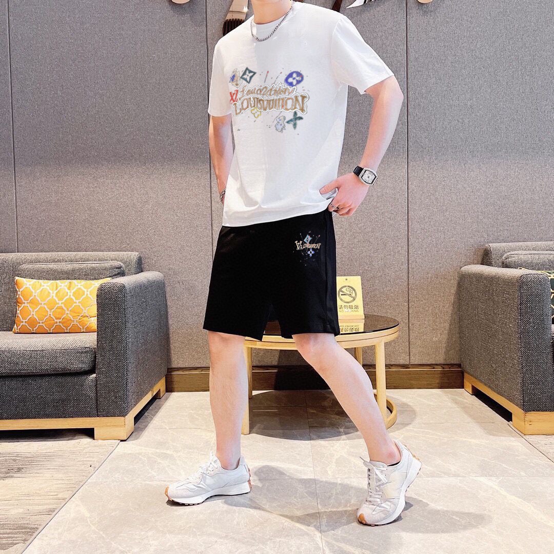 LV men's 2025 short sleeve & shorts set. Official store style, premium fabric, comfortable fit, sizes M-5XL.