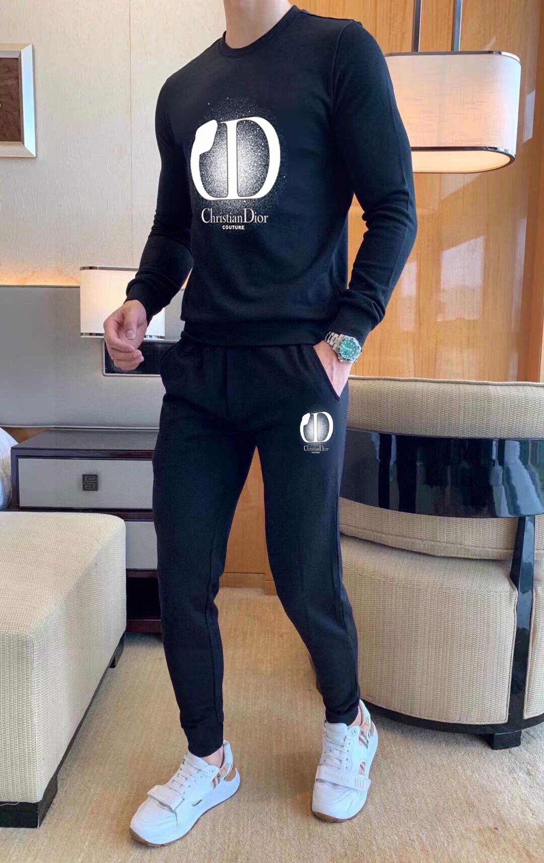 DIOR hoodie set with premium Roman cotton. M-5XL sizes, fits up to 220kg. Comfortable and elegant design.