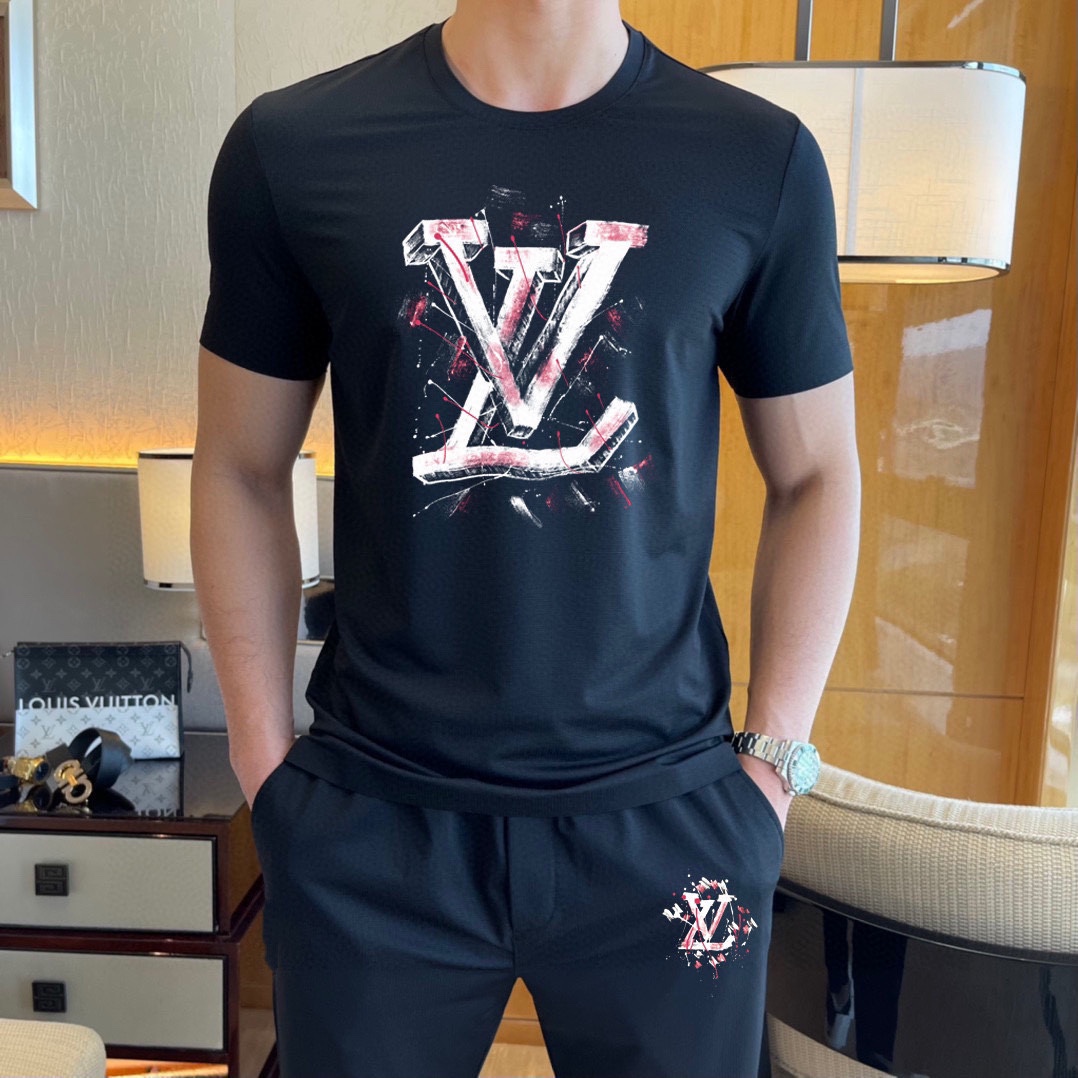 Louis Vuitton men's summer high-quality silk set. Imported fabric, trendy, versatile. Sizes M-5XL (up to 220 lbs).