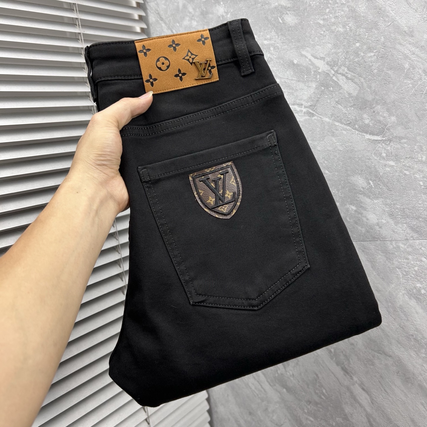 LV Thin Denim Jeans. 2025 latest style. 98% cotton, 2% spandex. Solid, slightly stretchy, comfortable. Simple design, hidden zipper, embossed pockets. Excellent fit.