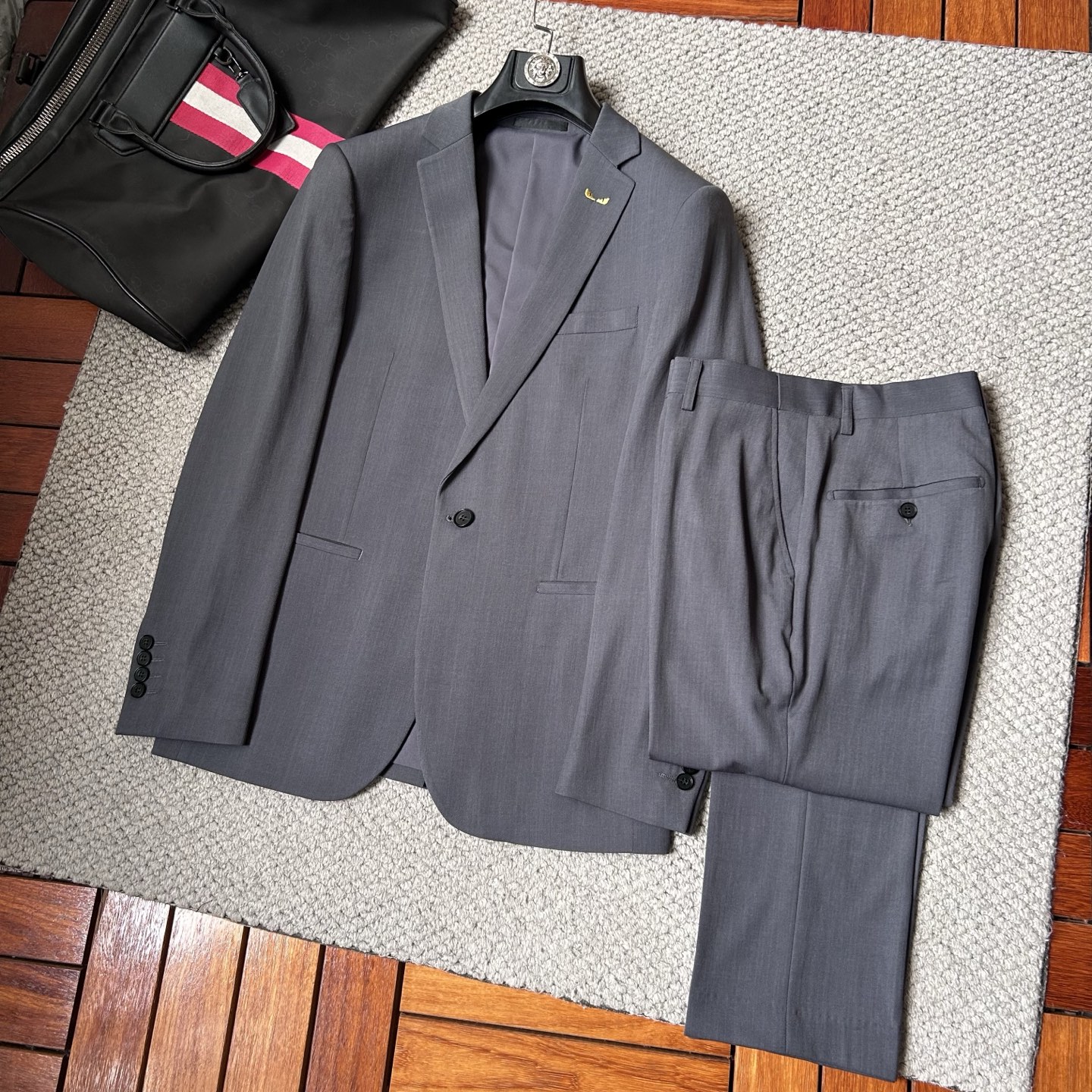 Fendi new suit. Imported polyester fabric, breathable, soft, warm. Neat stitching, logo hardware. Tailored fabric, high-end. Sizes 48-56.