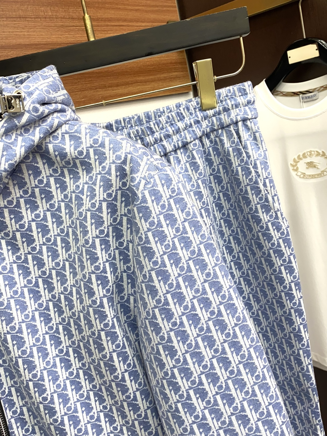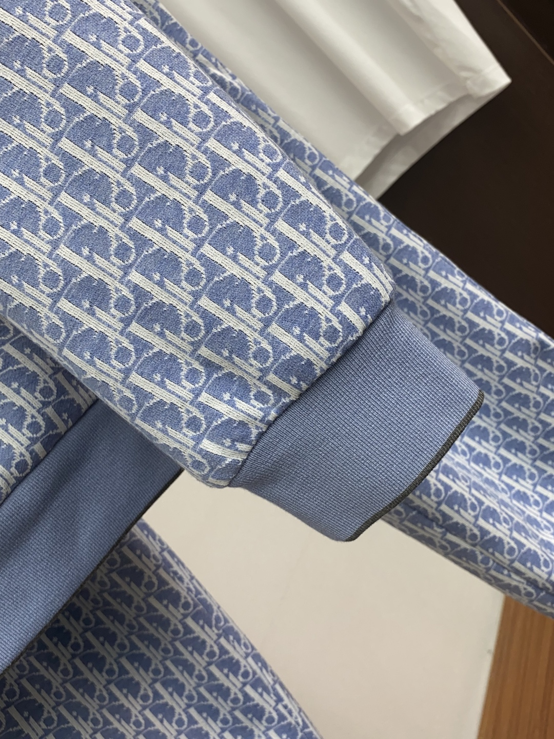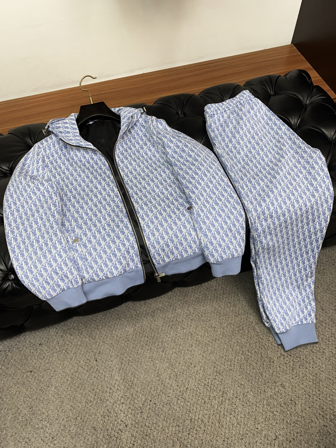 Dior 2025 early fall men's casual zip-up hoodie set. Loose fit, pure color design. Custom fabric, soft and breathable. Contrast chest detail. Versatile for daily wear.