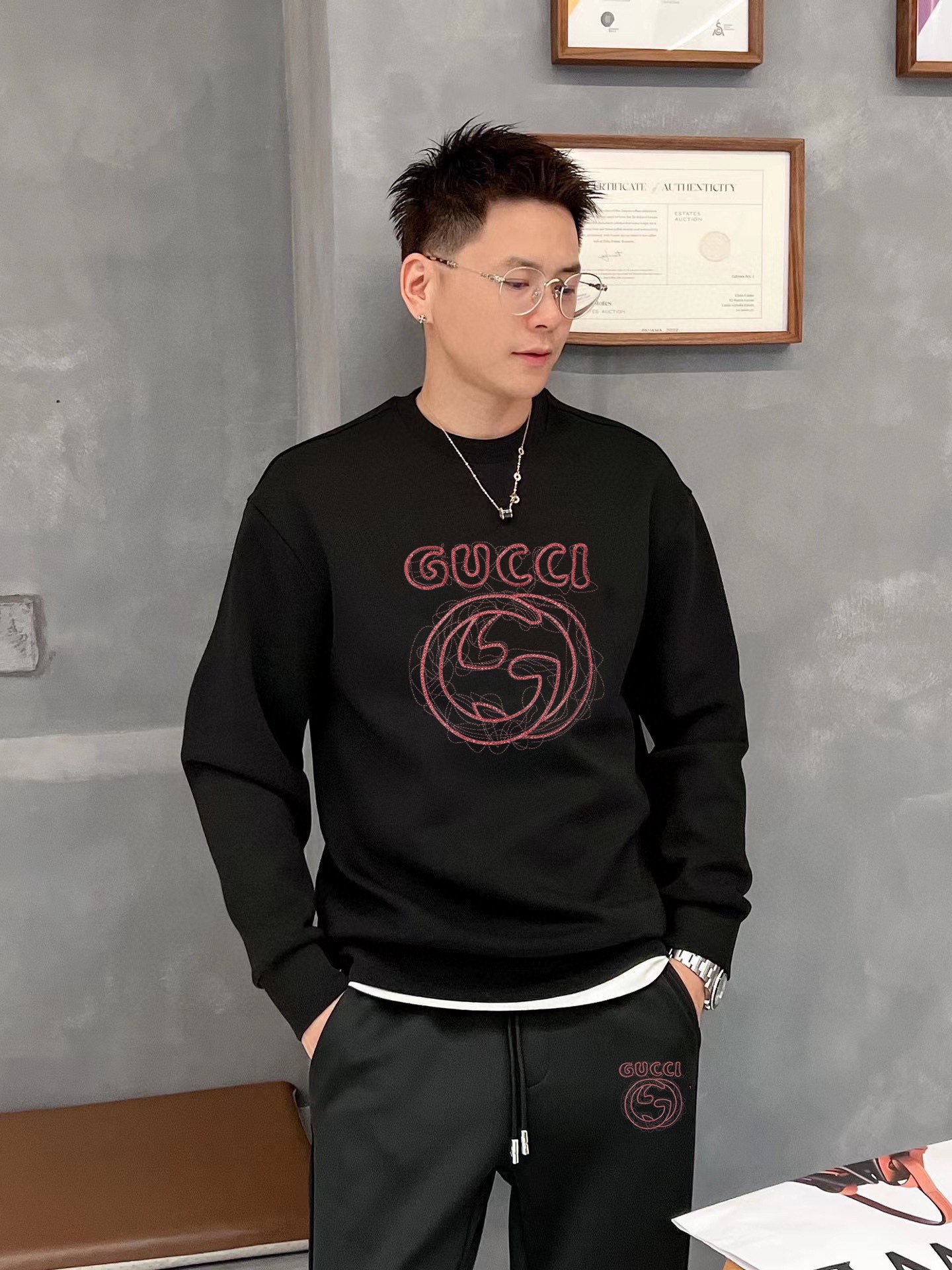 GUCCI 2025 new hoodie set. Premium Roman cotton, comfortable fit. Elegant design, metal hardware. Sizes M-5XL, up to 220斤.