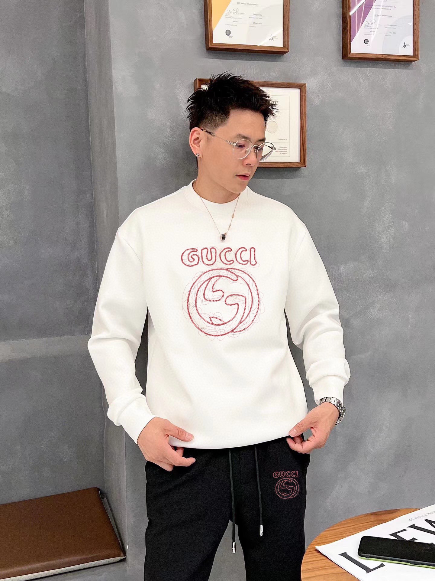 Home • Apparel • Suit • GUCCI 2025 new hoodie set, high-quality Roman cotton, comfortable fit, elegant design. Sizes M-5XL, up to 220斤.