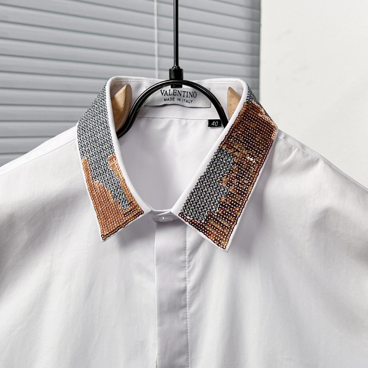 Valentin*/Valentino collar embroidery sequin color-blocking heavy work shirt