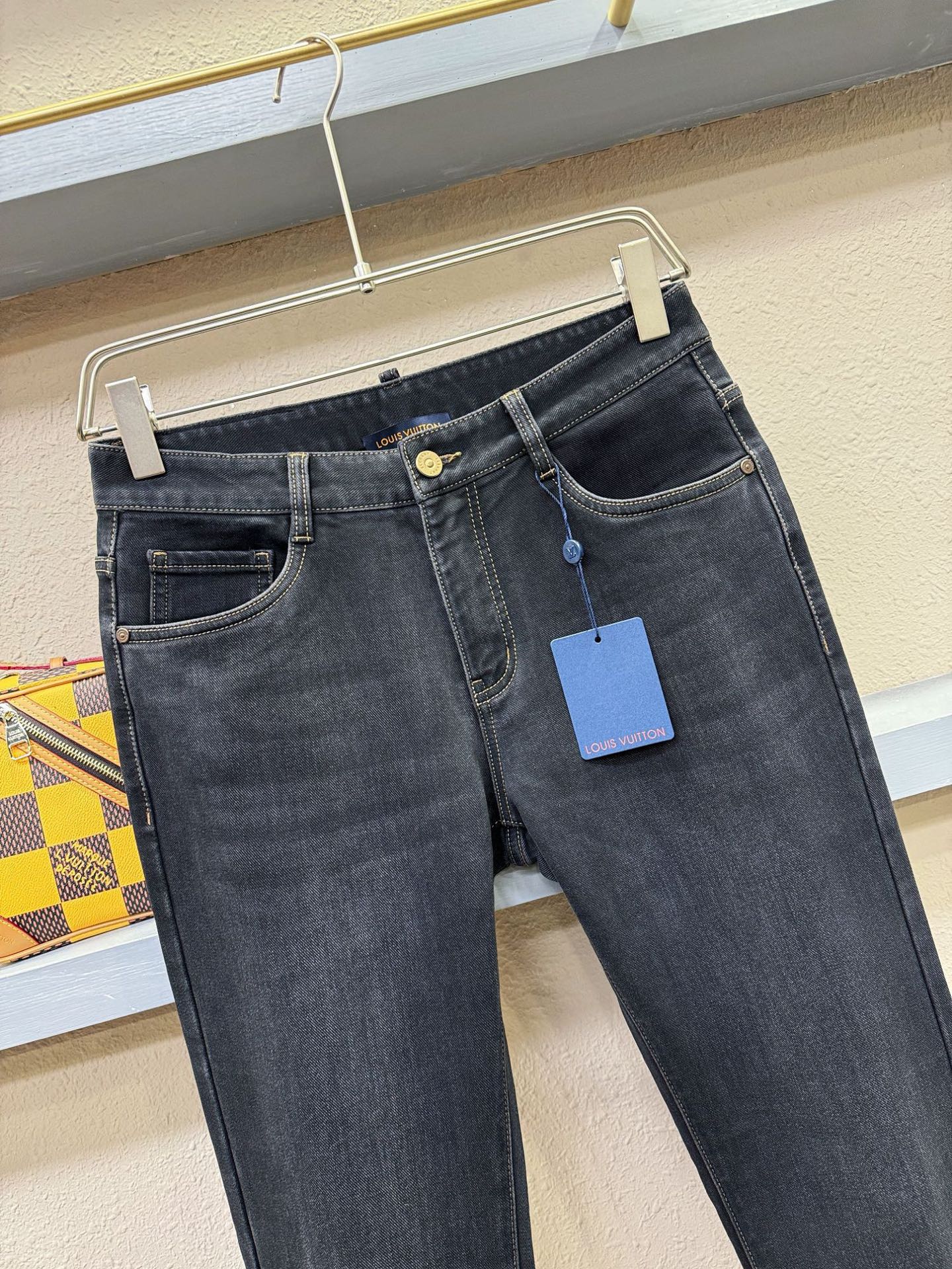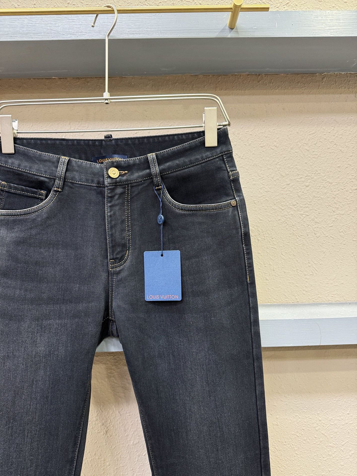 Louis Vuitton 2025 new men's jeans. Stretchy denim, exclusive release, elegant design with fine craftsmanship. Sizes 28-38, ships next day.