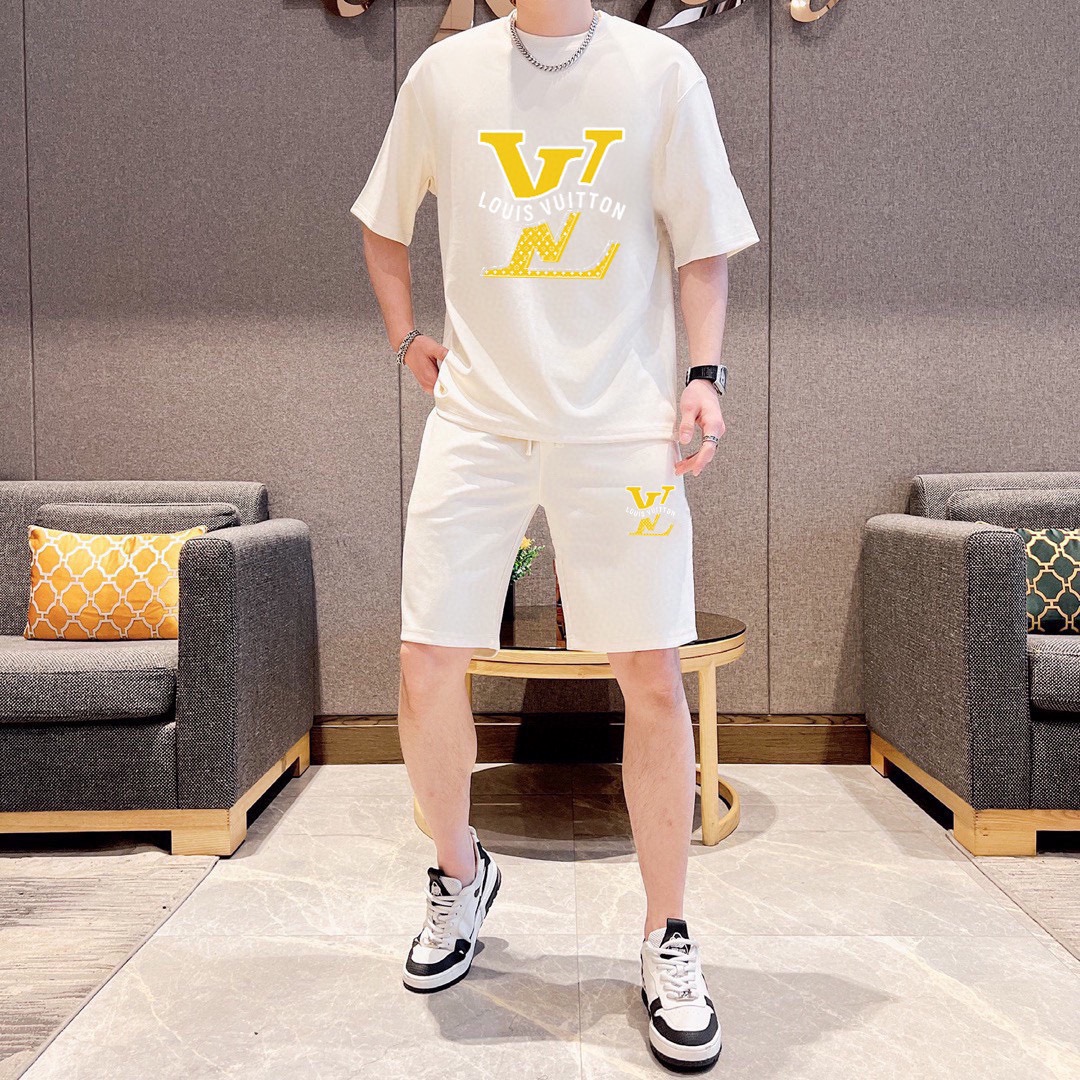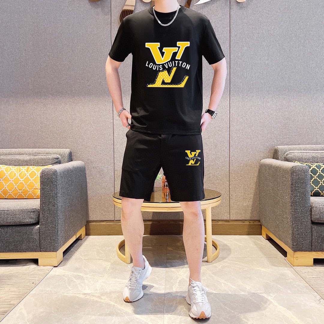 LV Louis Vuitton 2025 men's short sleeve and shorts set. High-end version, soft fabric, comfortable fit, excellent tailored cut. Sizes: M-5XL.