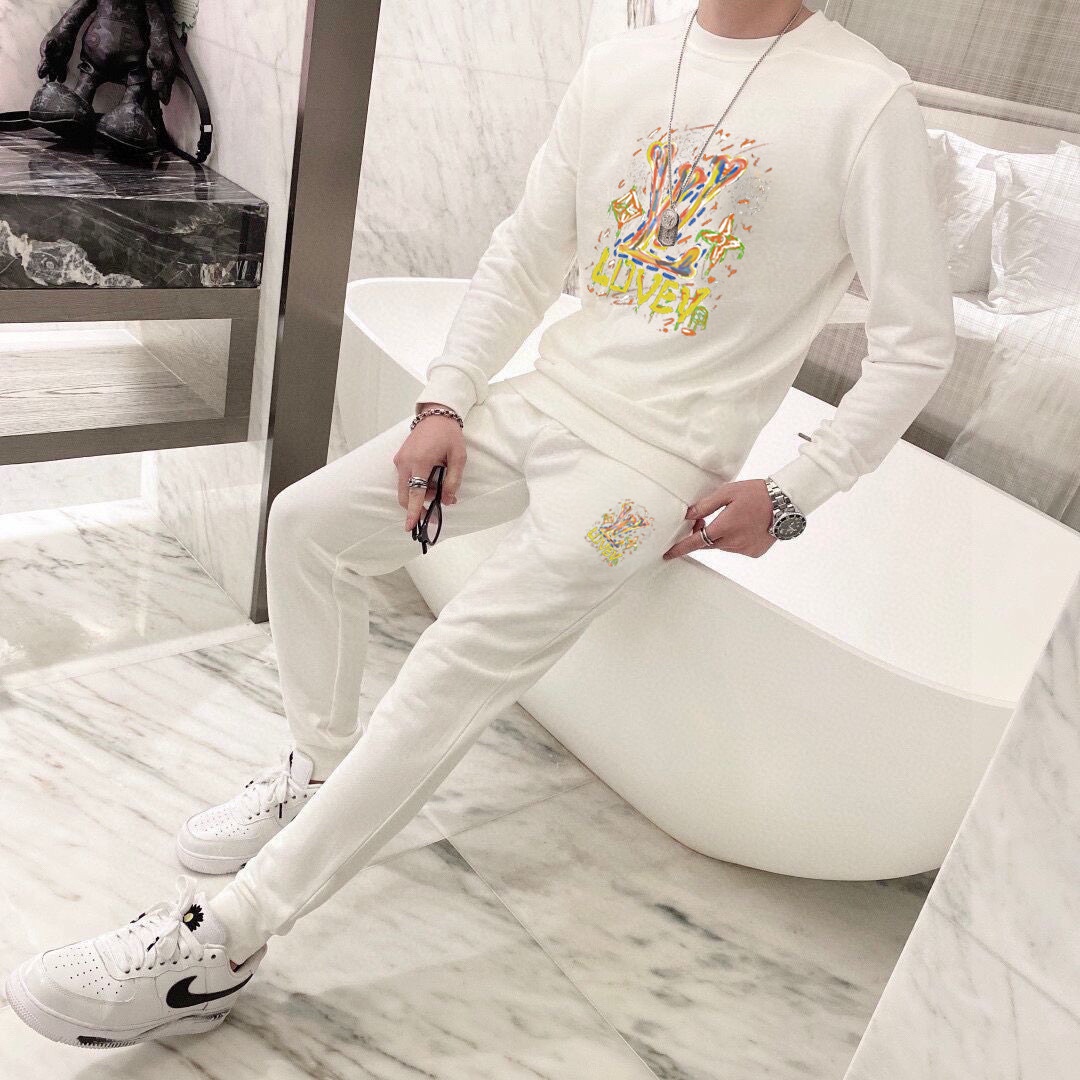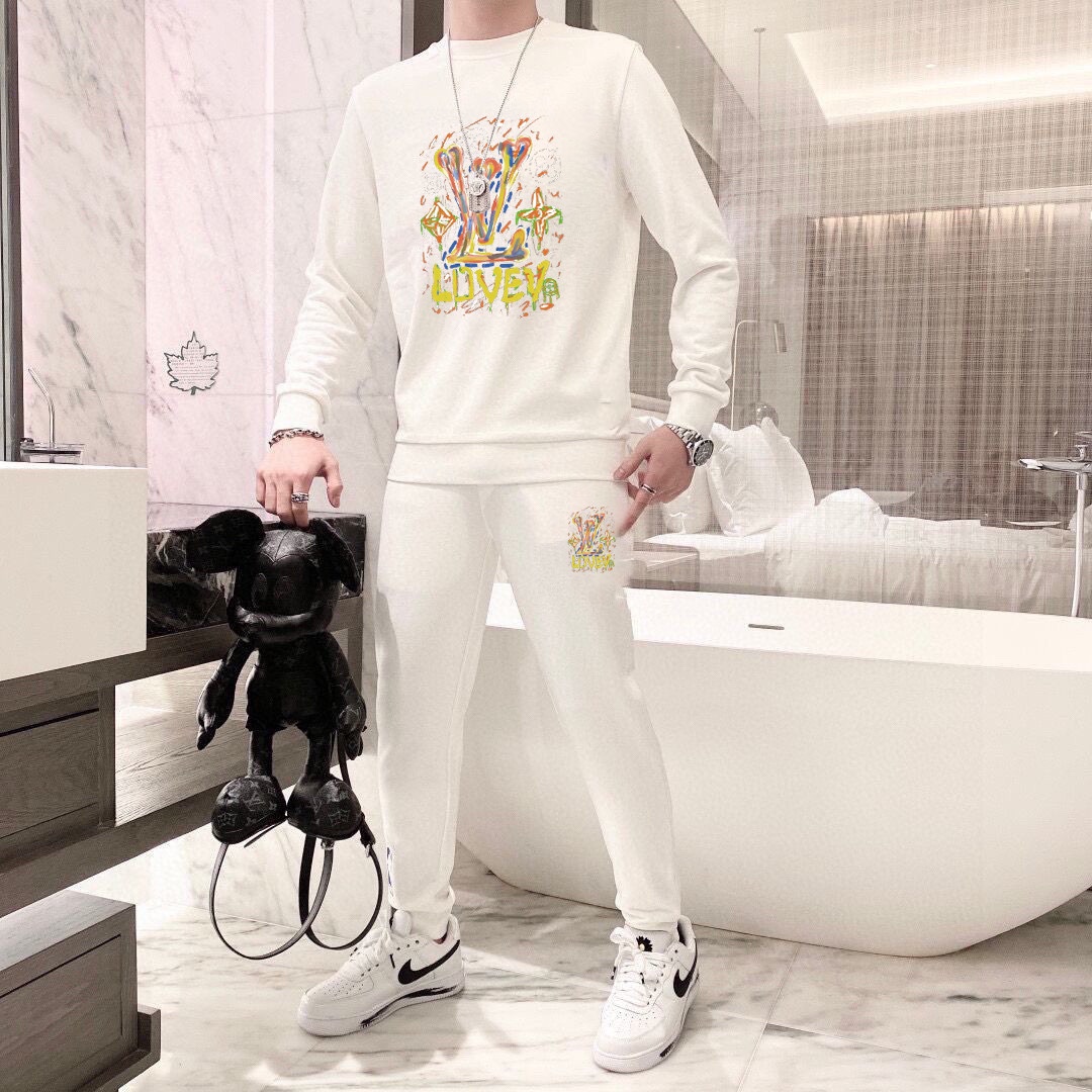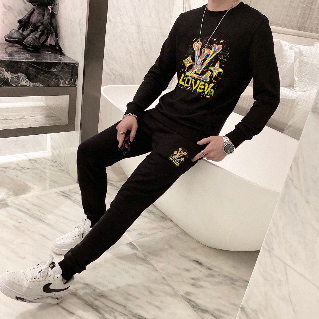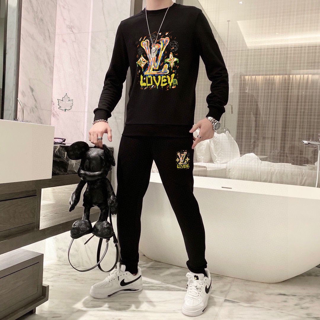 LV Louis Vuitton plus-size sweatsuit set. New 2025 design, premium Roman cotton, comfortable fit. Sizes M-5XL (up to 220kg).