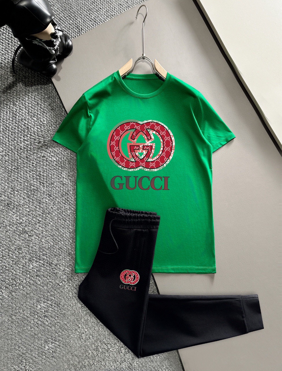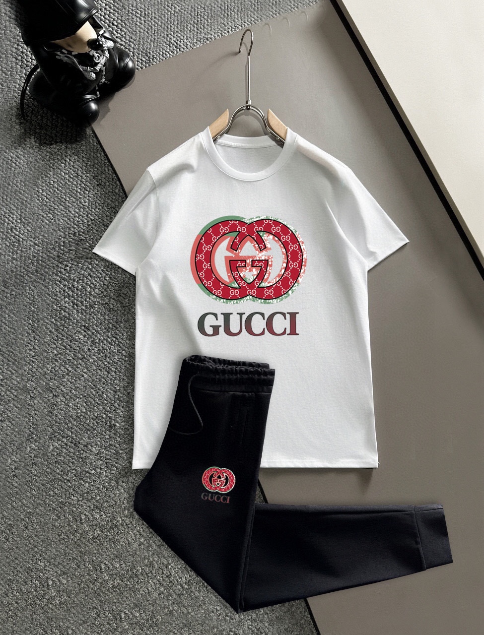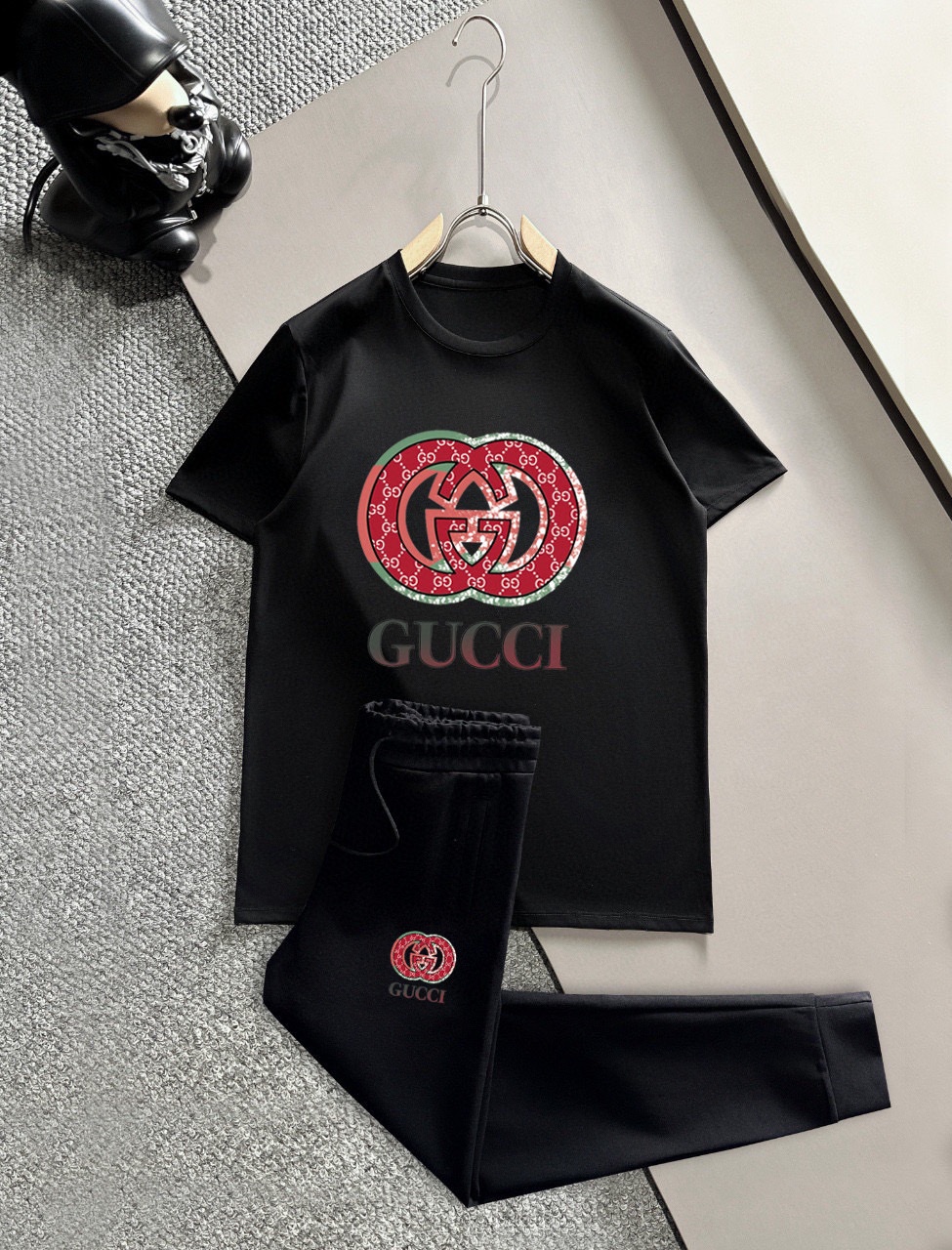 GUCCI men's summer dual-gloss set. Imported fabric, trendy, versatile. Sizes M-5XL (up to 220斤). High quality craftsmanship.