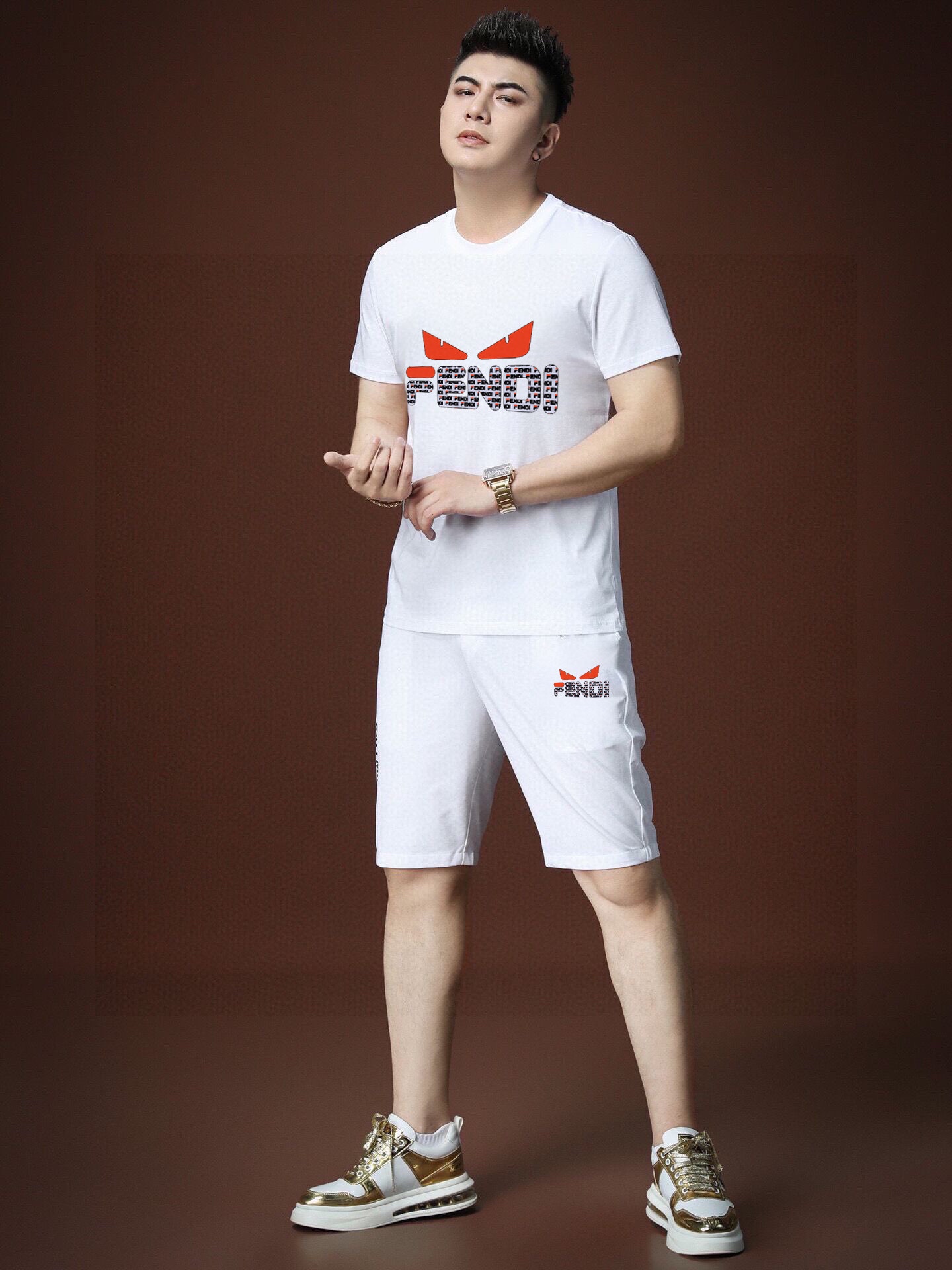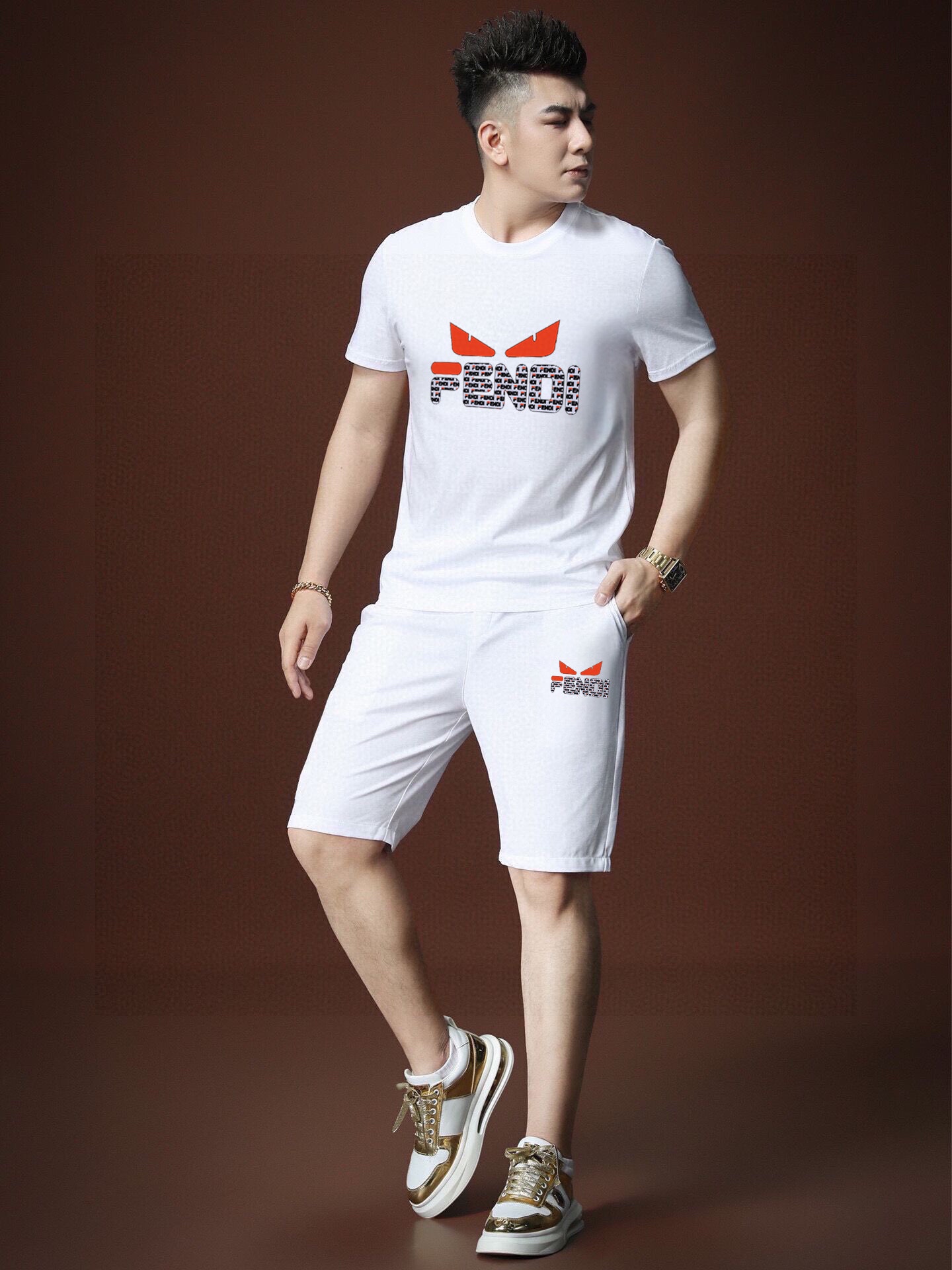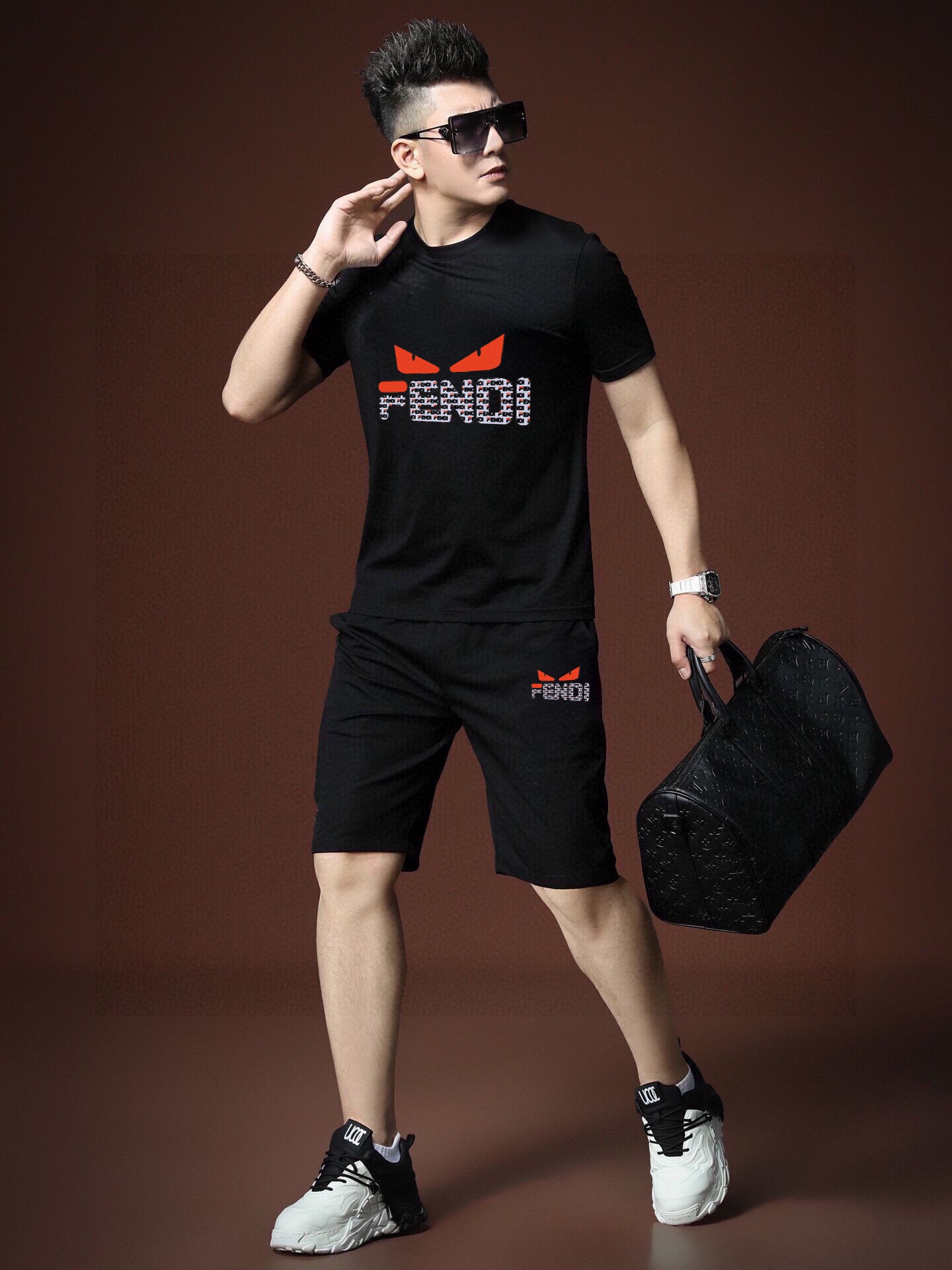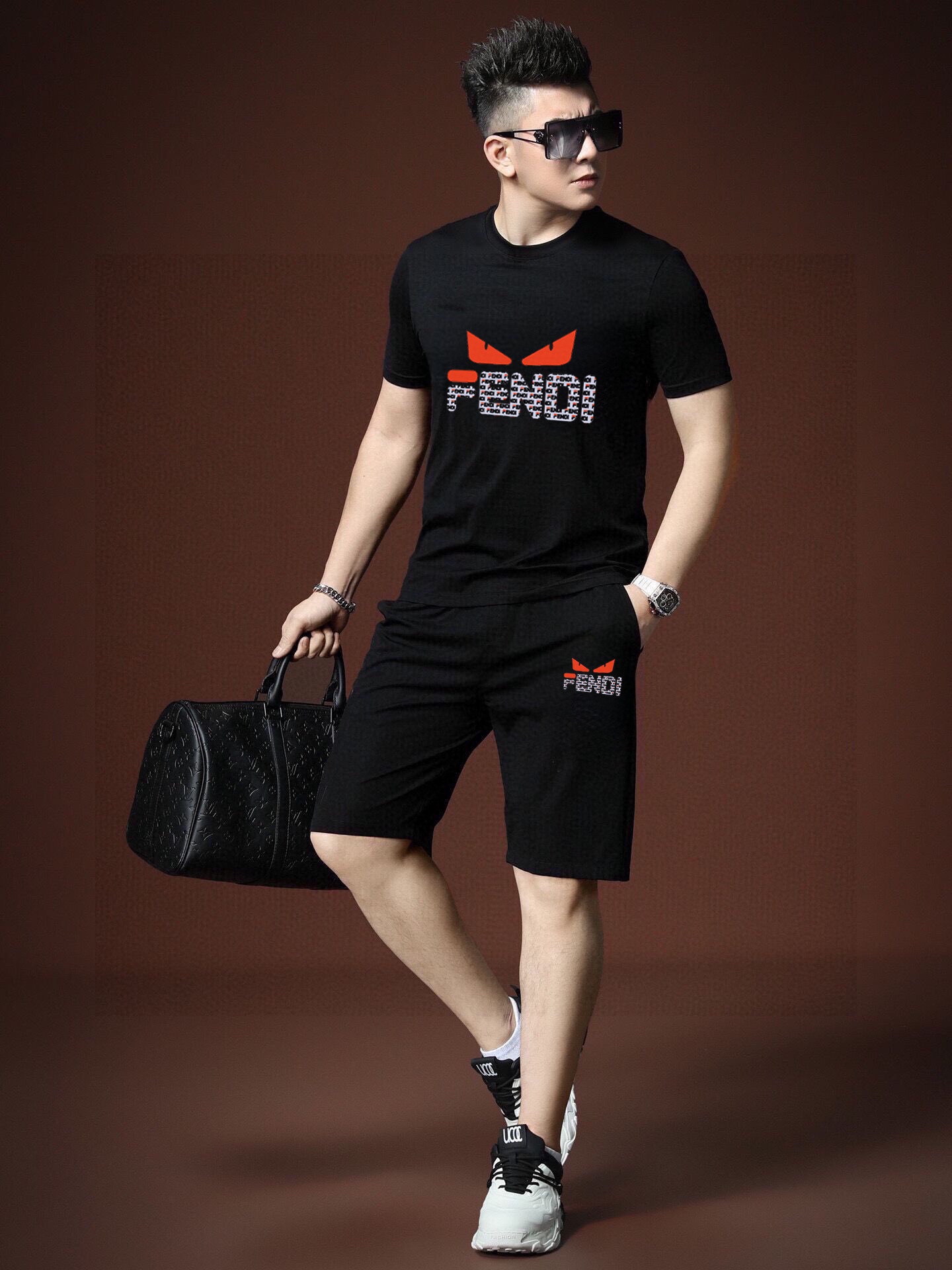 FENDI men's 2025 short sleeve & shorts set. Official store style, premium soft fabric, comfortable fit, great tailored cut. Sizes: M-5XL.