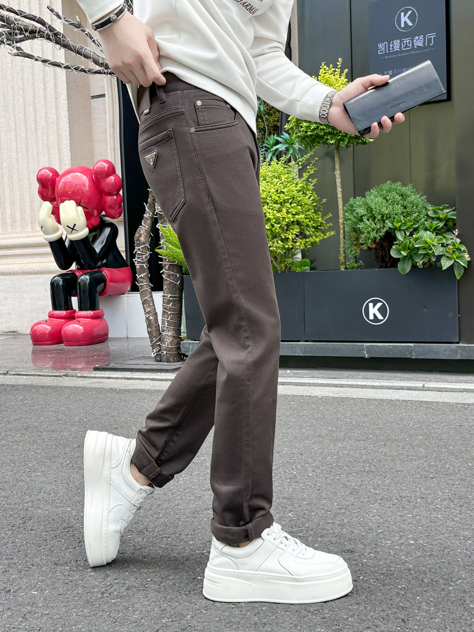 Prada 2025 jeans. Soft, stretchy, durable fabric. Comfortable, skin-friendly, stylish. Metal leather tag. Business casual. Sizes: 29-38, no 35/37.