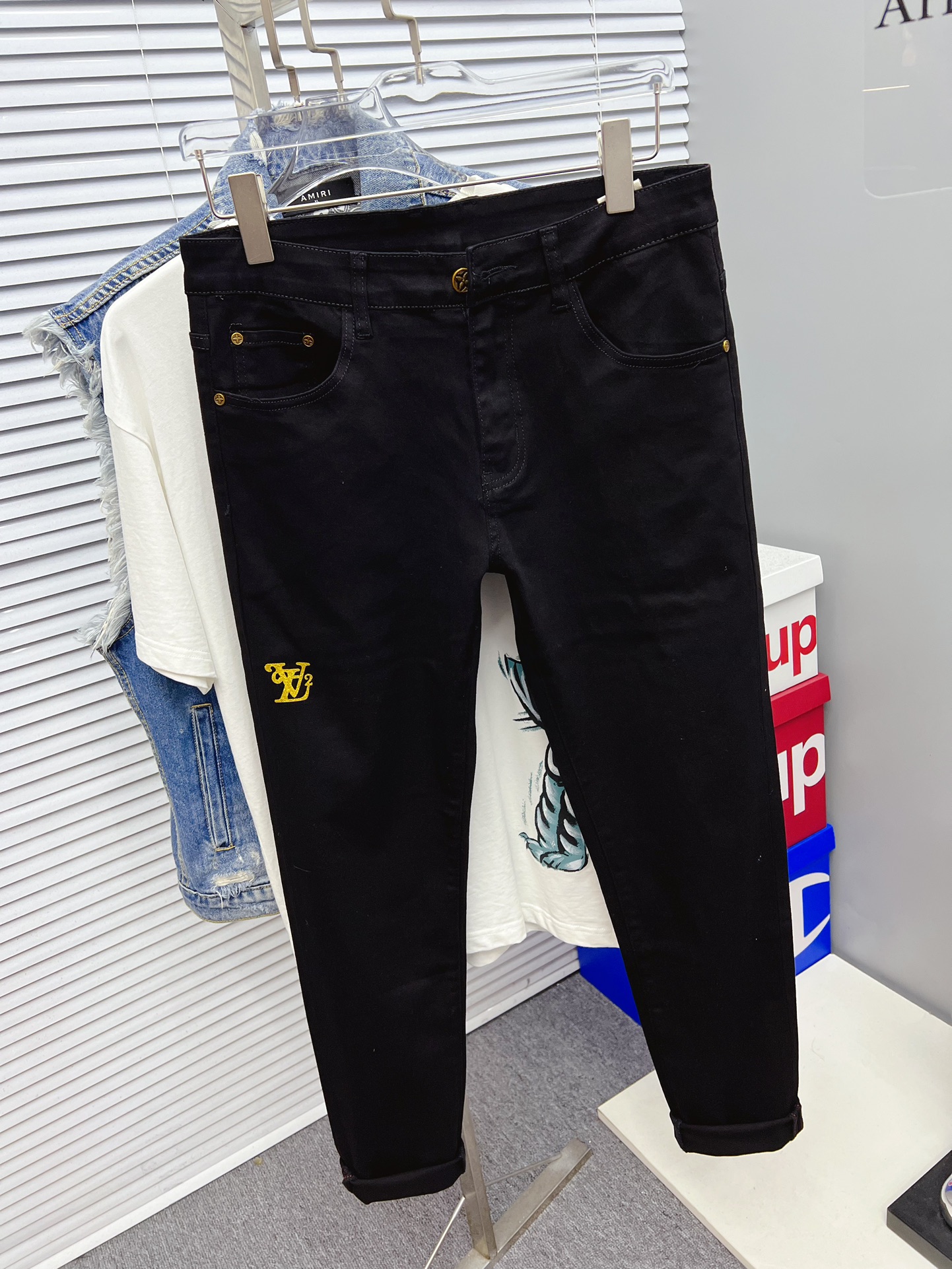LV Thin Denim Jeans. 2025 latest style. 98% cotton, 2% spandex. Solid, slightly stretchy, comfortable. Simple design, hidden zipper, embossed pockets. Excellent fit.