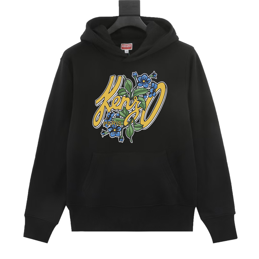 KENZO new print hoodie, 420g terry. Colors: Black, Gray. Sizes: XS-L.