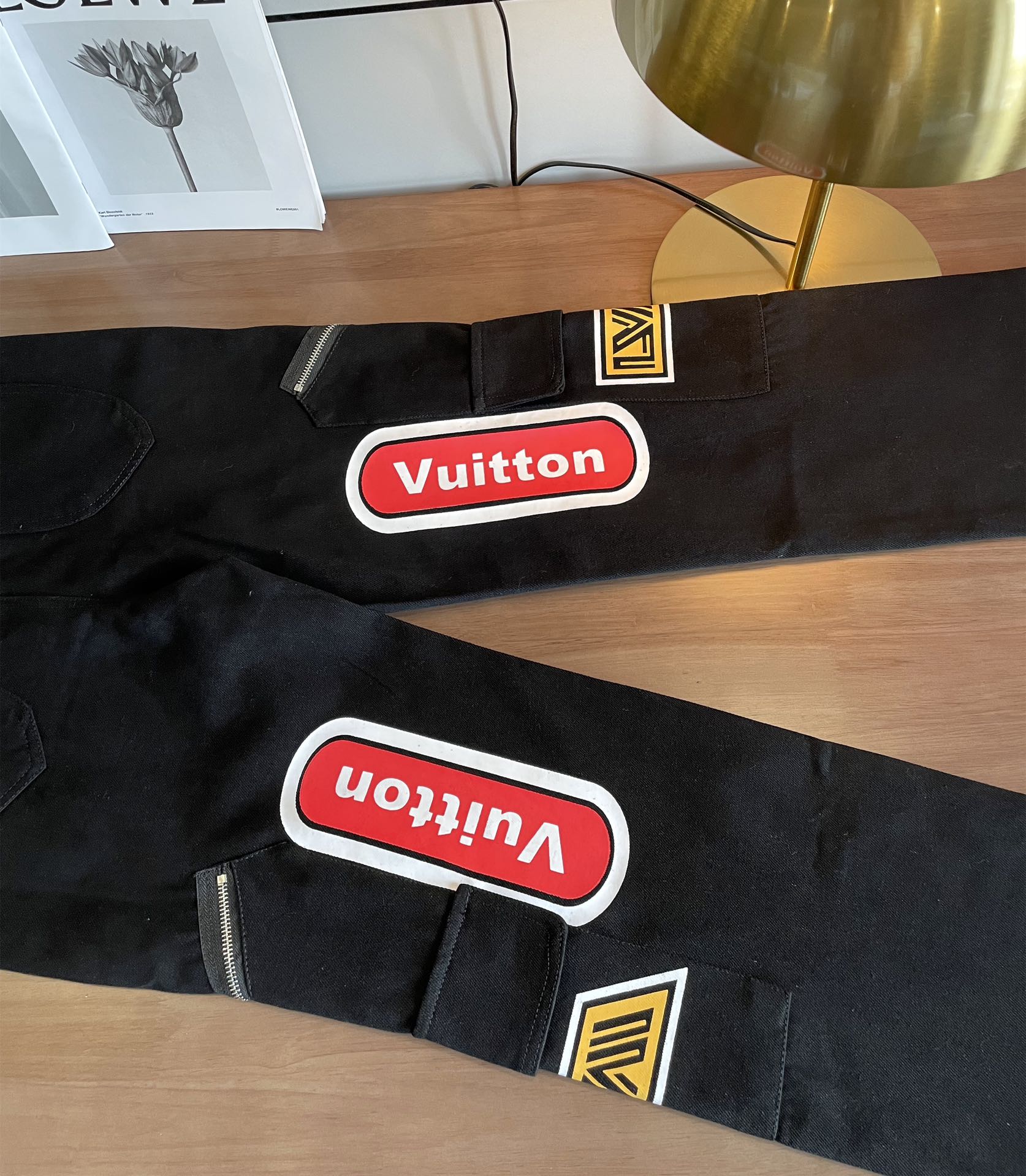 Louis Vuitton 2023春夏新款印花牛仔长裤。新款采用涂鸦印花和牛仔面料,融合街头风与童趣。宽松剪裁,男女同款,尺码S-XL。