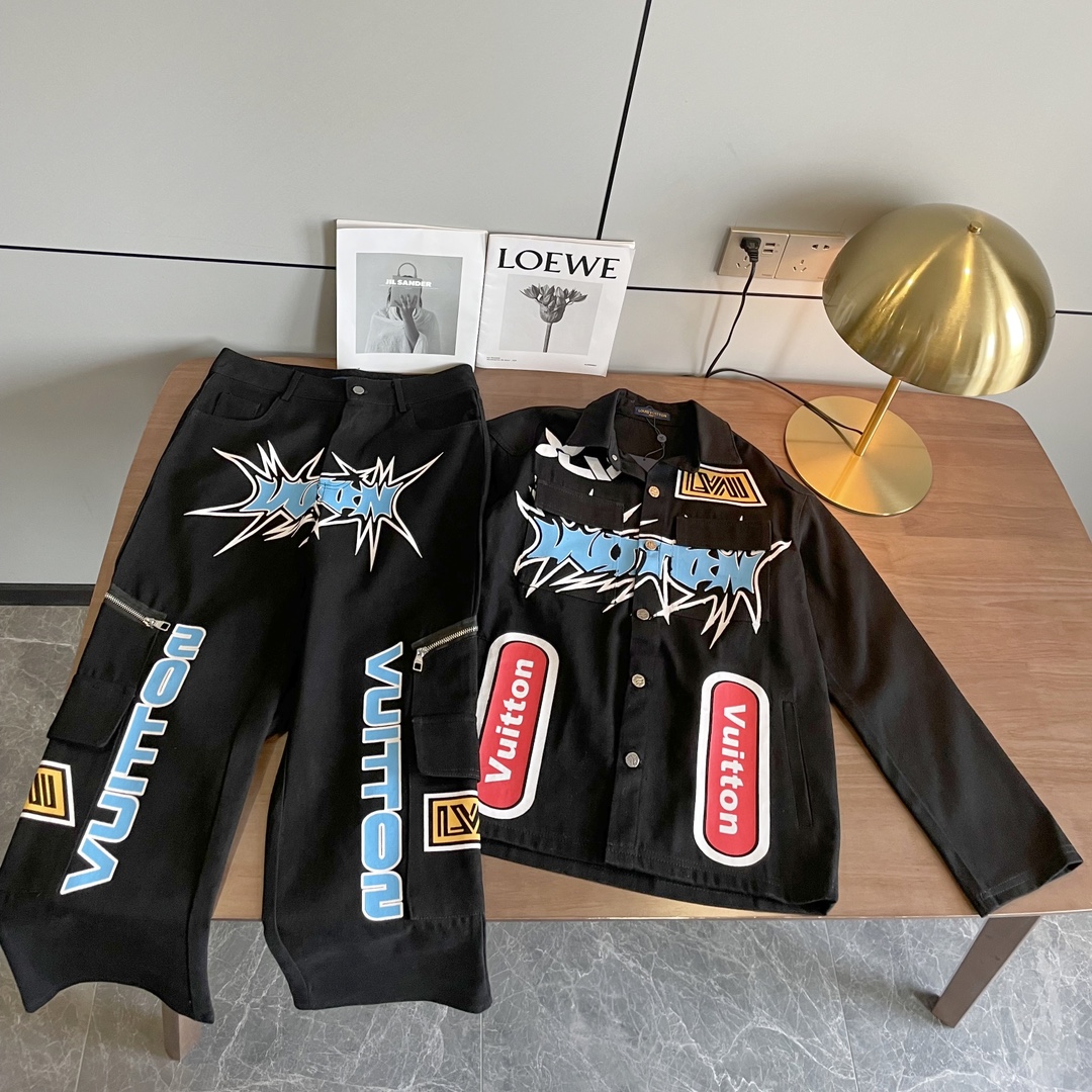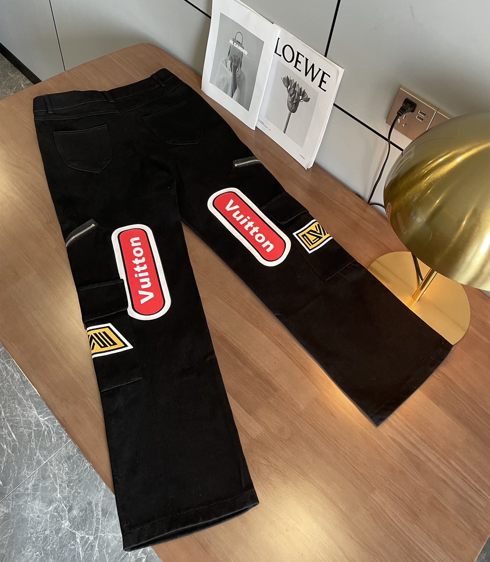 Louis Vuitton 2023春夏新款印花牛仔长裤。涂鸦与童趣街头风,迷彩、抽象油画等创意印花。柔软透气,立体剪裁。男女同款S-XL。