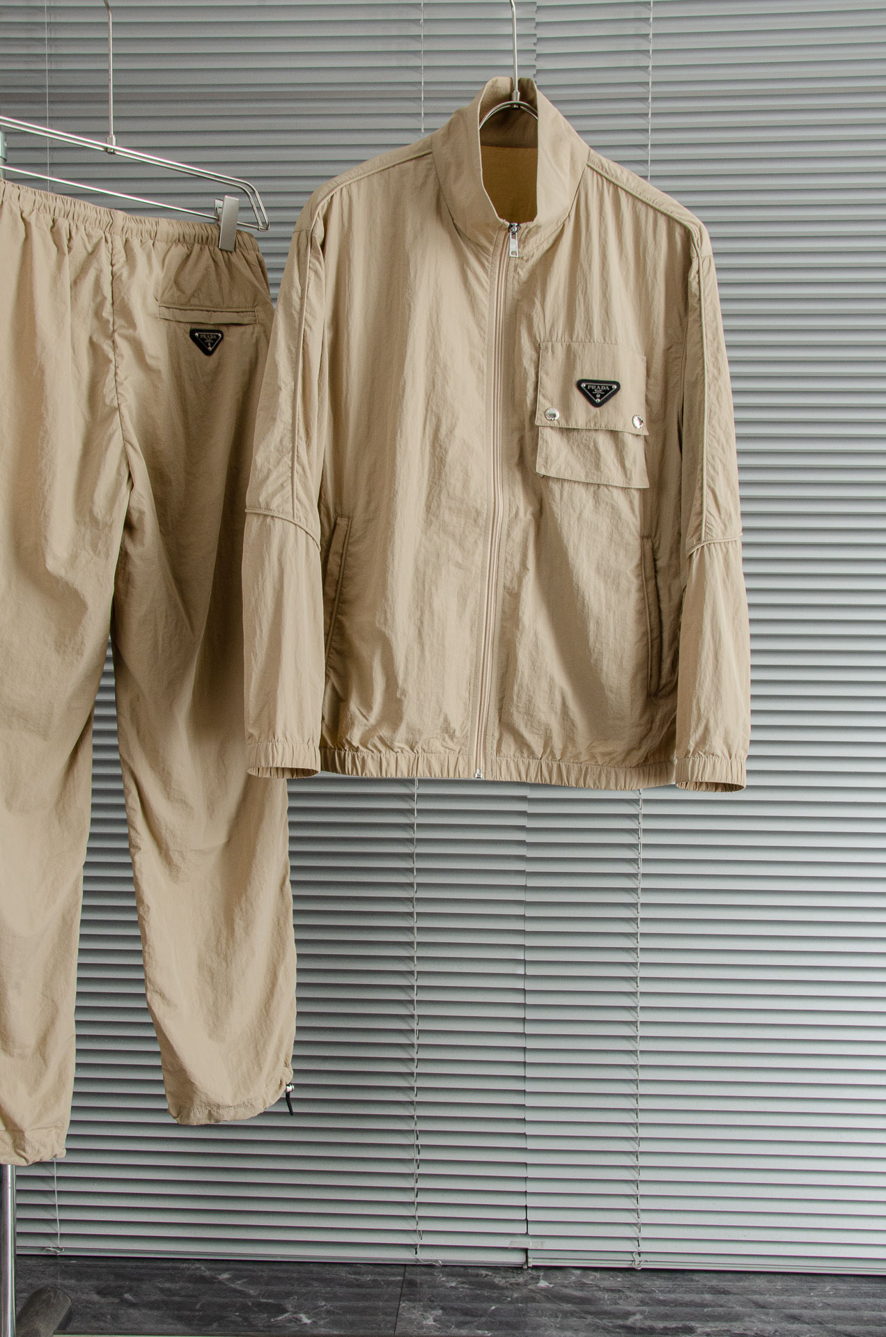 Prada 2025FW lightweight nylon jacket set. Rare fabric, exquisite craftsmanship. Breathable, durable, sleek design. Perfect for business, casual, or outdoor wear. Sizes: M-XXXL.