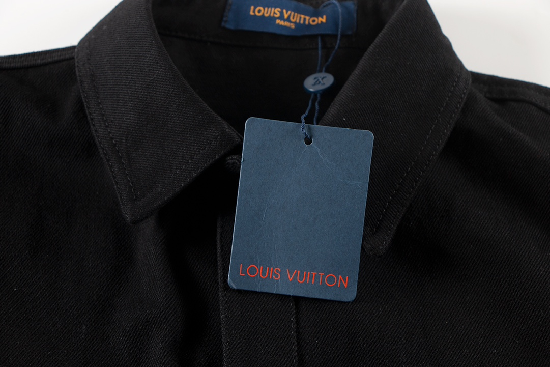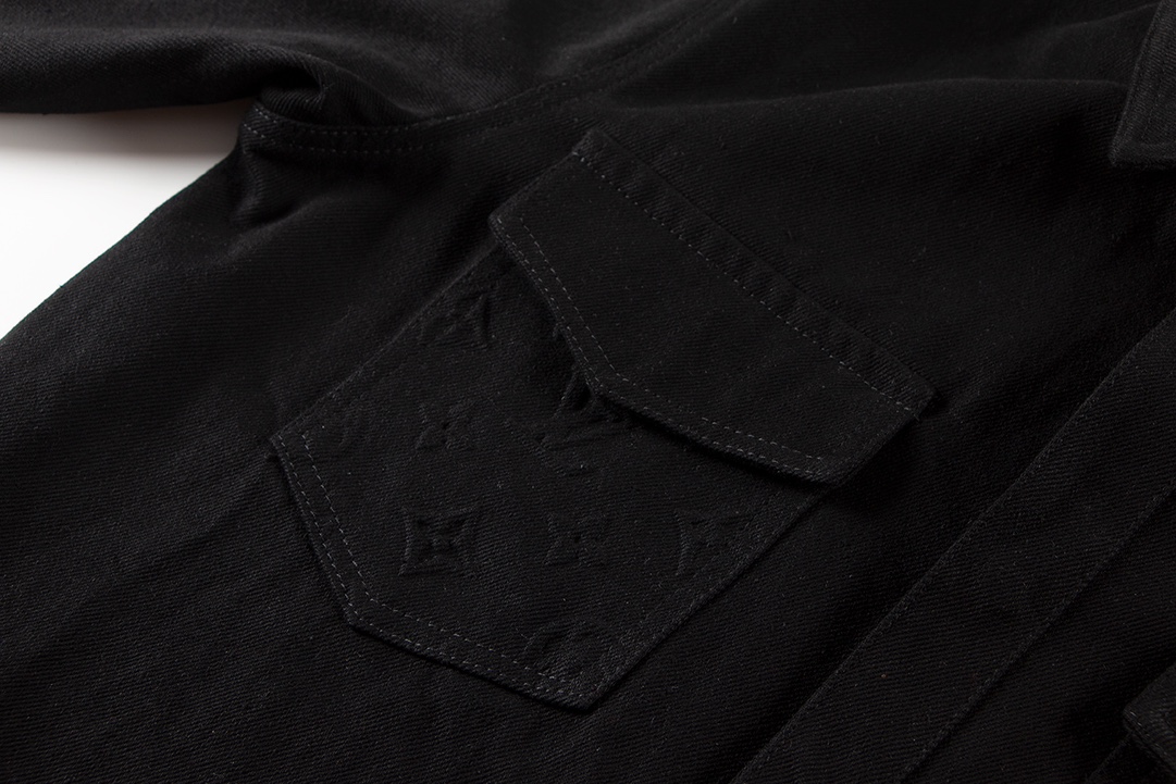 Louis Vuitton 2024 autumn/winter embossed double-pocket denim shirt jacket. Latest distressed wash, retro street style. Soft cotton denim, relaxed unisex fit. S-XL.
