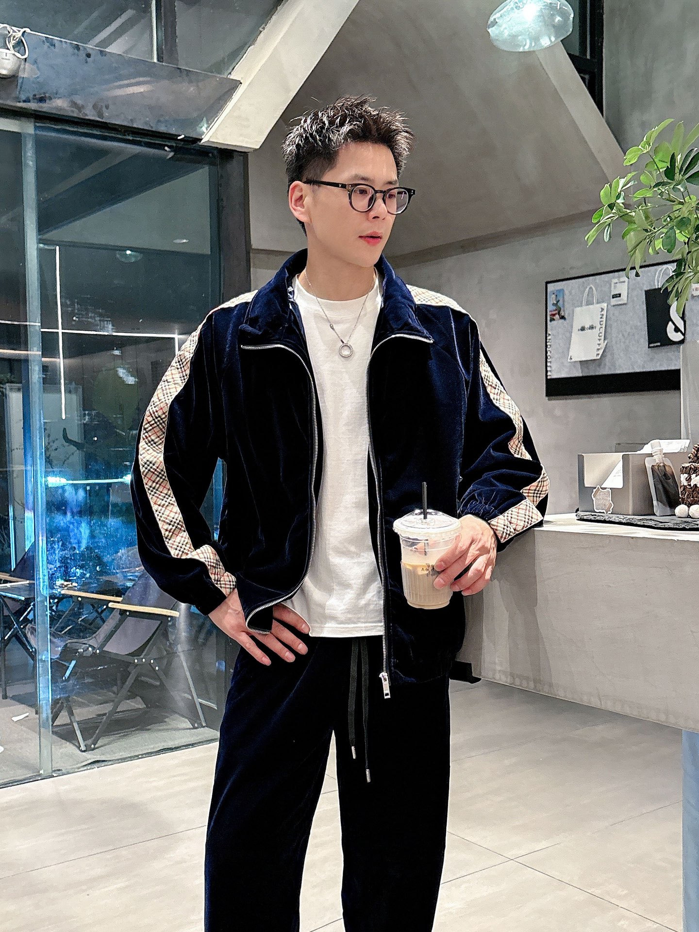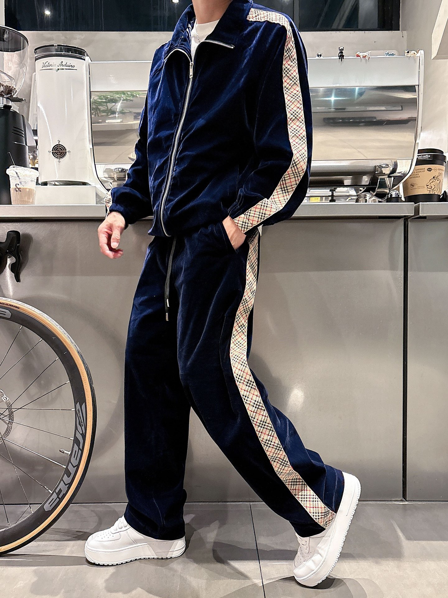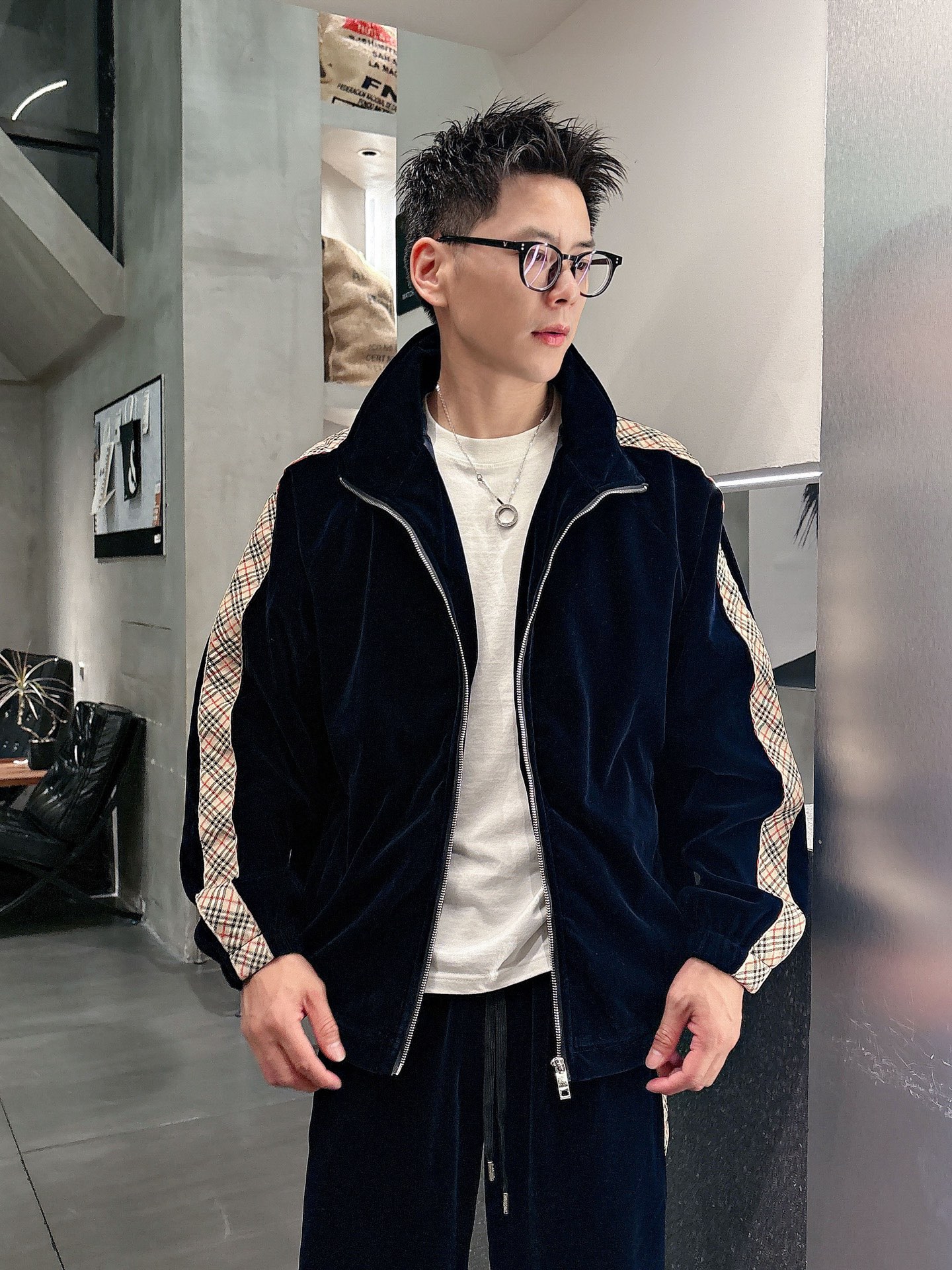 Burberry BBR Velvet Lounge Suit: 2025 Autumn/Winter premium imported set, custom hardware, multi-zipper/pocket design. Luxurious boutique style, sizes M-3XL.