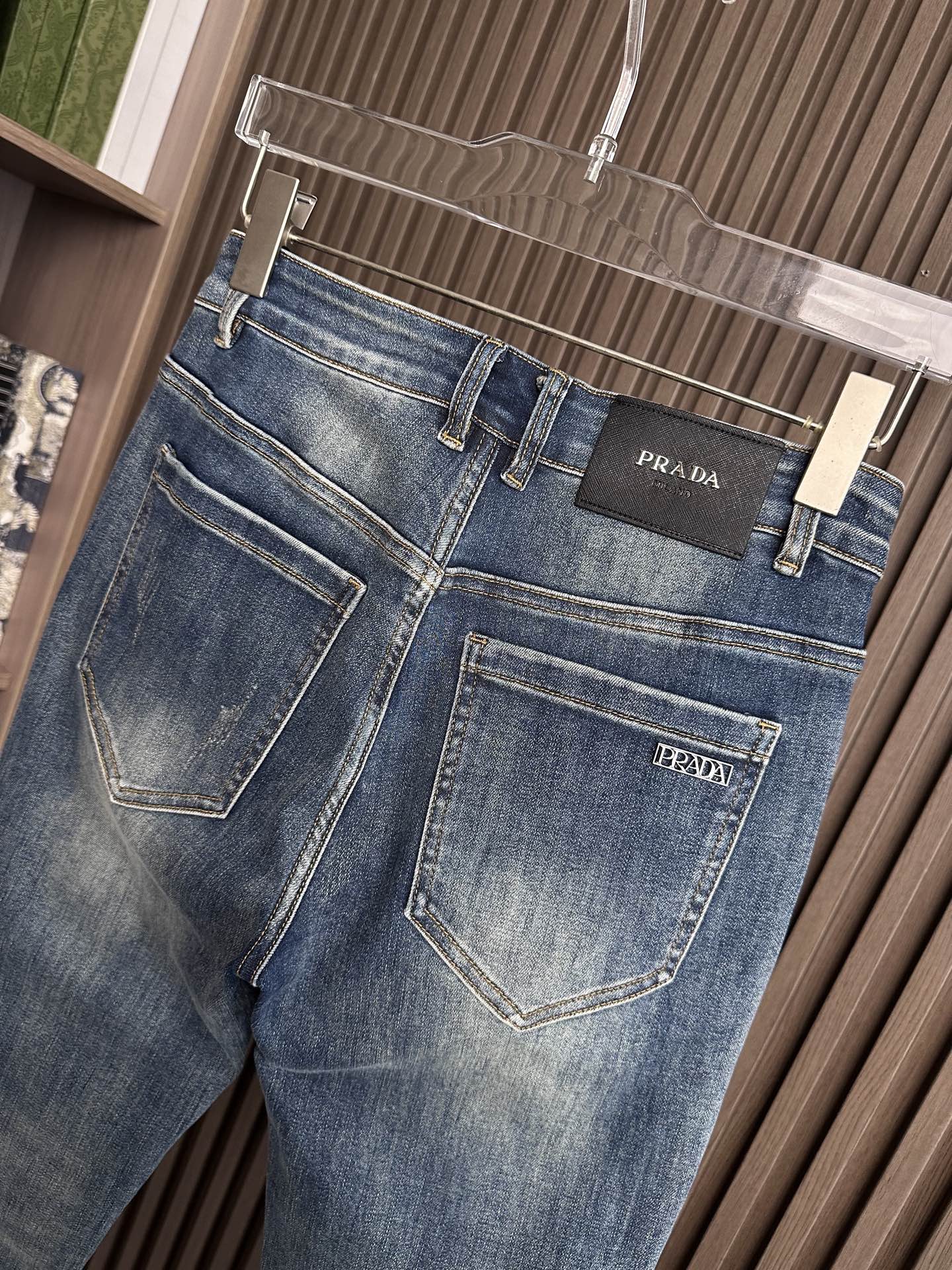 PRADA Fall 2025 jeans. High-end, soft fabric. Slim straight cut, versatile. Sizes: 29-38.