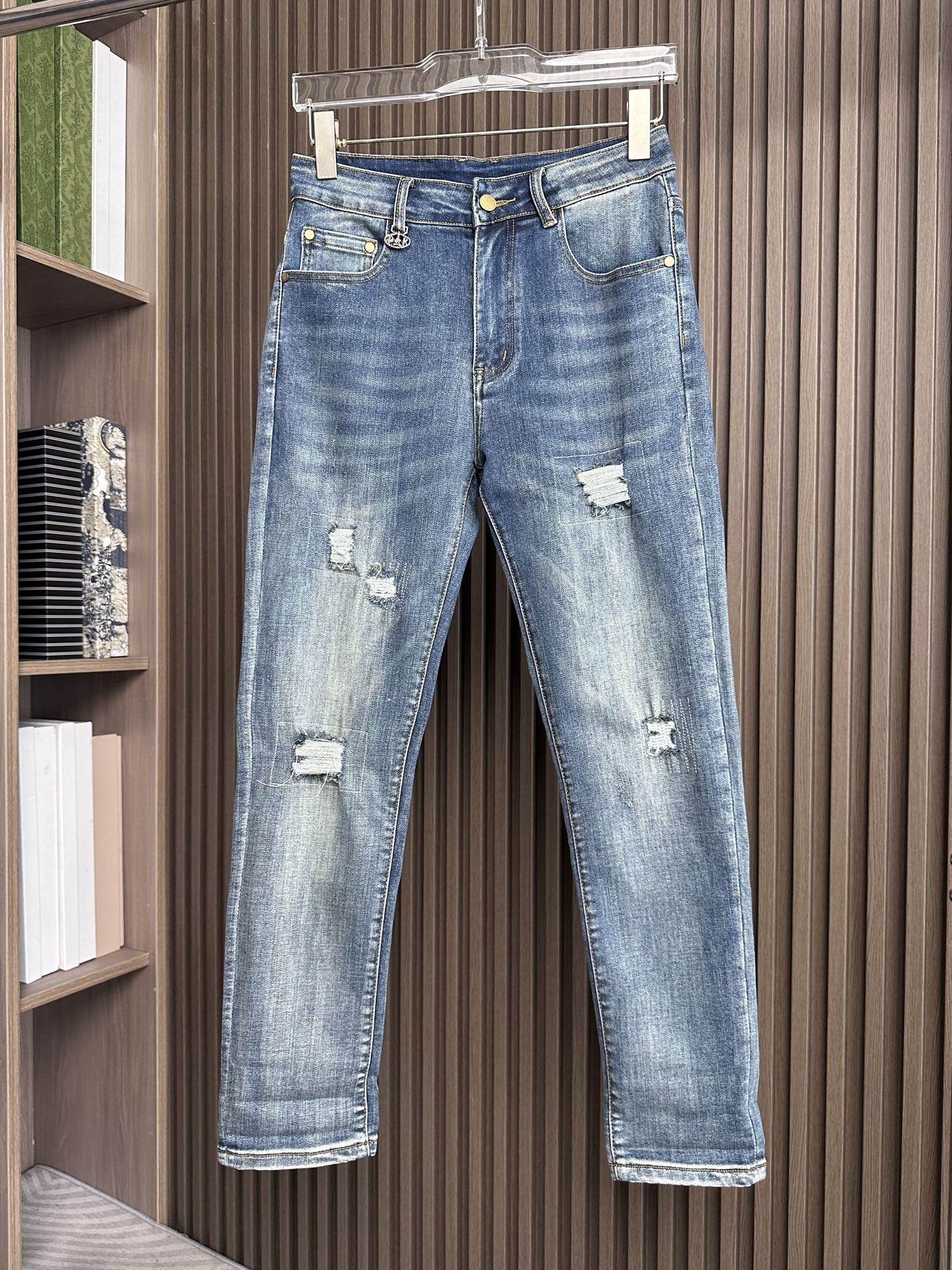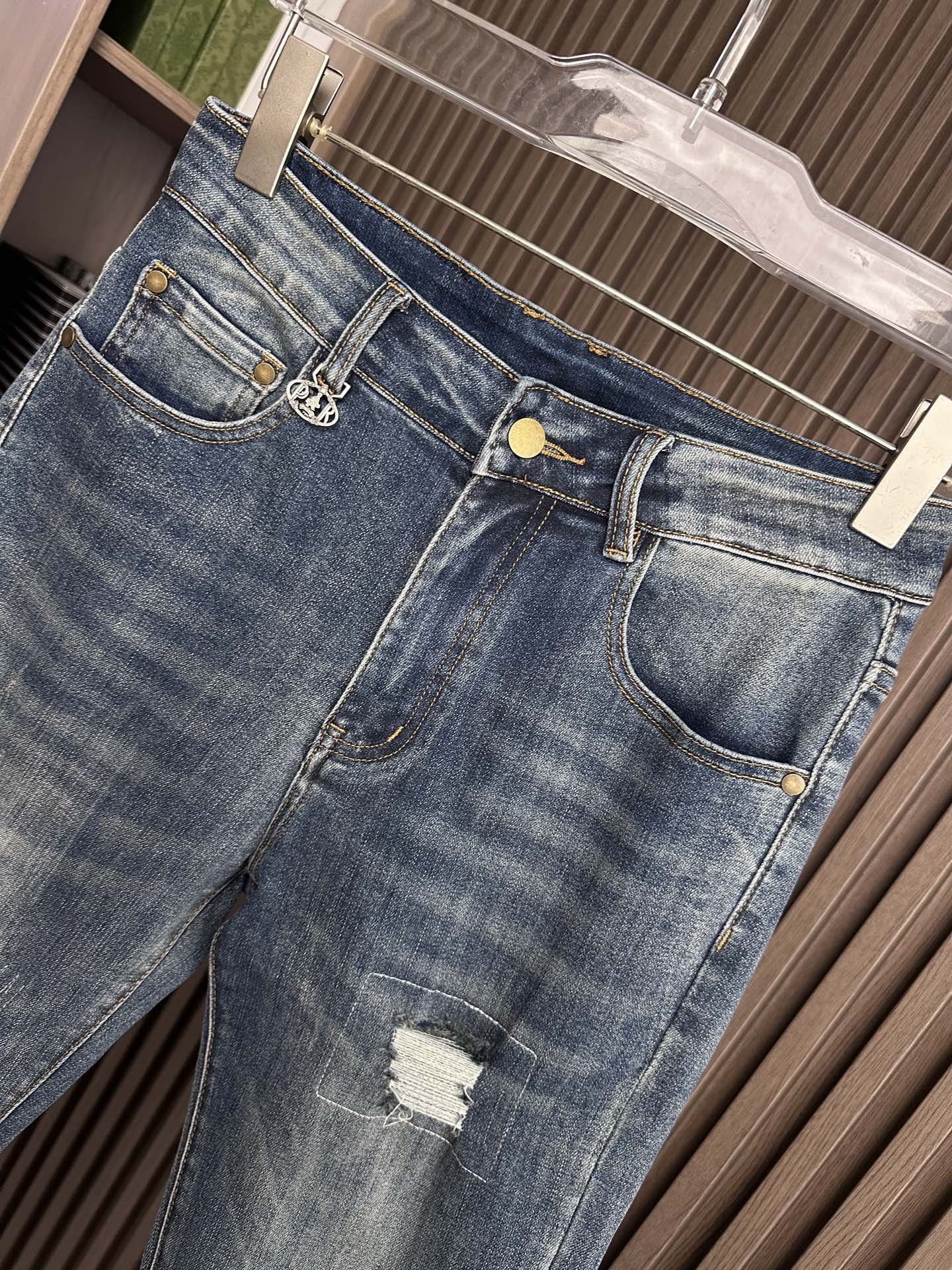 LV Thin Denim Jeans. 2025 latest style. 98% cotton, 2% spandex. Solid, slightly stretchy, comfortable. Simple design, hidden zipper, embossed pockets. Excellent fit.