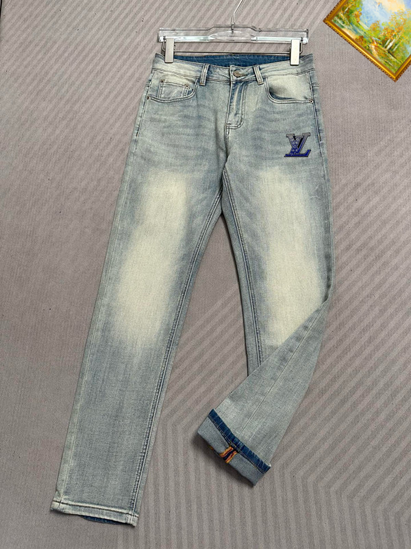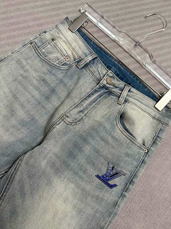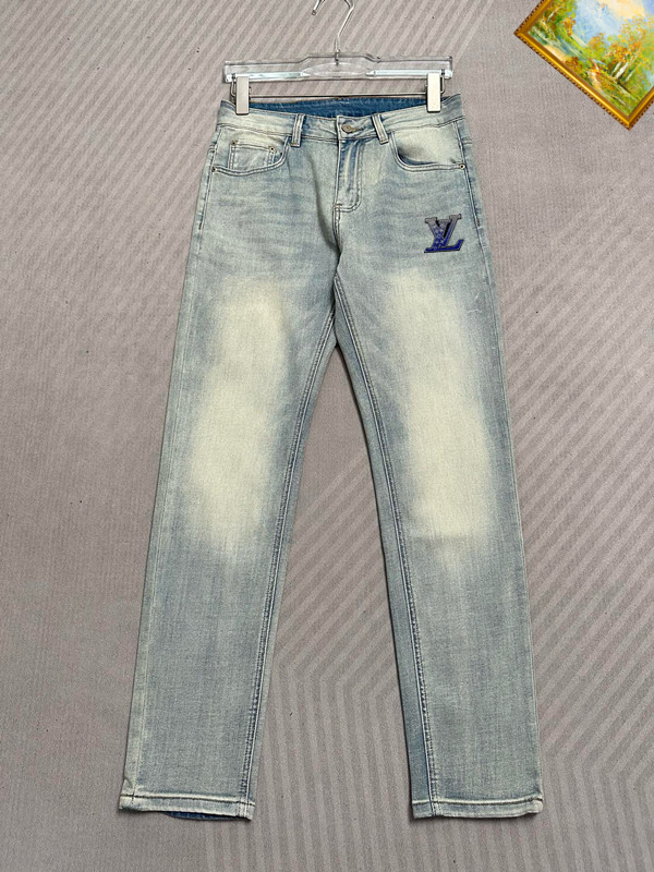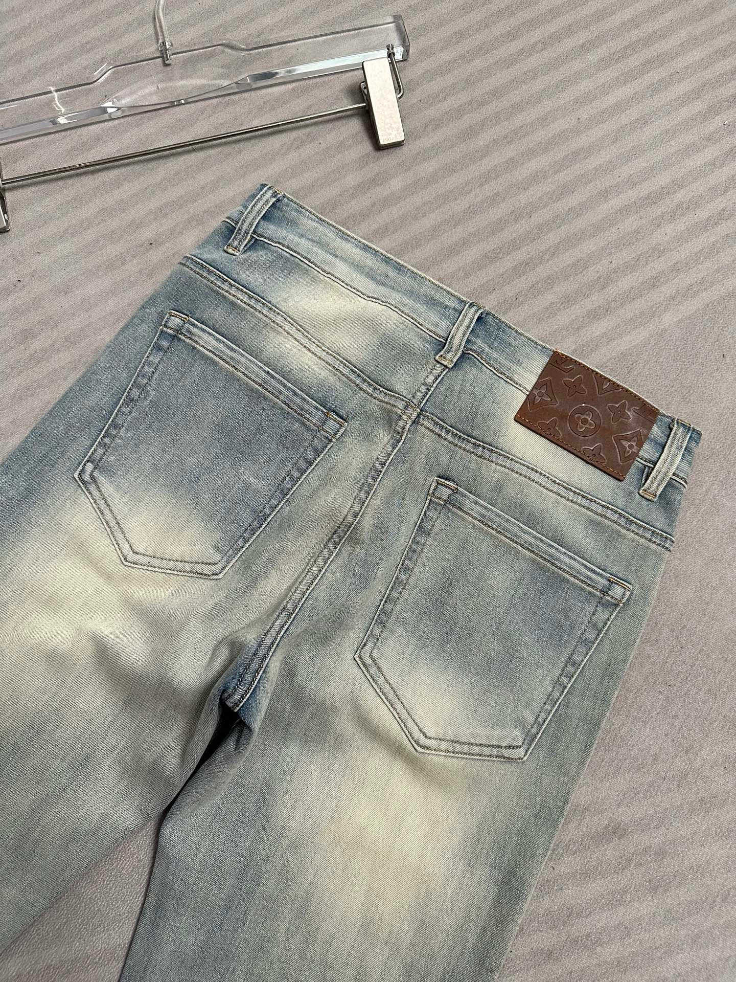 LV 2025 jeans: European imported fabric, original hardware, heavy wash process. Soft, stretchy, with back leather tag. Combines casual style with trend. Sizes 28-38.