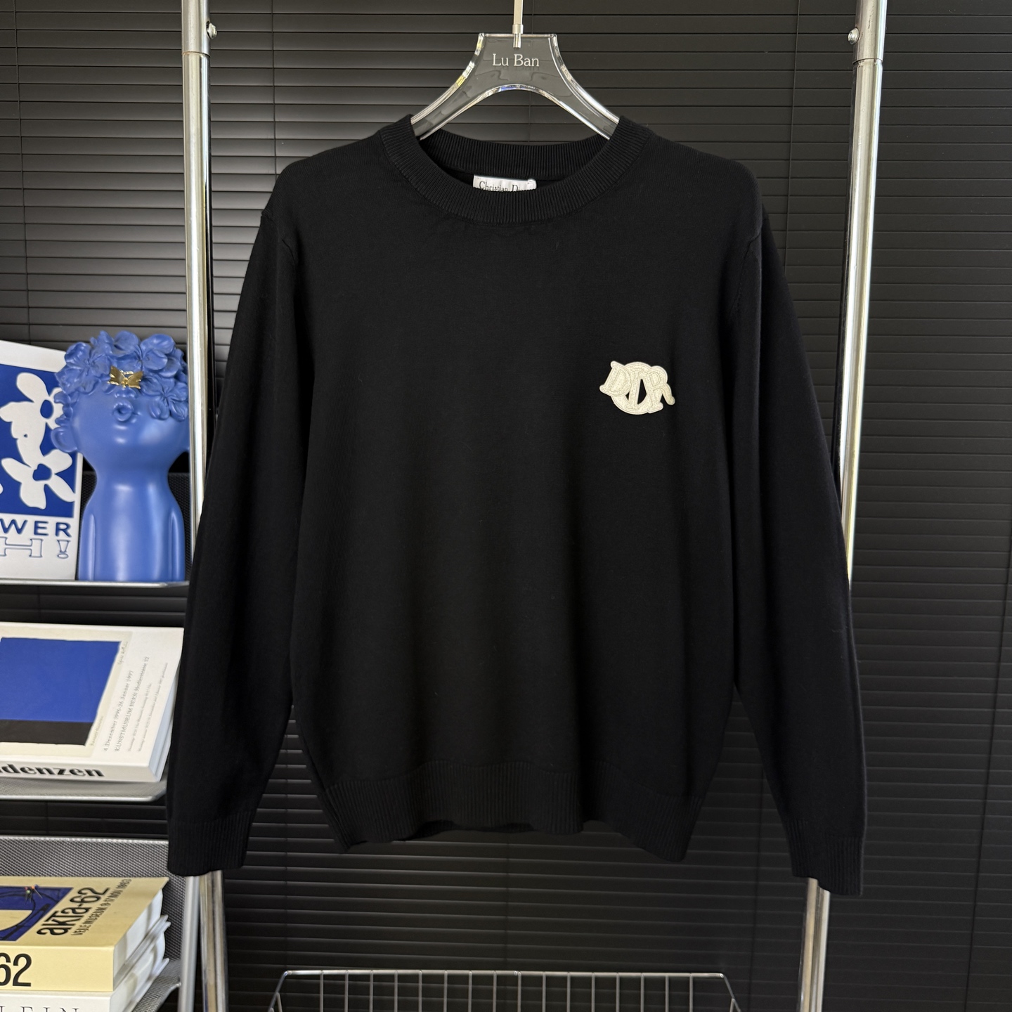 Dior 2025FW sweater. Classic embroidered logo, retro design. Imported wool blend, round neck, long sleeves. Black/white. Sizes M-3XL.