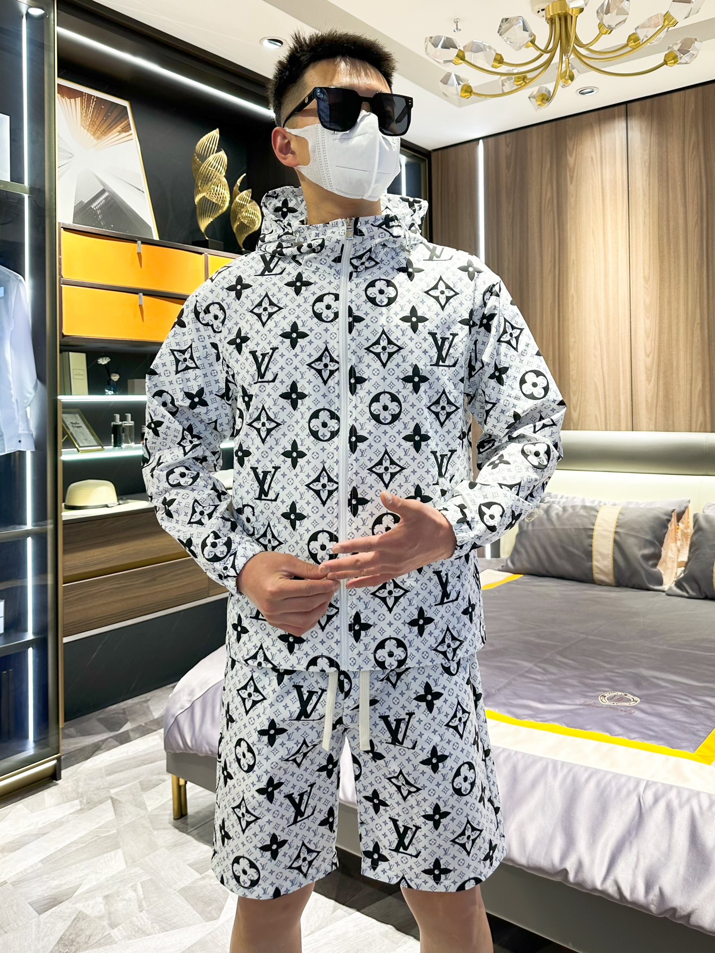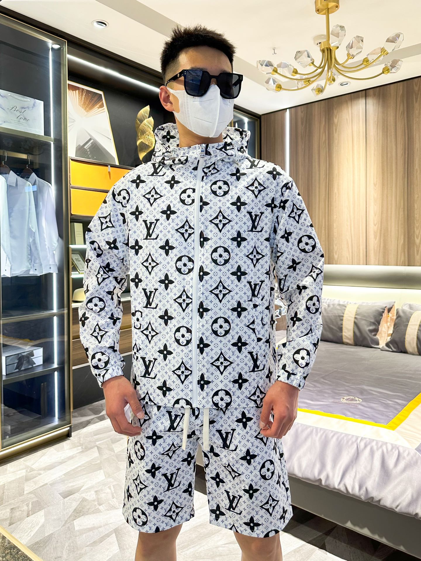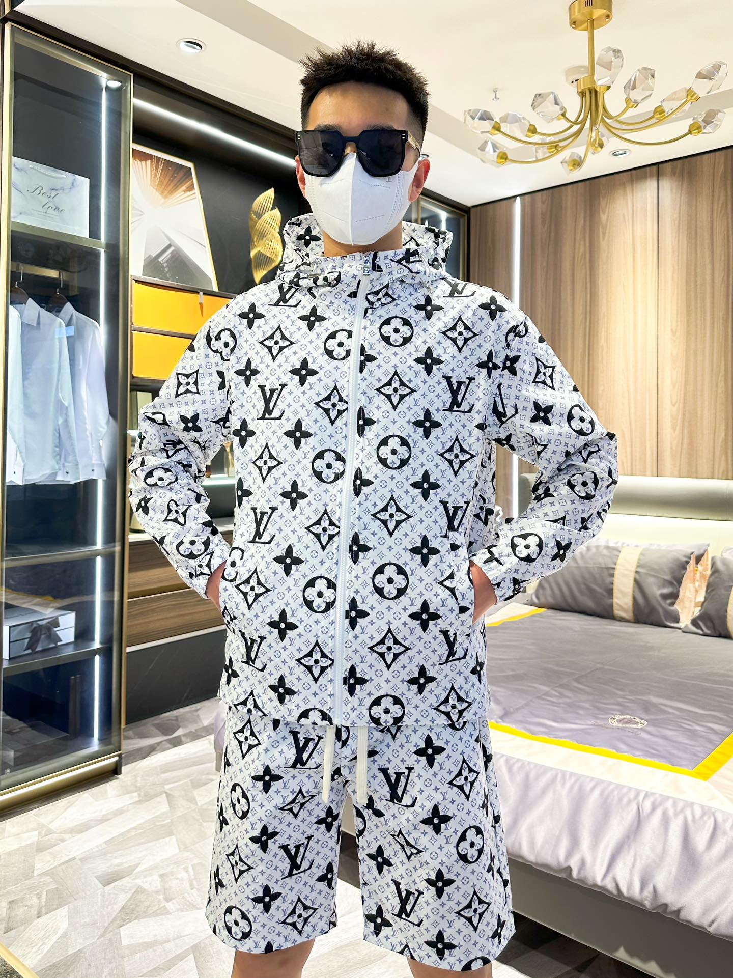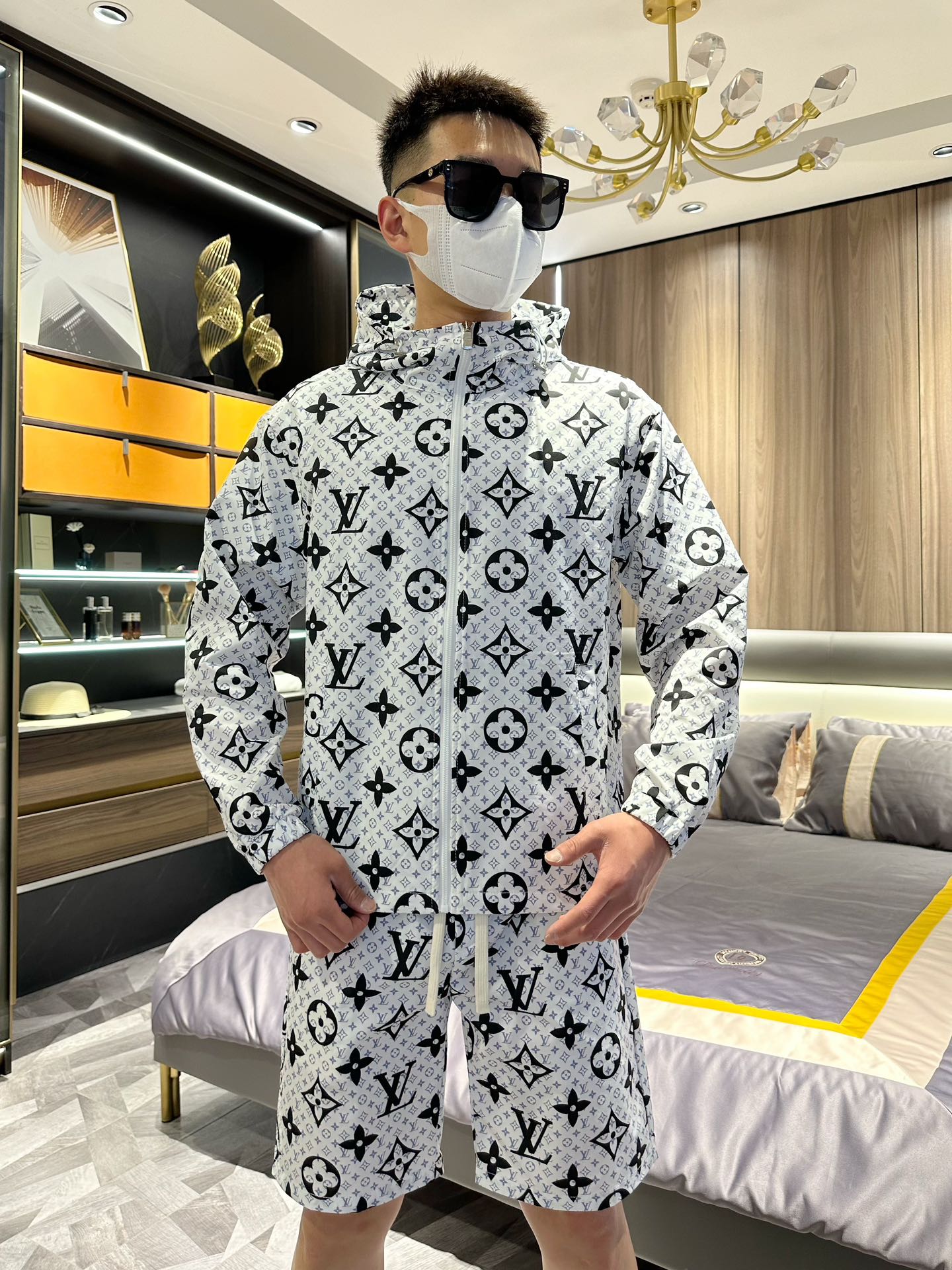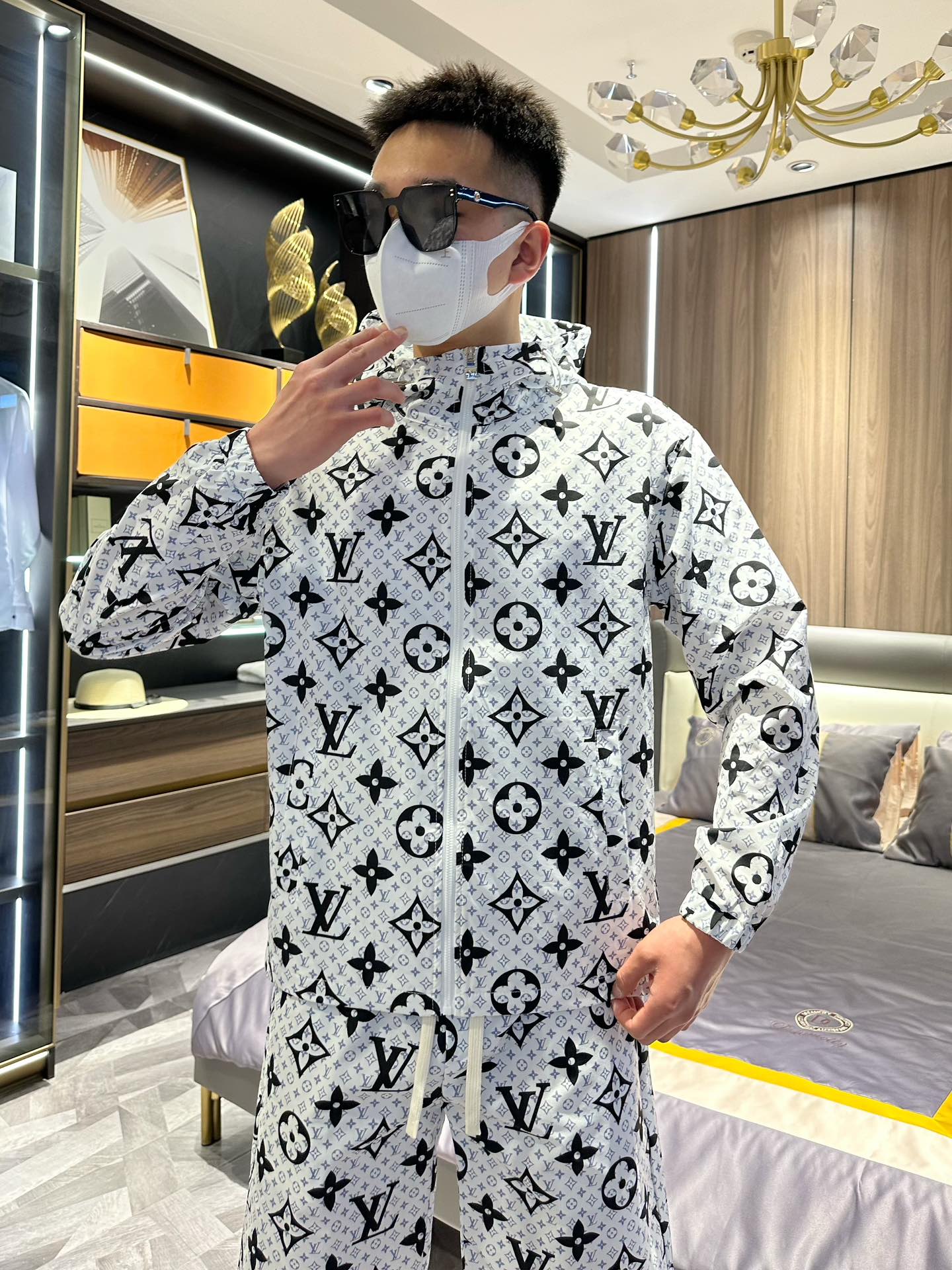 Louis Vuitton 2025 summer sun protection suit. Made of imported lightweight nylon, 3D print, soft, wind/rain/sun proof. Stylish, custom hardware. Sizes M-XXXL.