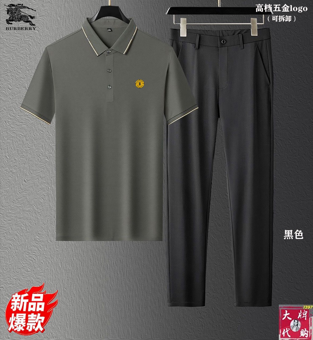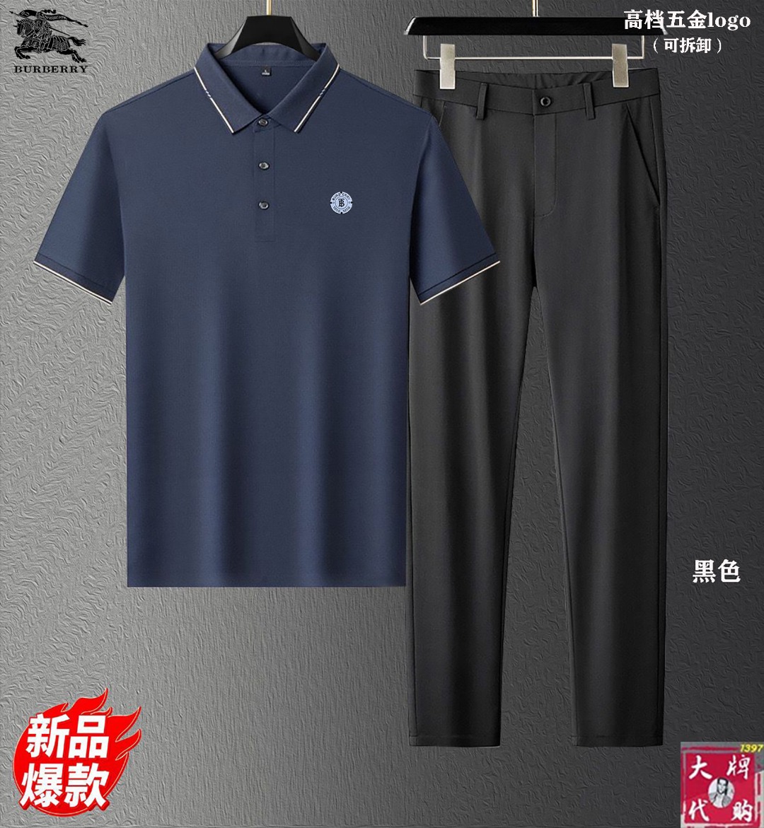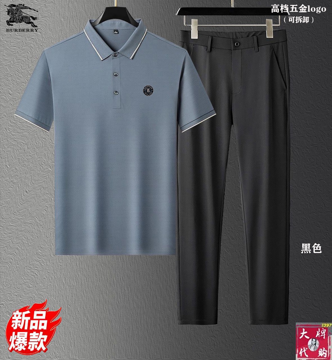 【Burberry】New set with silk fabric, Milan fashion show design. Real photos, top quality, comfortable and breathable. Sizes: M-4XL, pants 29-40.