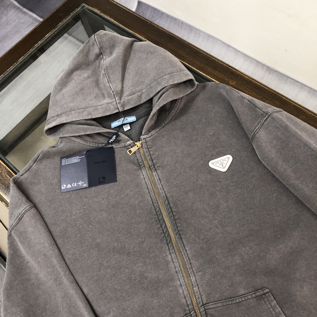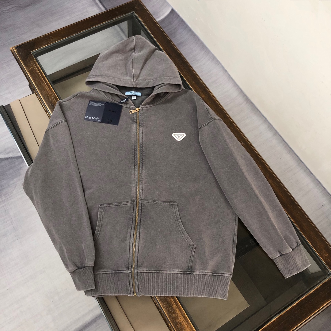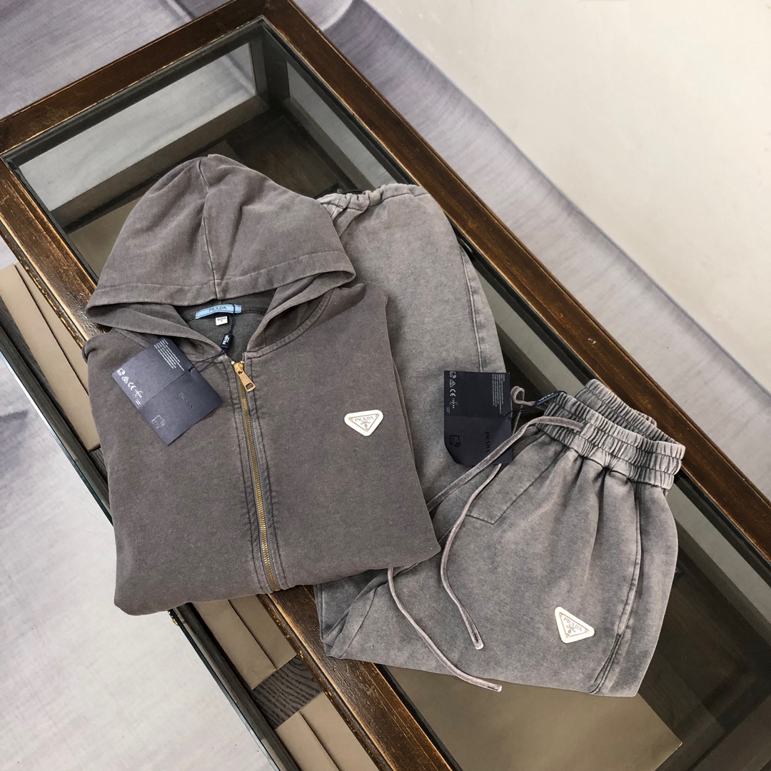 Prada 2025 early autumn washed hoodie & straight-leg pants set. Oversized fit. Top quality, custom Italian fabric, vintage wash. Sizes S-XXL.