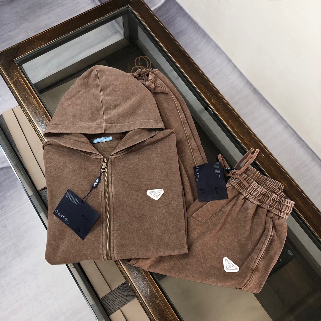 Prada 2025 early autumn washed hoodie & straight pants set. Top quality, custom Italian fabric, retro wash. Sizes S-XXL (oversized fit).