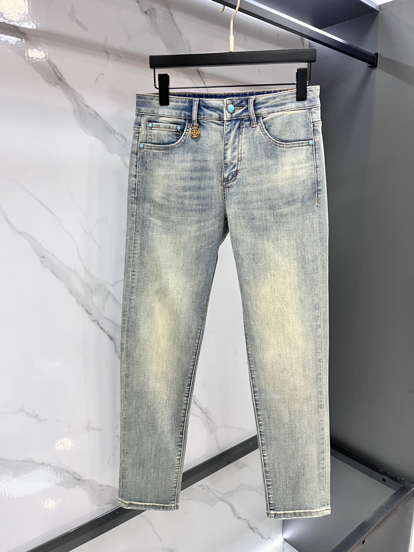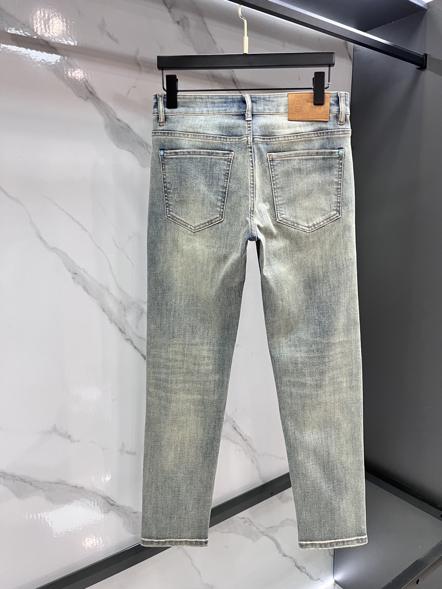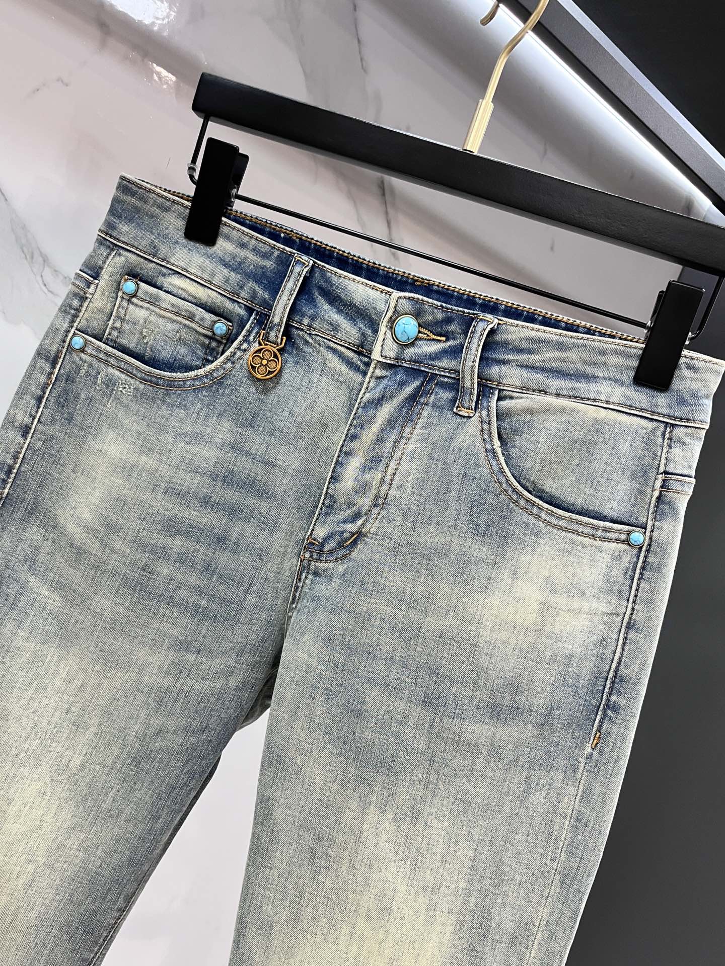 LV Thin Denim Jeans. 2025 latest style. 98% cotton, 2% spandex. Solid, slightly stretchy, comfortable. Simple design, hidden zipper, embossed pockets. Excellent fit.