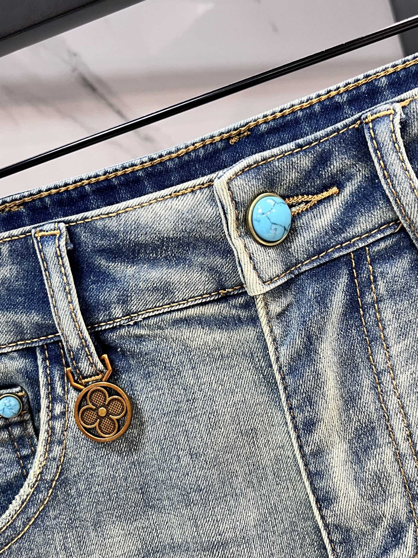 LV 2025SS early spring new lightweight distressed jeans. Imported elastic denim, comfortable and breathable. Metal accents, great fit. Sizes 29-38.
