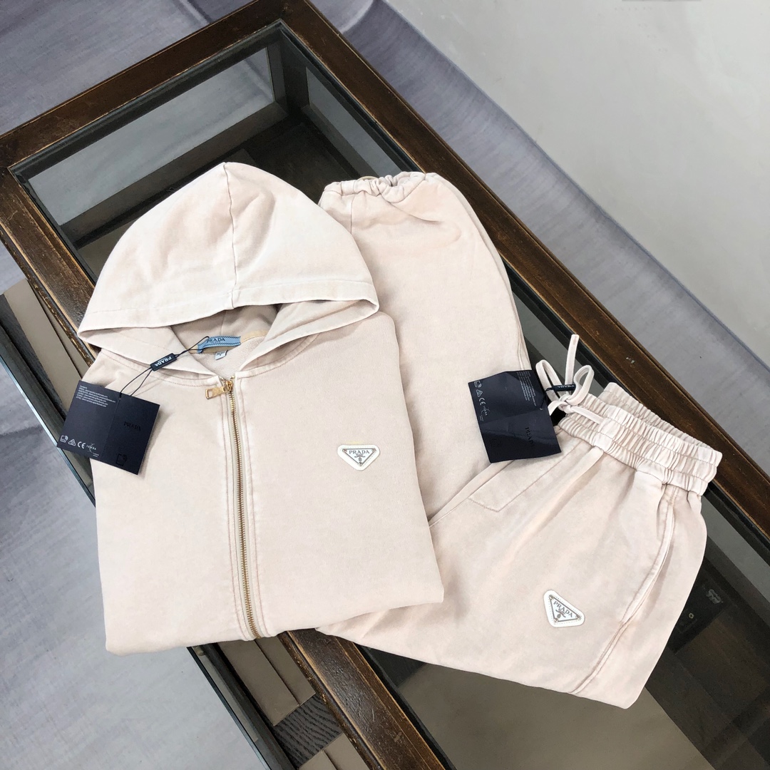 Prada 2025 early autumn washed hoodie & straight-leg pants set. Oversized fit. Top quality, custom Italian fabric, vintage wash. Sizes S-XXL.