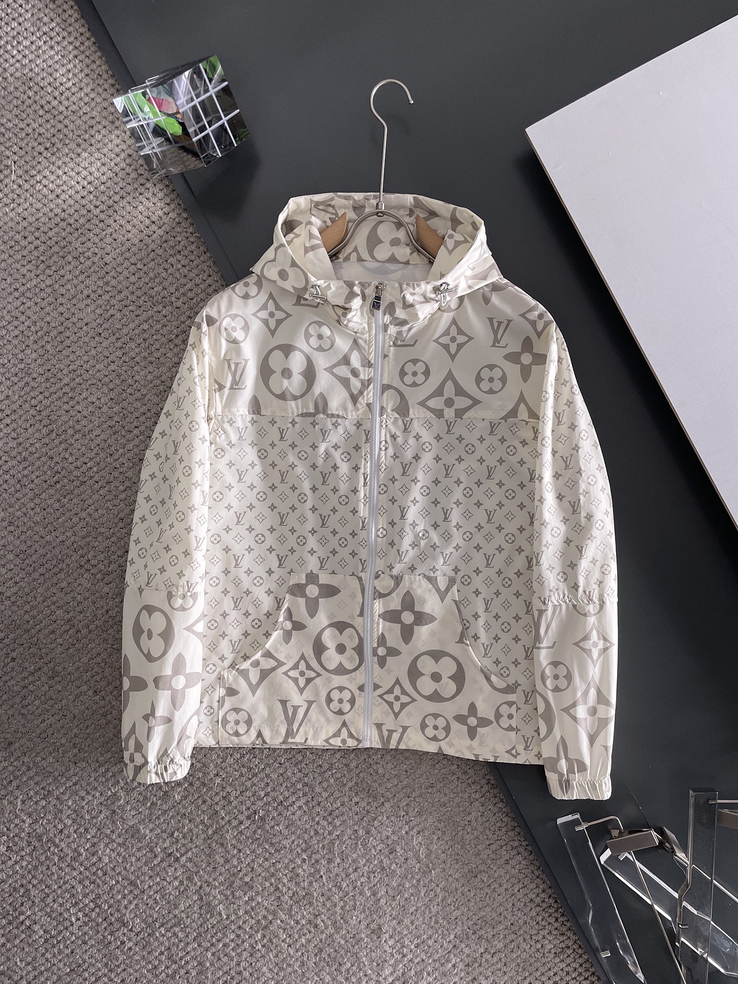 Louis Vuitton 1V slightly wide fit hoodie. Unisex S M L XL. 25SS new collection. Embroidered logo. 450g cotton, breathable, comfortable. Minimalist, versatile. Colors: beige, navy, pink.